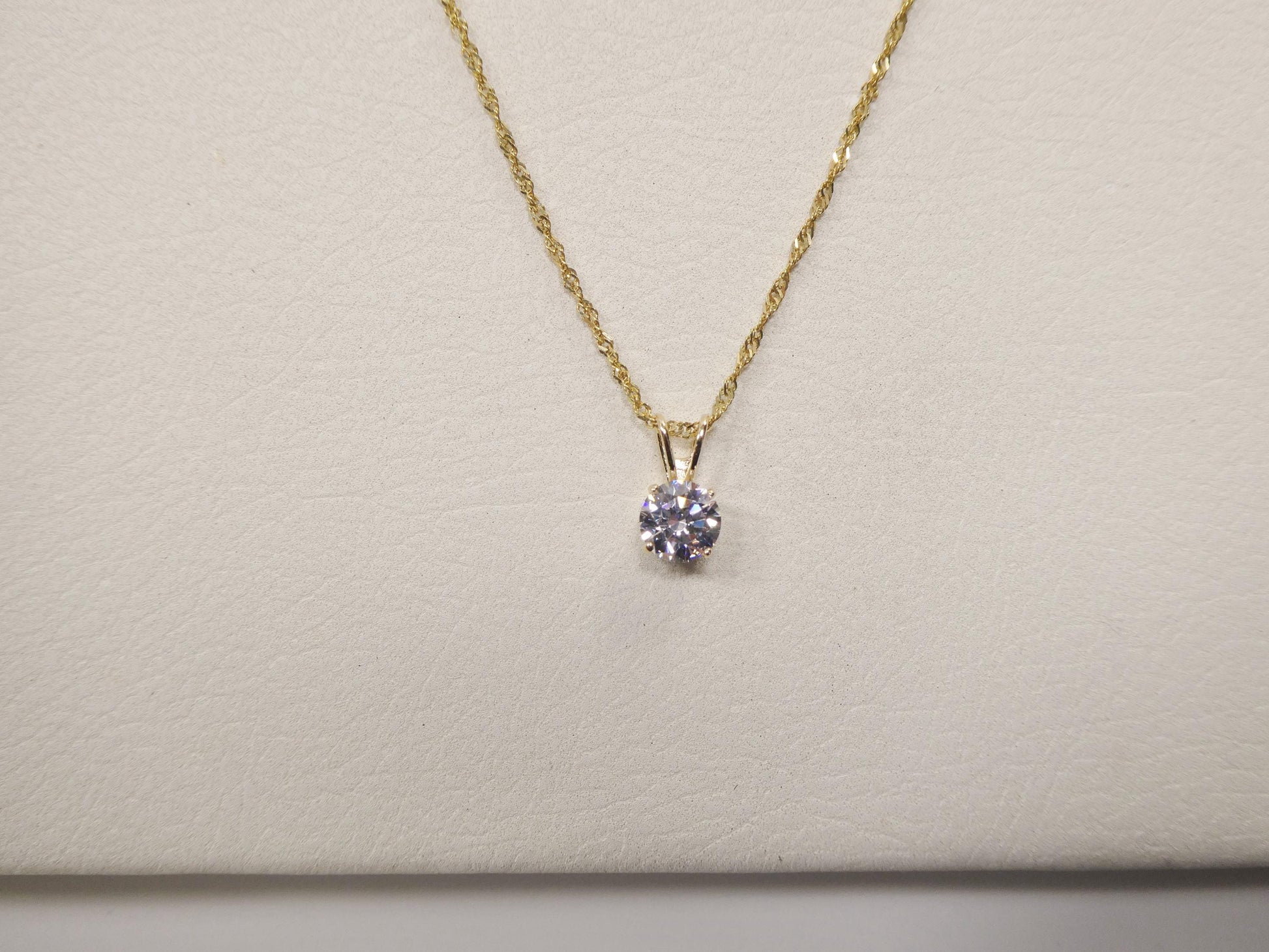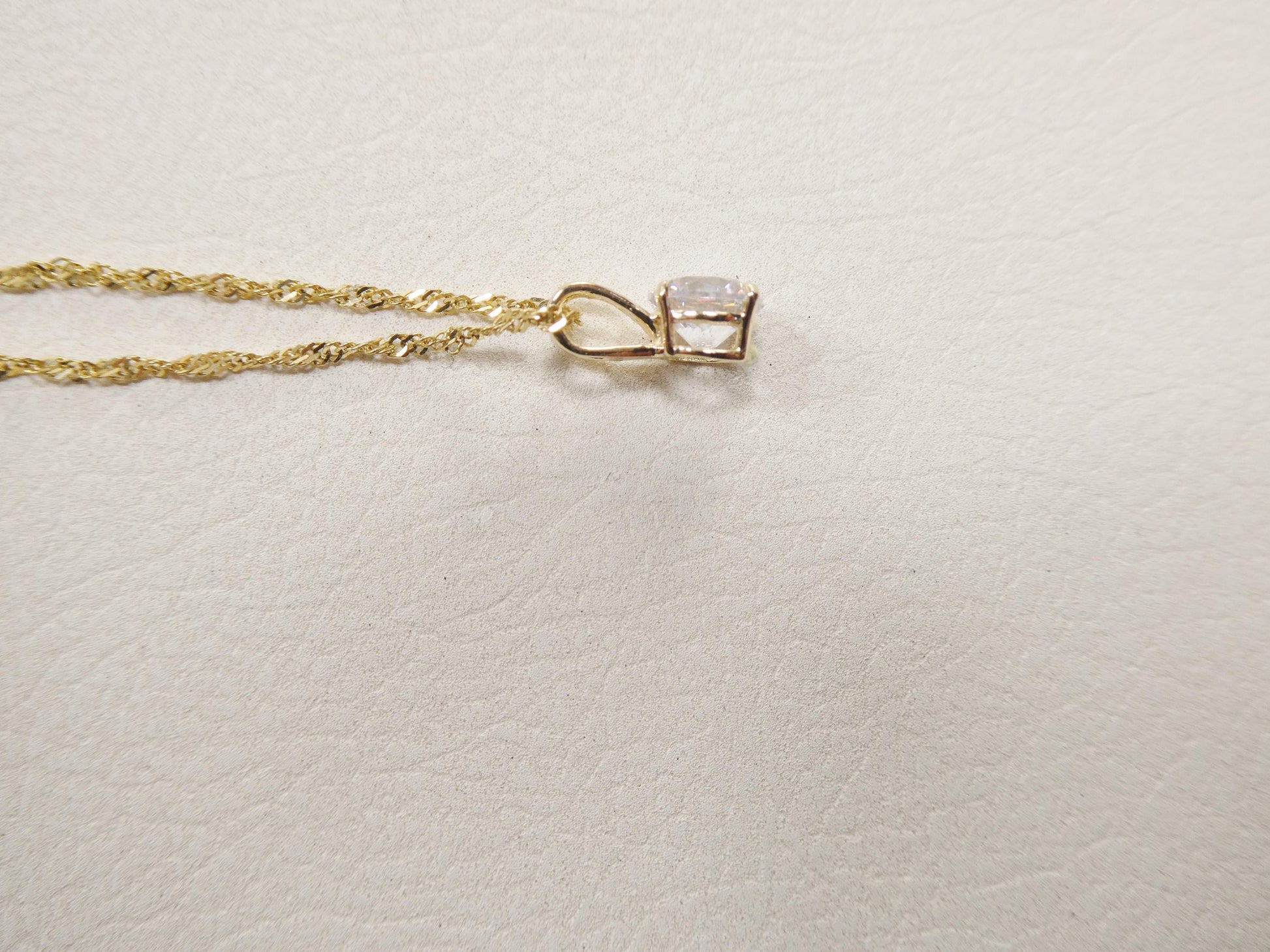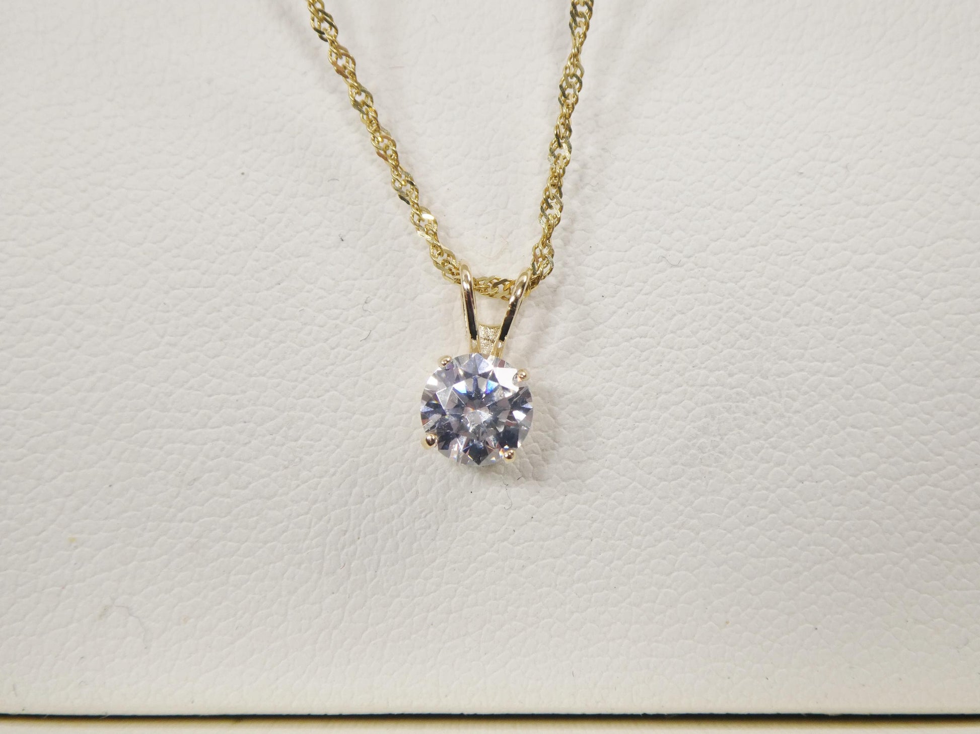 10k real solid yellow gold 16 inch chain and round stone solitaire pendent set