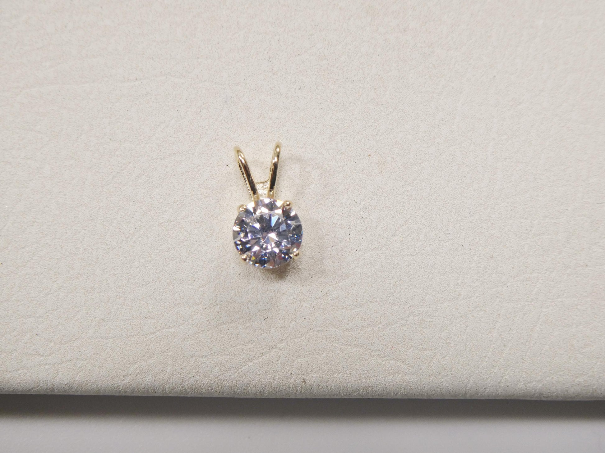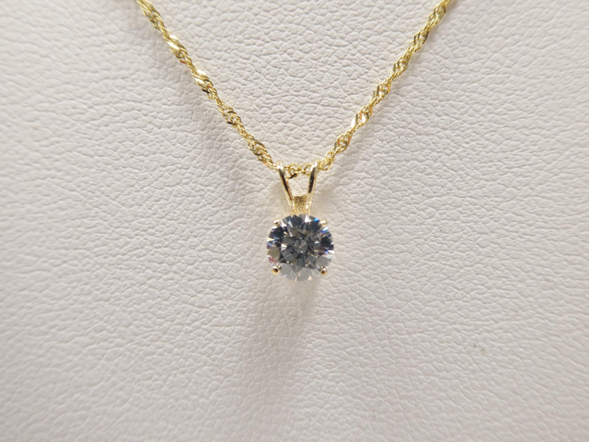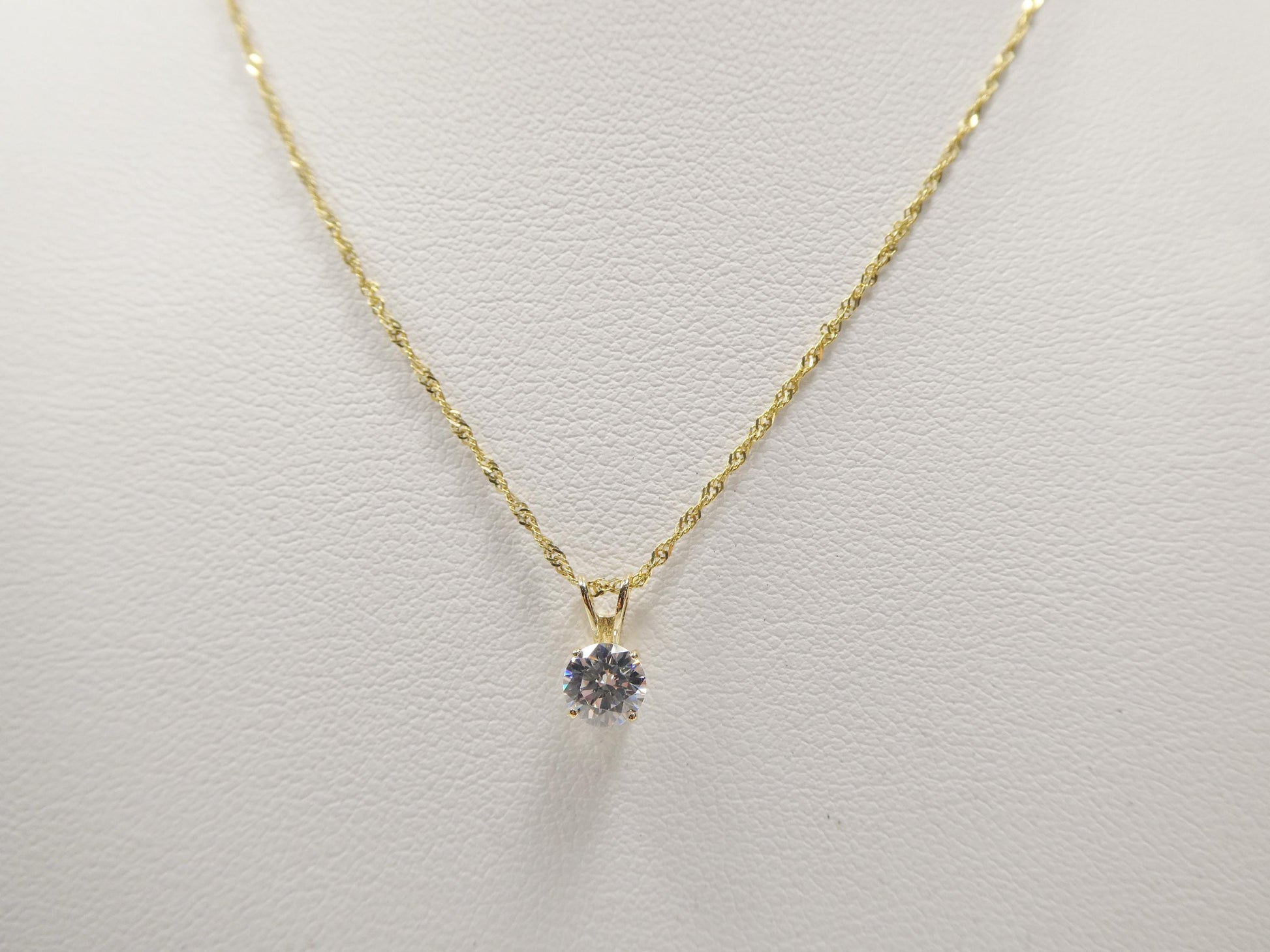10k real solid yellow gold 16 inch chain and round stone solitaire pendent set
