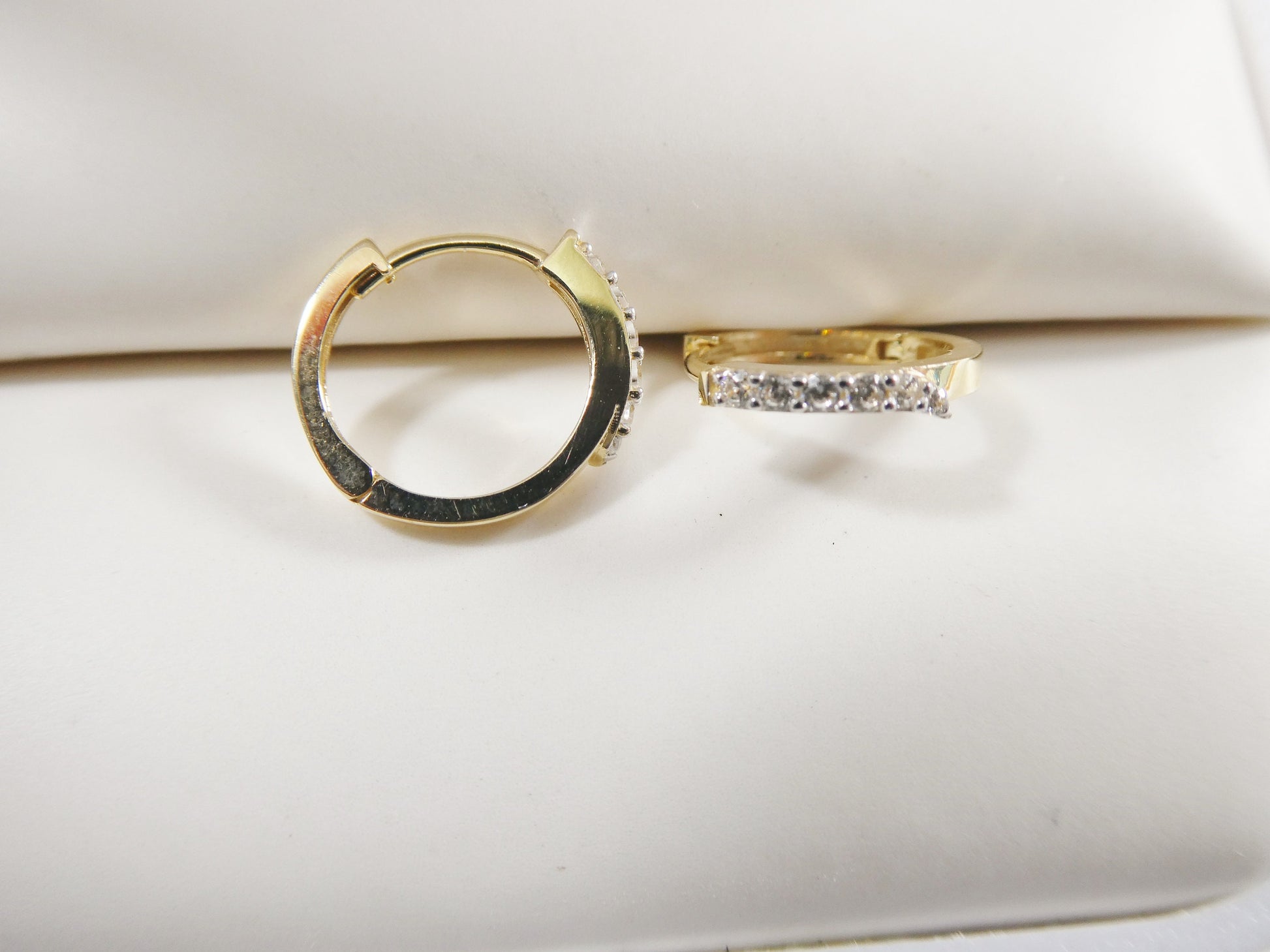 10 REAL YELLOW GOLD SHINY CUBIC ZIRCONIA MICRO FAVE SETTING HUGGIE HOOP EARRING DAITH GUARANTEE REAL 10K GOLD MARK AND STAMP HIGH QUALITY HIGH POLISH GREAT FINISH LUXURY ATTRACTIVE LOOK COME IN NICE GIFT BOX MAKE PERFECT FIFT FOR ANY OCCASION