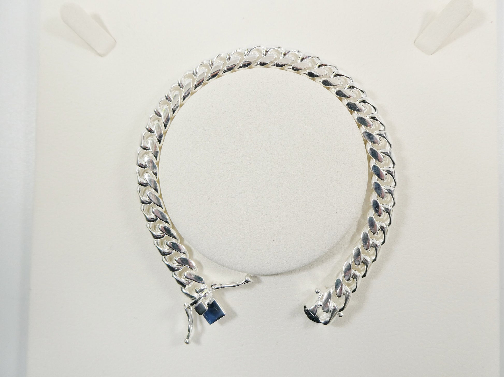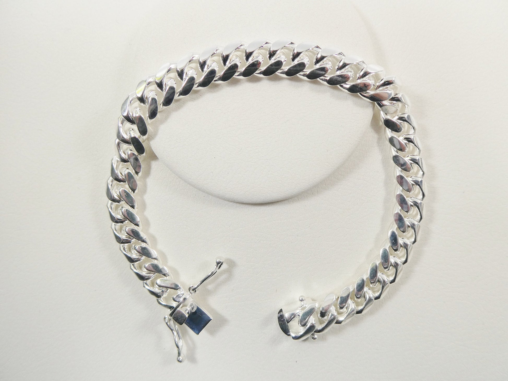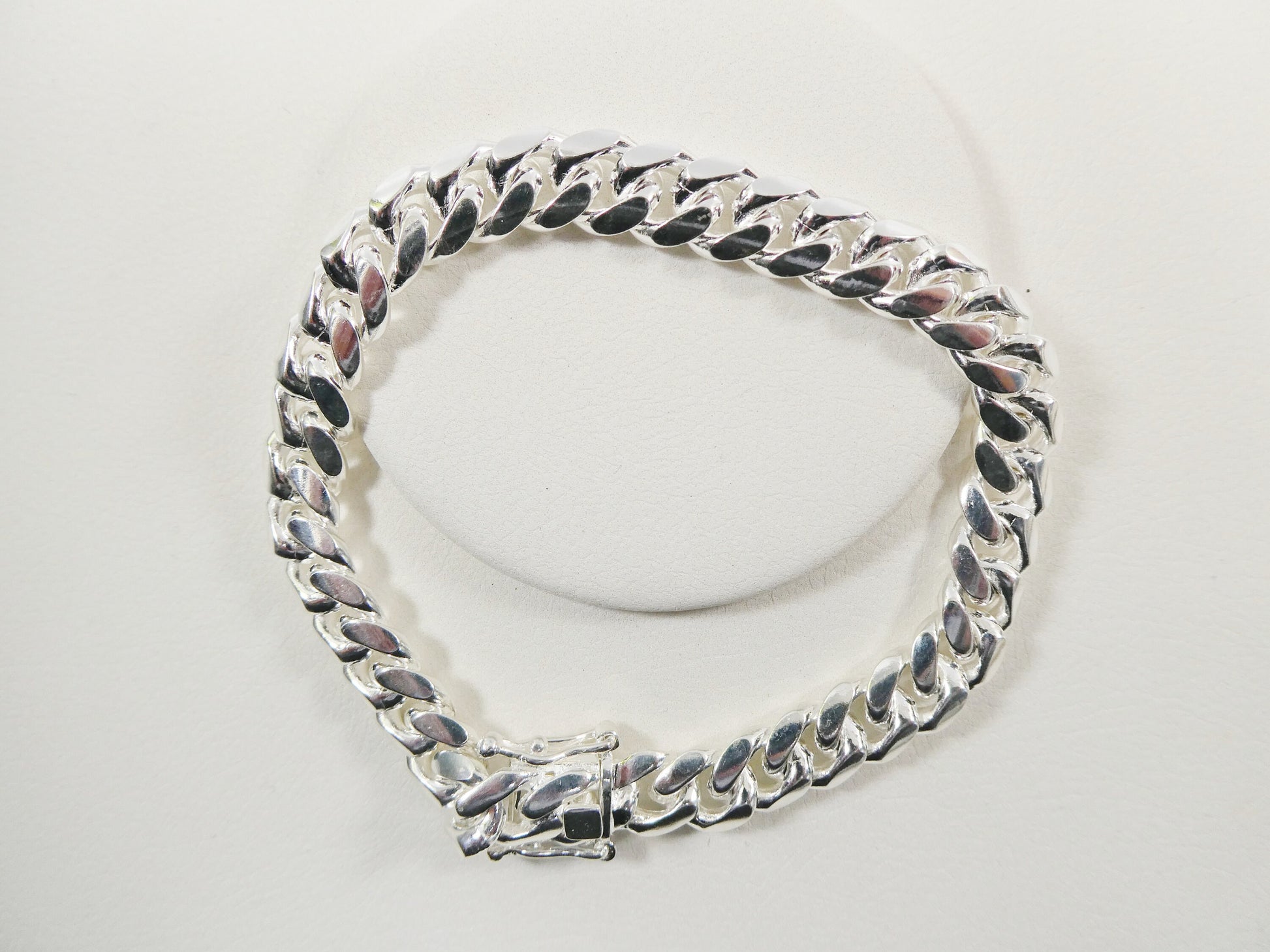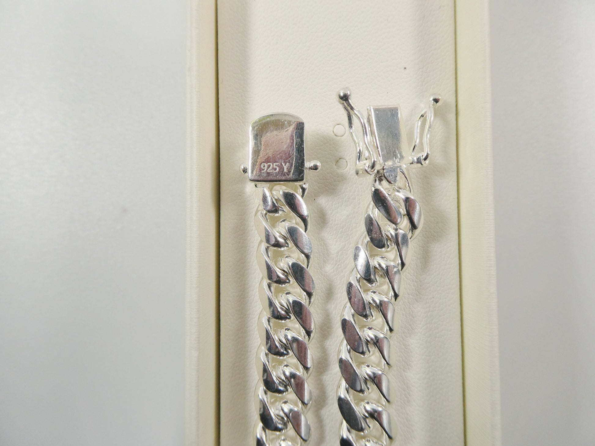 REAL 10MM SOLID 925 STERLING SILVER HEAVY MIAMI LINK BOX LOCK CLASP FOR SAFTY GUARANTEE REALL 925 STERLING SILVER MARK AND STAMP MADE IN ITALY HIGH QUALITY HIGH POLISH GREAT FINISH COME IN 8 INCH 49.3 GRAM AND 9 INCH 56 GRAM COME IN NICE GIFT BOX MAKE IT GREAT GIFT FOR ANY OCASION