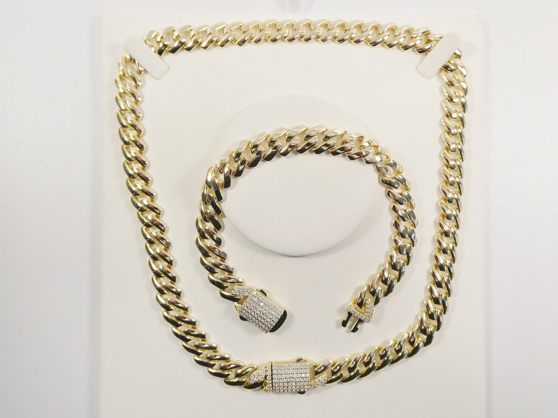 11mm real 925 sterling silver Monaco style bracelet and necklace 14k yellow gold finish