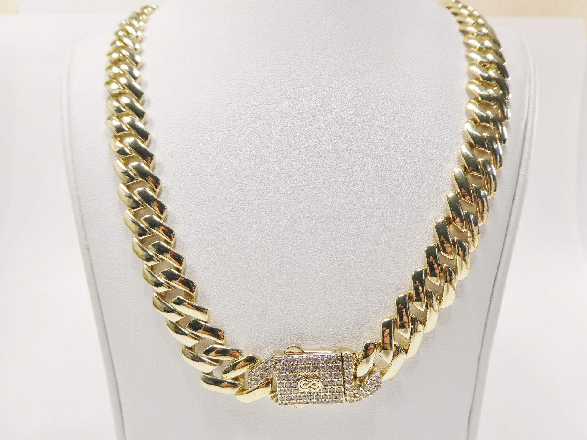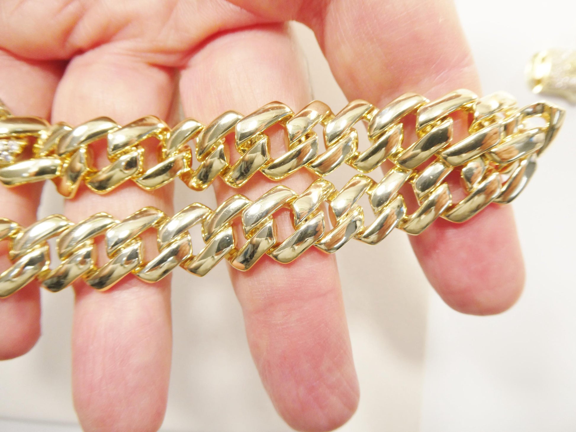 ELEGANT 12MM MONACO 14K YELLOW GOLD FILLED CUBAN LINK NECKLACE / BRACELET HIGH QUALITY HIGH POLISH GREAT PRICE ATTRACTIVE LOOK COME IN NICE GIFT BOX