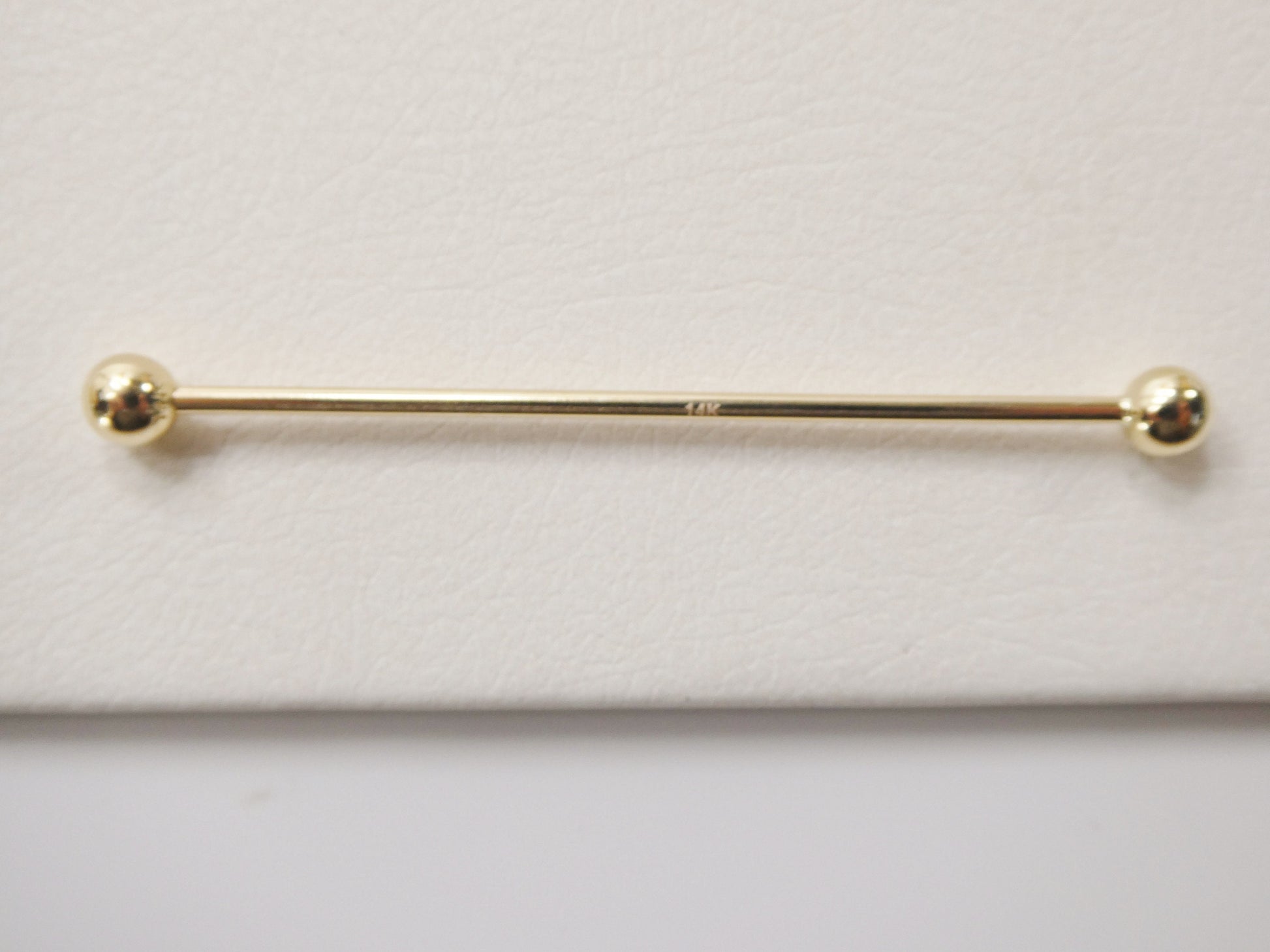 14k real solid yellow gold 60mm straight barbell tongue belly button ring piercing