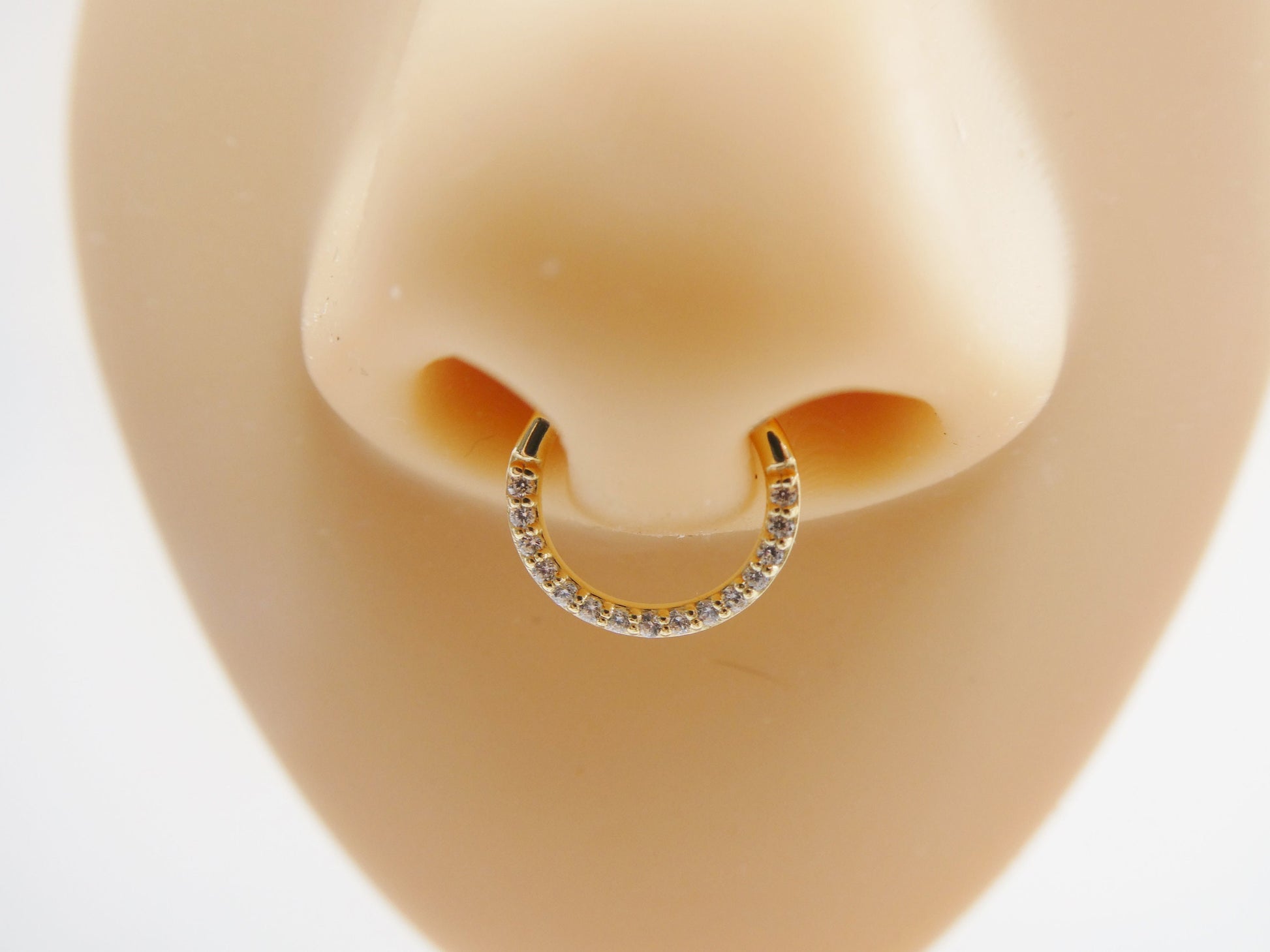 14K REAL SOLID YELLOW GOLD HOOP RING CARTILAGE DAITH SEPTUM HOOP PIERCING 16 GAUGE SOLD AS SINGLE FOR THE EAR OR BODY PIERCING AAA SHINY CUBIC ZIRCONIA 2MM STONE GUARANTTE REAL SOLID 14K GOLD MARK AND STAMP PERFECT FOR SENSITIVE SKIN HIGH QUALITY HIGH POLISH GREAT PRICE COME IN GIFT BOX MAK IT GREAT GIFT FOR ANY OCCASION