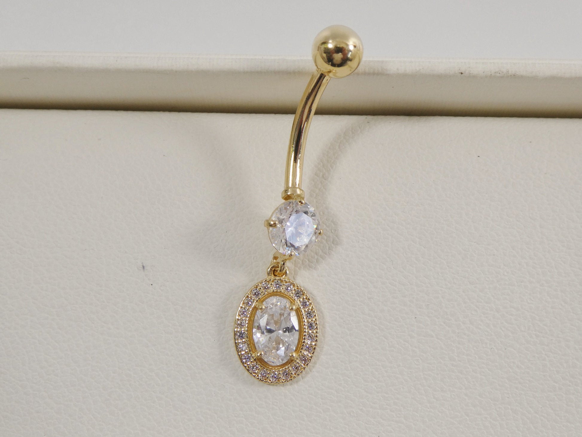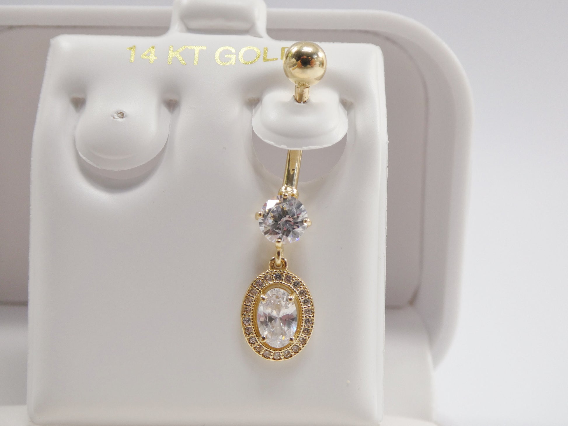 BRAND NEW REAL SOLID 14K YELLOW GOLD OVAL SHAPE BELLY BUTTON RING 5MM AAA CUBIC ZIRCONIA SHINY STONE CENTER HIGH POLISH GREAT FINISH LUXURY ATTRACTIVE LOOK HIGH QUALITY SCREW ON AND OFF GUARANTEE REAL 14K GOLD MARK AND STAMP ON THE BANANA BAR AND THE TOP SRCEW COME IN NICE GIFT BOX MAKE IT PERFECT GIFT FOR ANY OCCASION