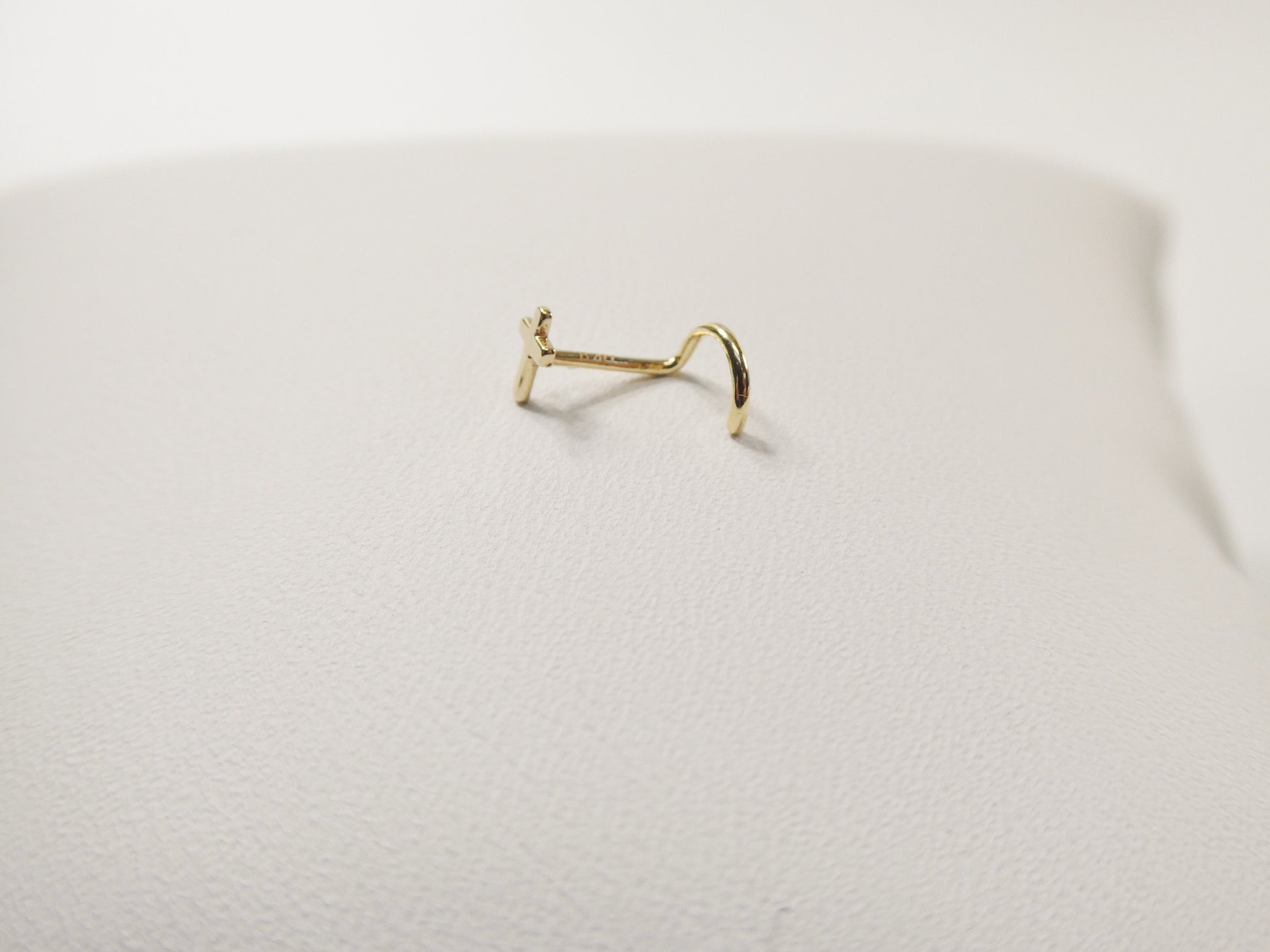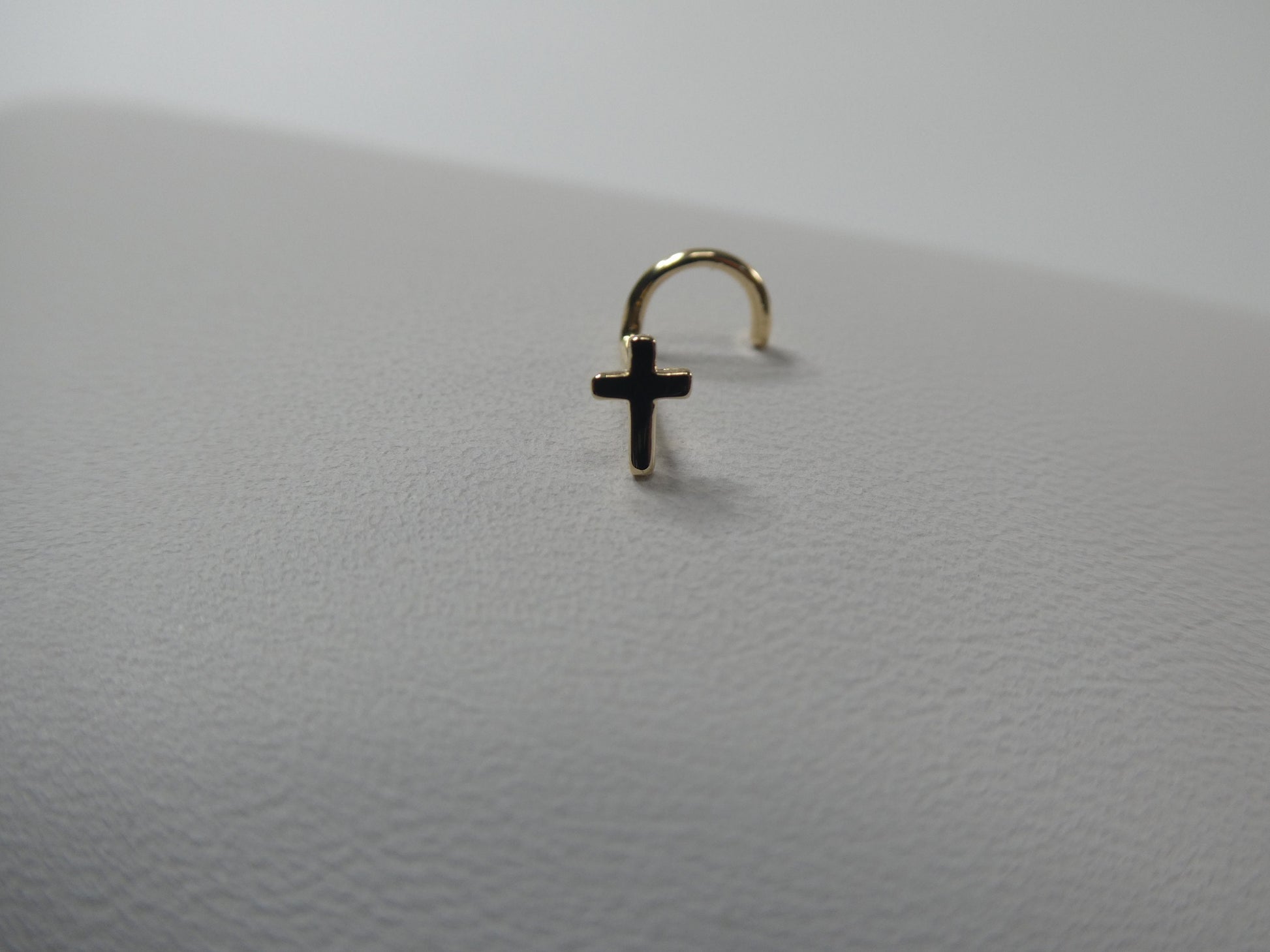 14K REAL SOLID YELLOW GOLD HIGH POLISH TWIST STYLE CROSS NOSE RING 7.7MM LENGTH HIGH QUALITY GREAT PRICE PERFECT FOR SKIN SENSETIVE HIGH POLISH GUARANTEE REAL 14K GOLD MARK AND STAMP COME IN NICE GIFT BOX
