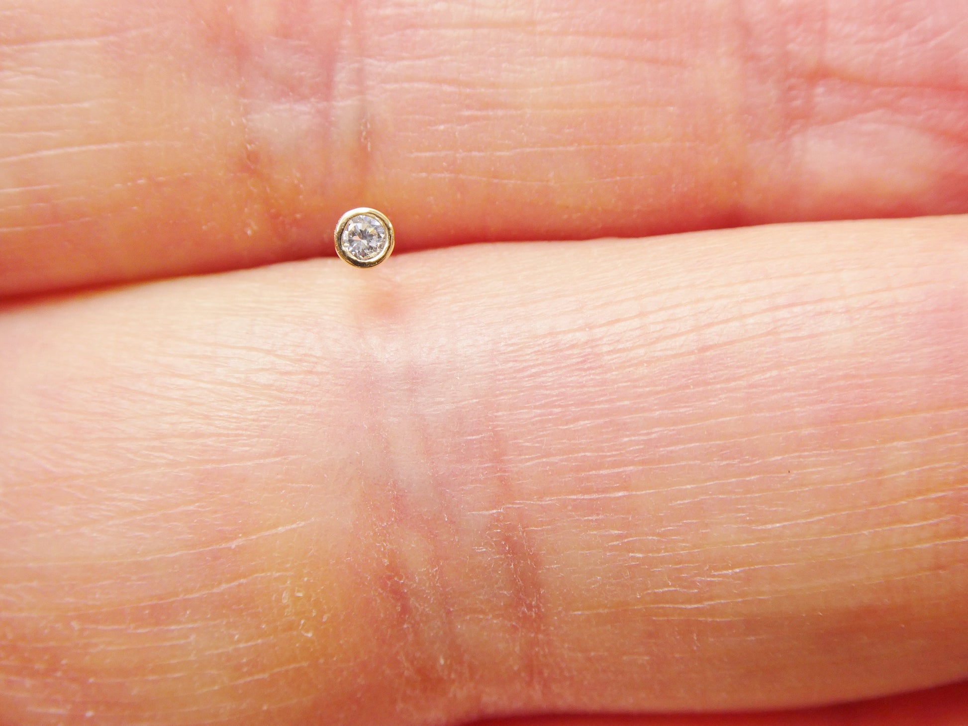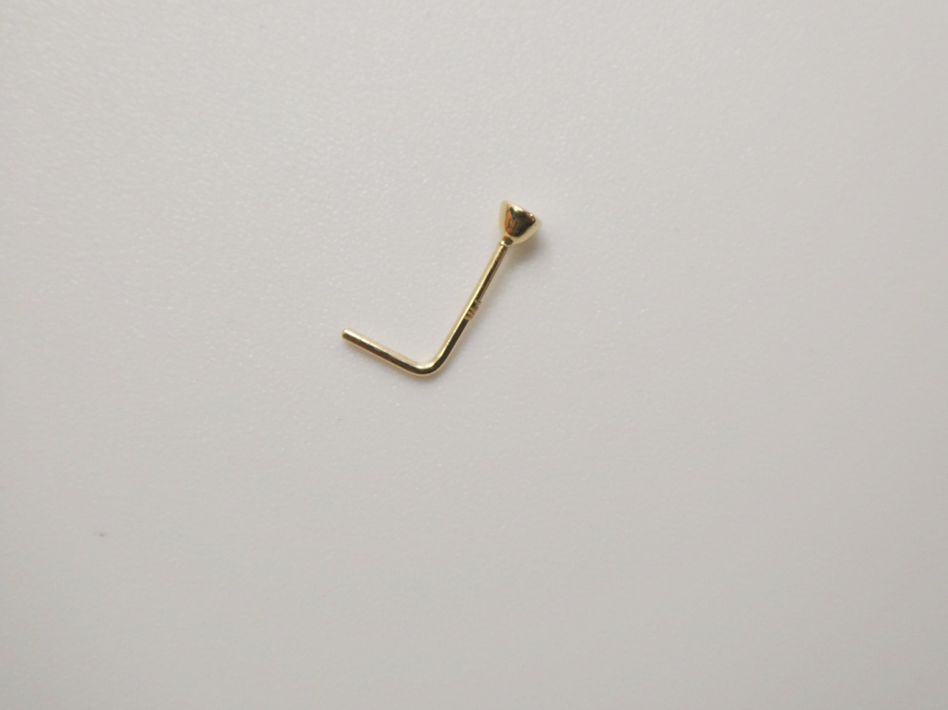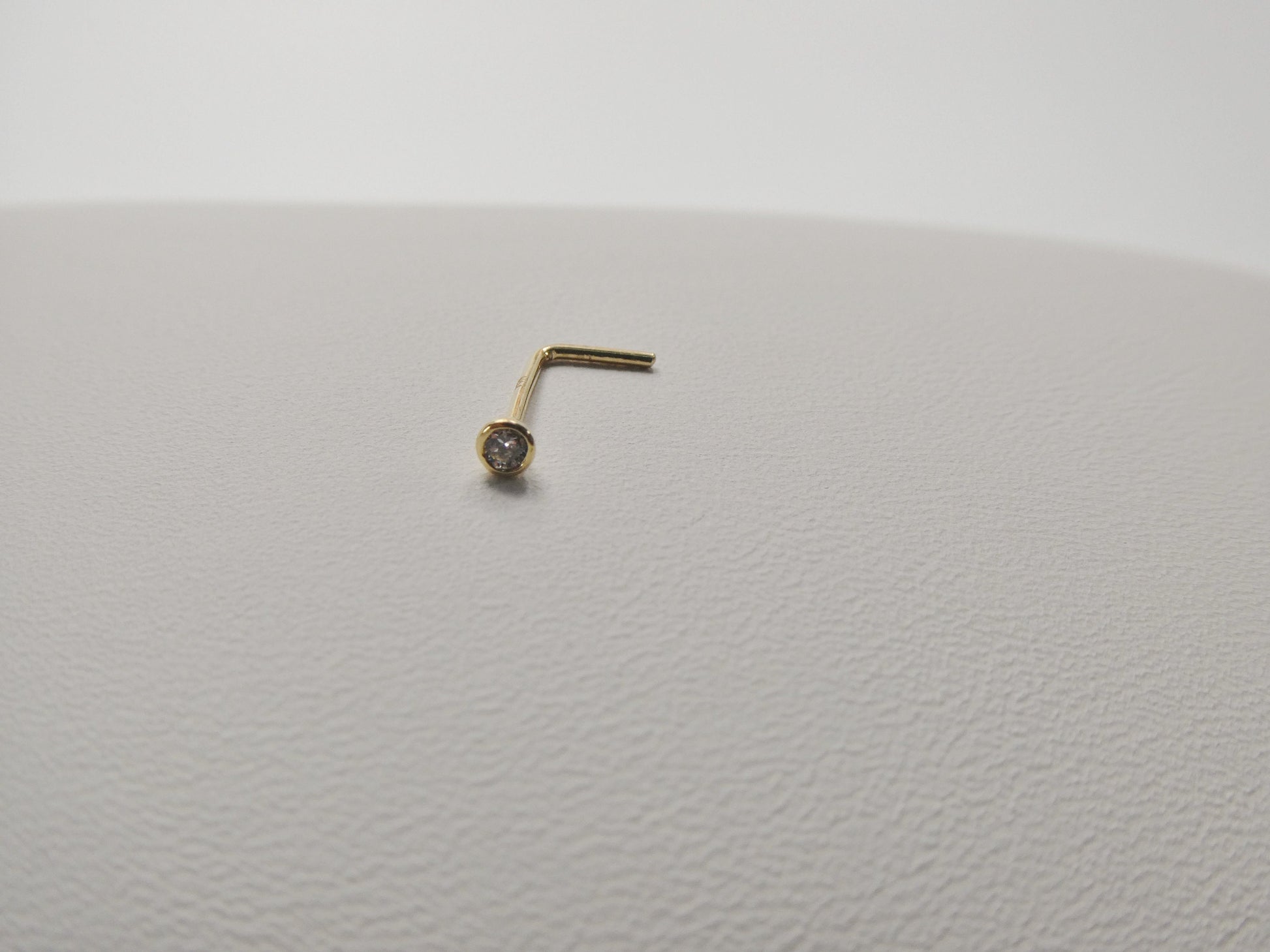 14k real solid yellow gold L SHAPE 1.5mm round stone stud nose ring