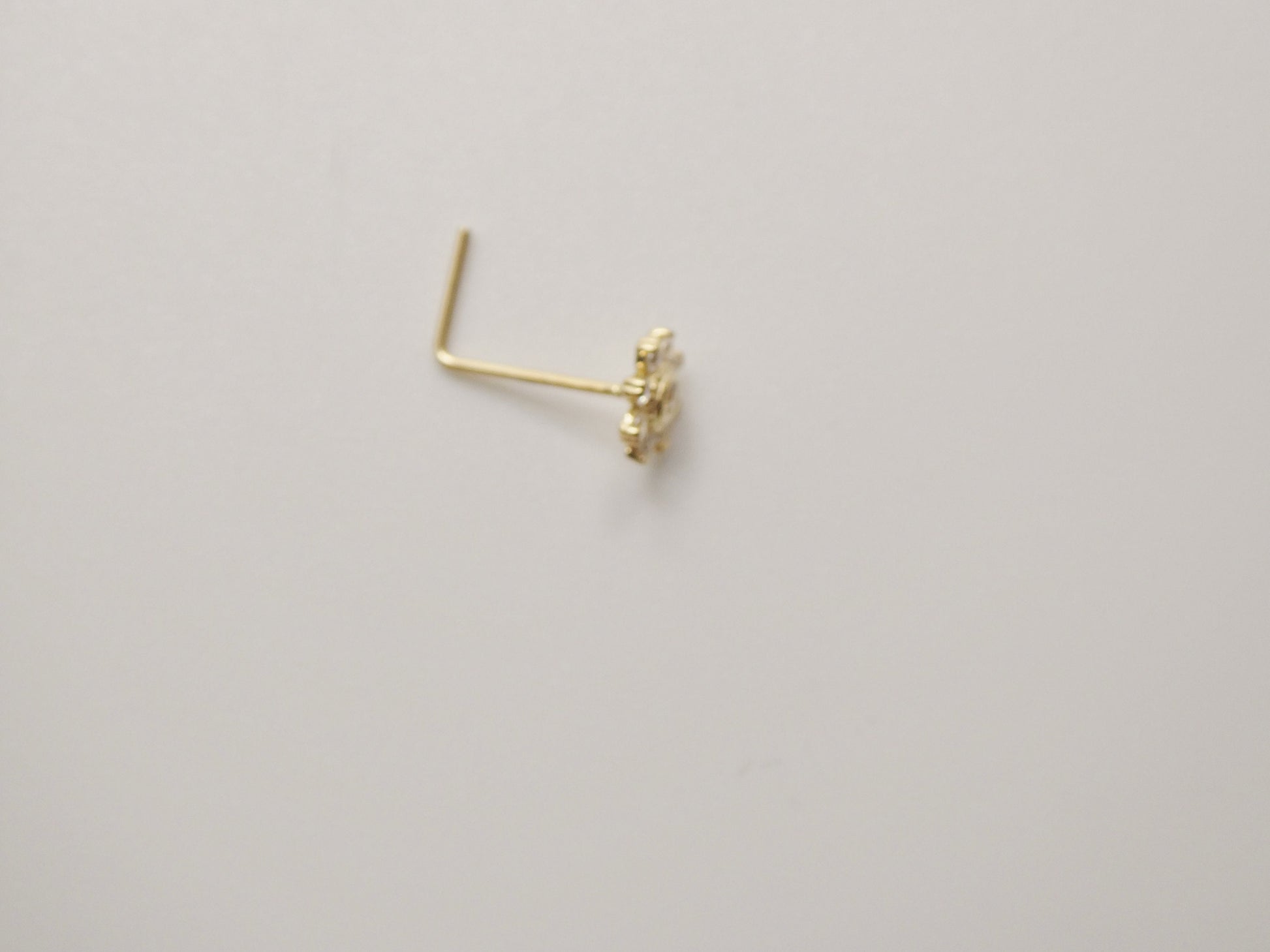 14k real solid yellow gold L SHAPE flower stud nose ring
