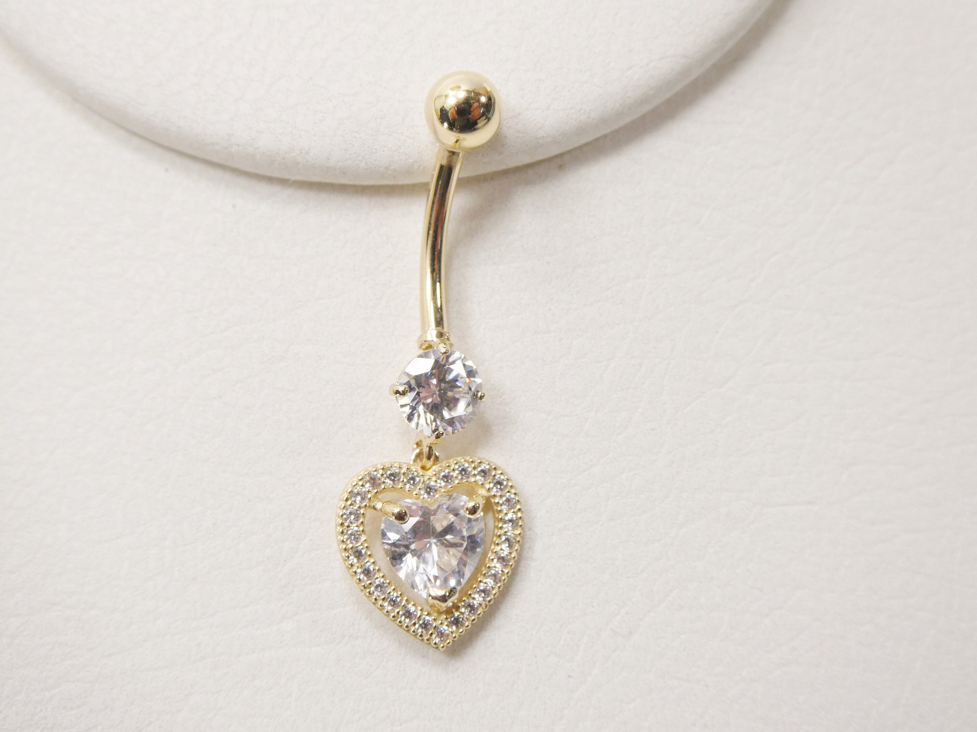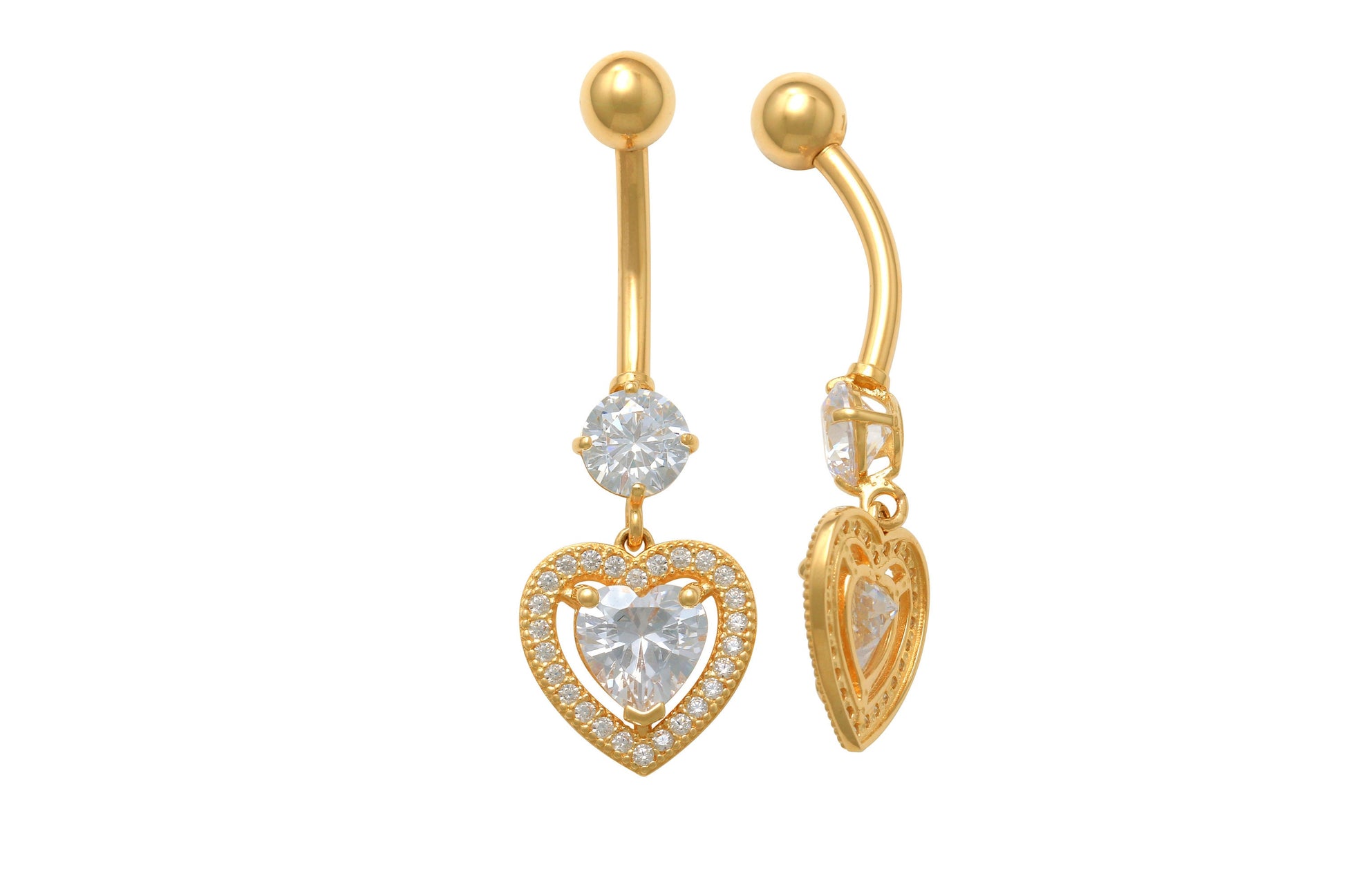 14k real solid yellow gold large heart drop belly button ring piercing