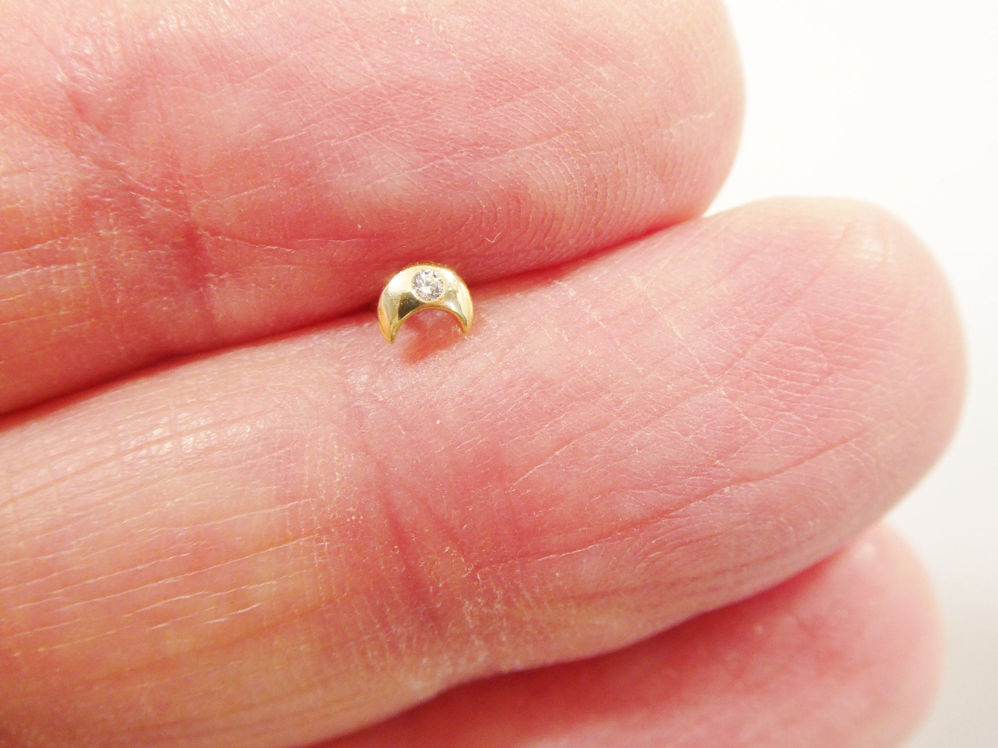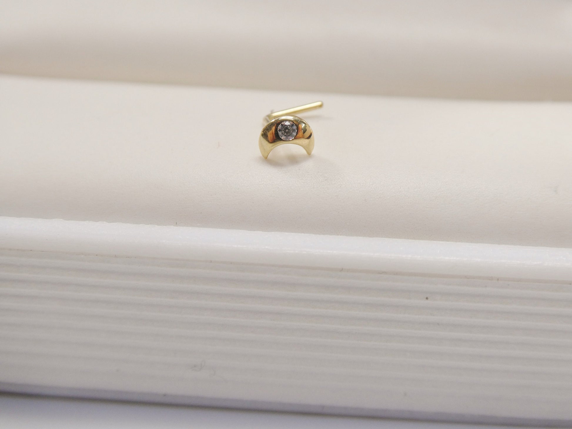 14K REAL SOLID YELLOW GOLD MOON L SHAPE STUD NOSE RING THICKNESS 23 GAUGE HIGH QUALITY HIGH POLISH GREAT PRICE GUARANTEE REAL 14K GOLD MARK AND STAMP COME IN NICE GIFT BOX