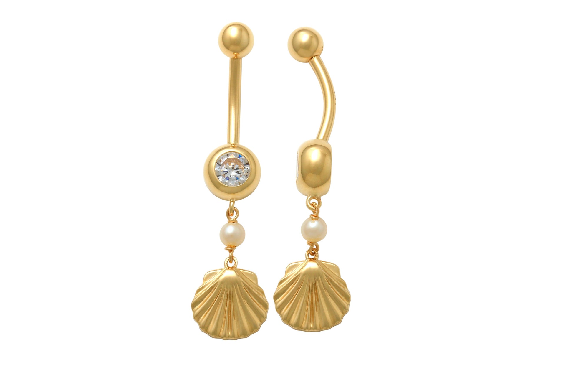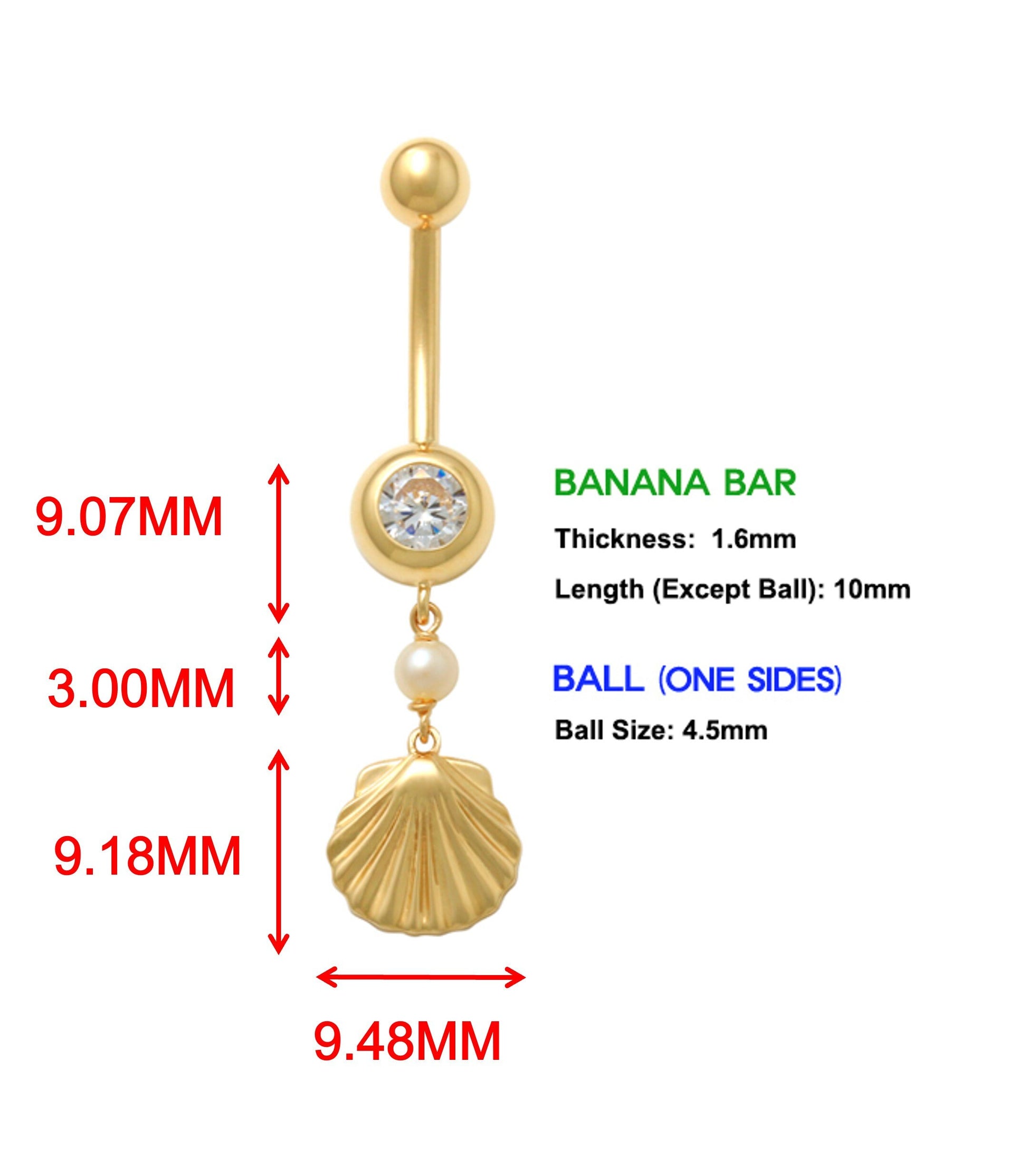 BRAND NEW REAL SOLID 14K YELLOW GOLD SHELL DANGLE BELLY BUTTON RING AAA 5MM SHINY CUBIZ ZIRCONIA BAZEL SETTING HIGH POLISH GREAT FINISH LUXURY ATTRACTIVE LOOK HIGH QUALITY SCREW ON AND OFF GUARANTEE REAL 14K GOLD MARK AND STAMP ON THE BANANA BAR AND THE TOP SRCEW COME IN NICE GIFT BOX MAKE IT PERFECT GIFT FOR ANY OCCASION