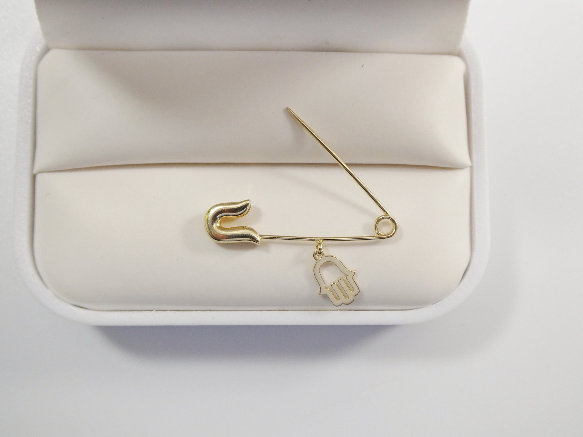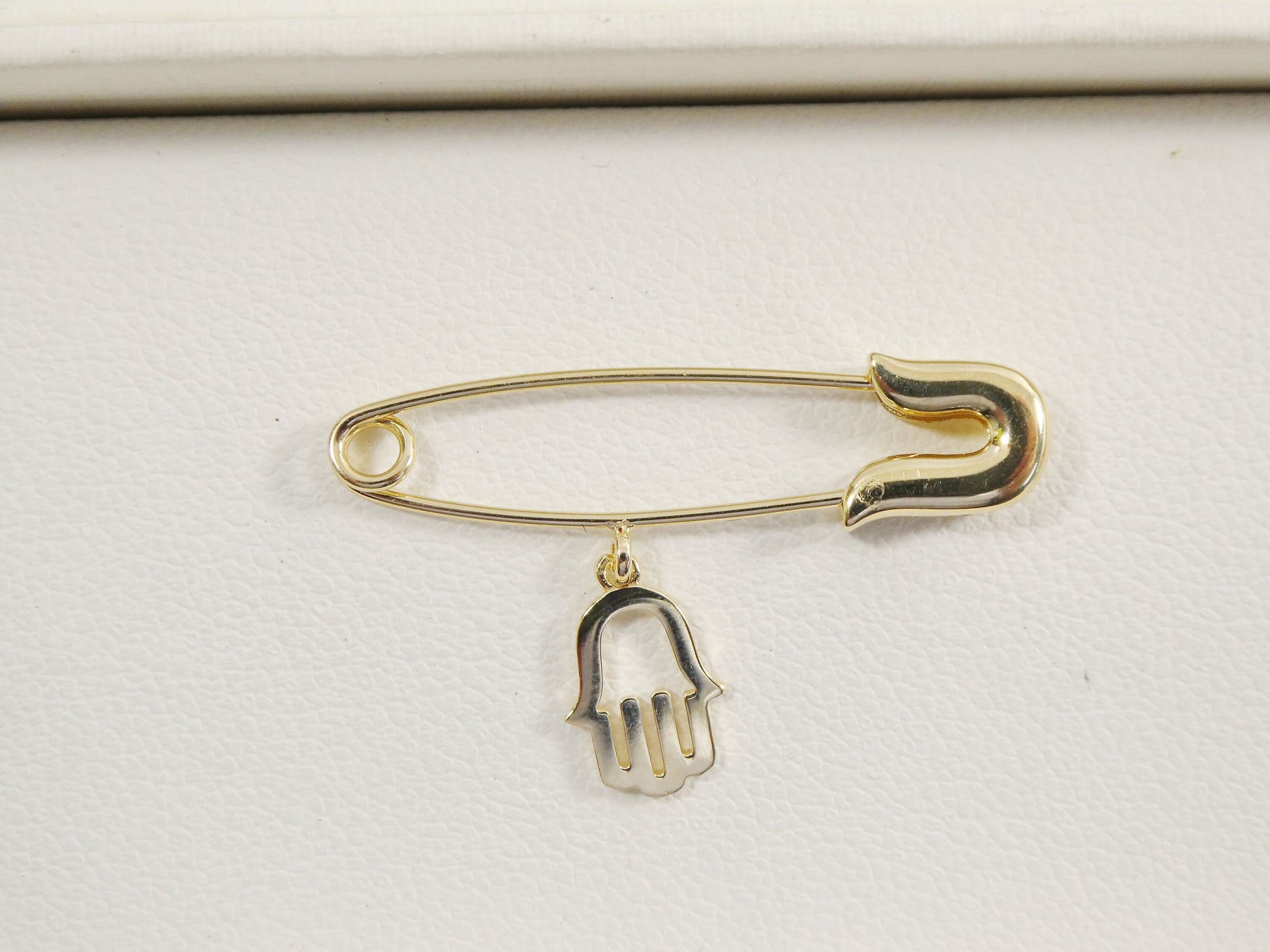 14K SOLID REAL YELLOW GOLD NEW BORN HAMSA EVIL EYE PIN BROOCHES HIGH QUALITY SUPPER HIGH POLISH