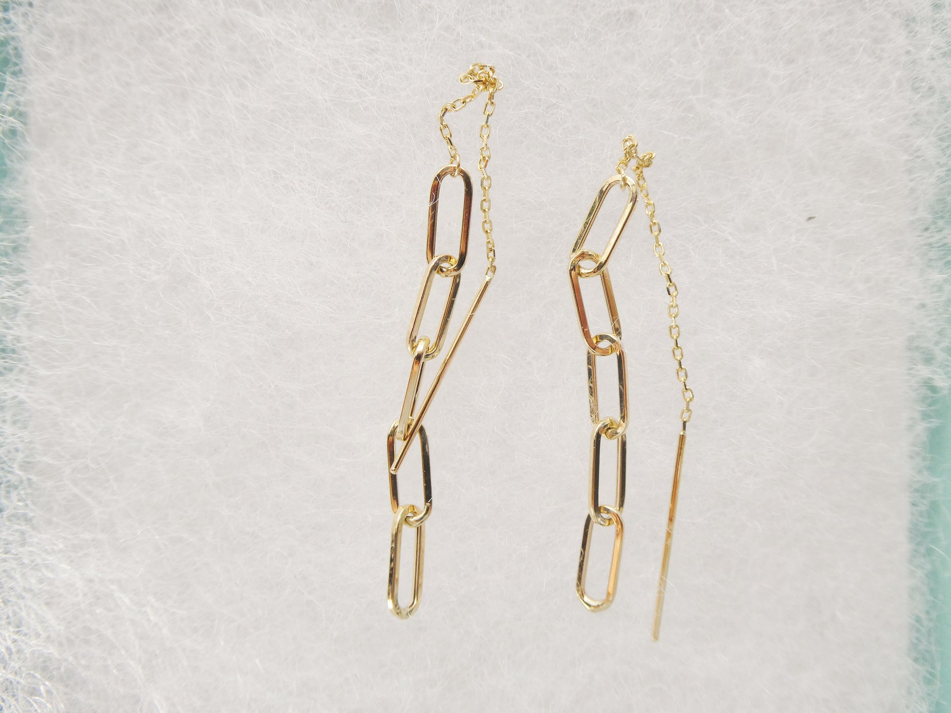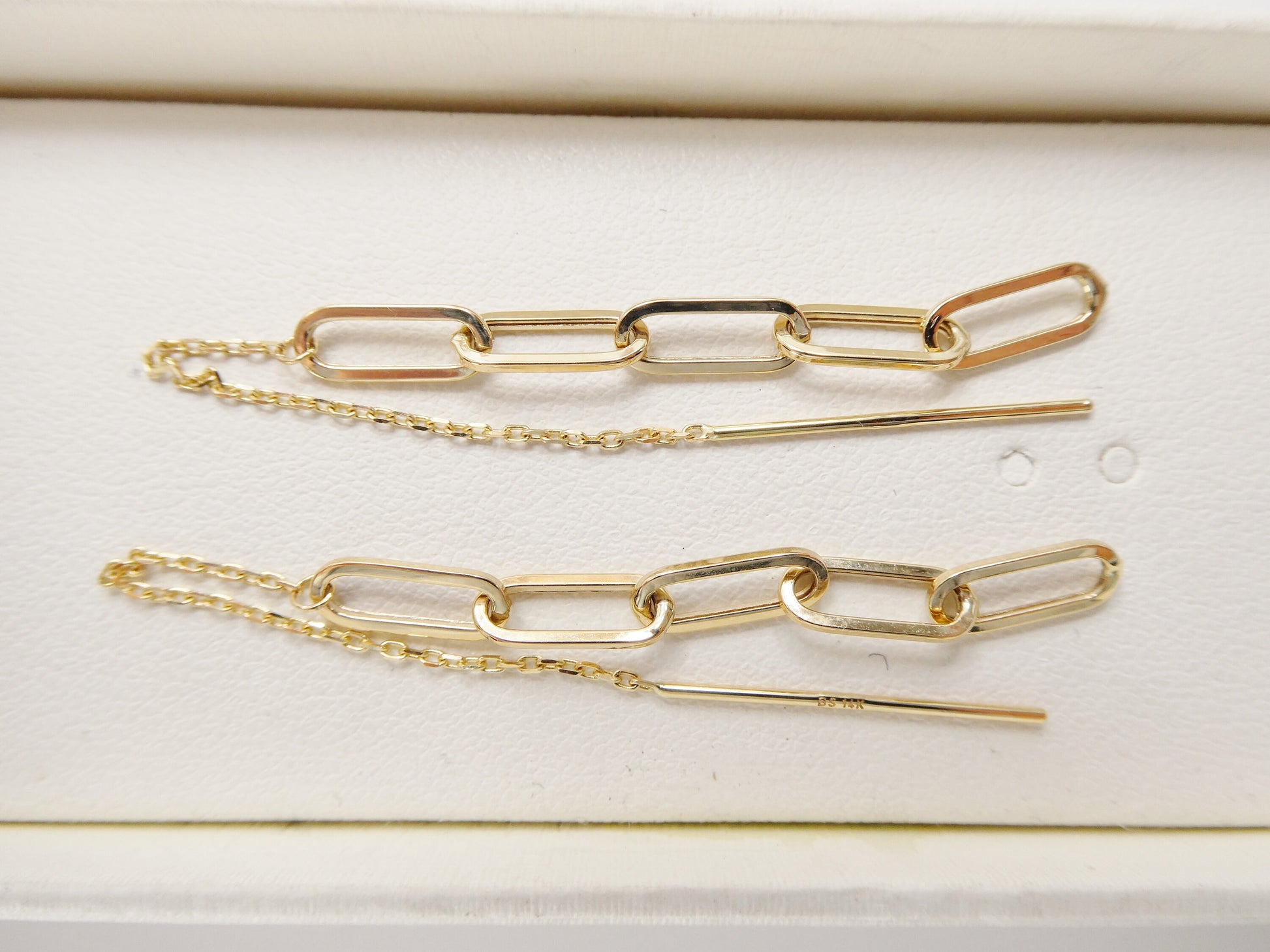 14K REAL SOLID YELLOW GOLD PAPERCLIP LONG DANGLE EARRING FOR WOMEN AND GIRL HIGH POLISH FINISH HIGH QUALITY GREAT PRICE CRAFTED FROM GENUINE 14K