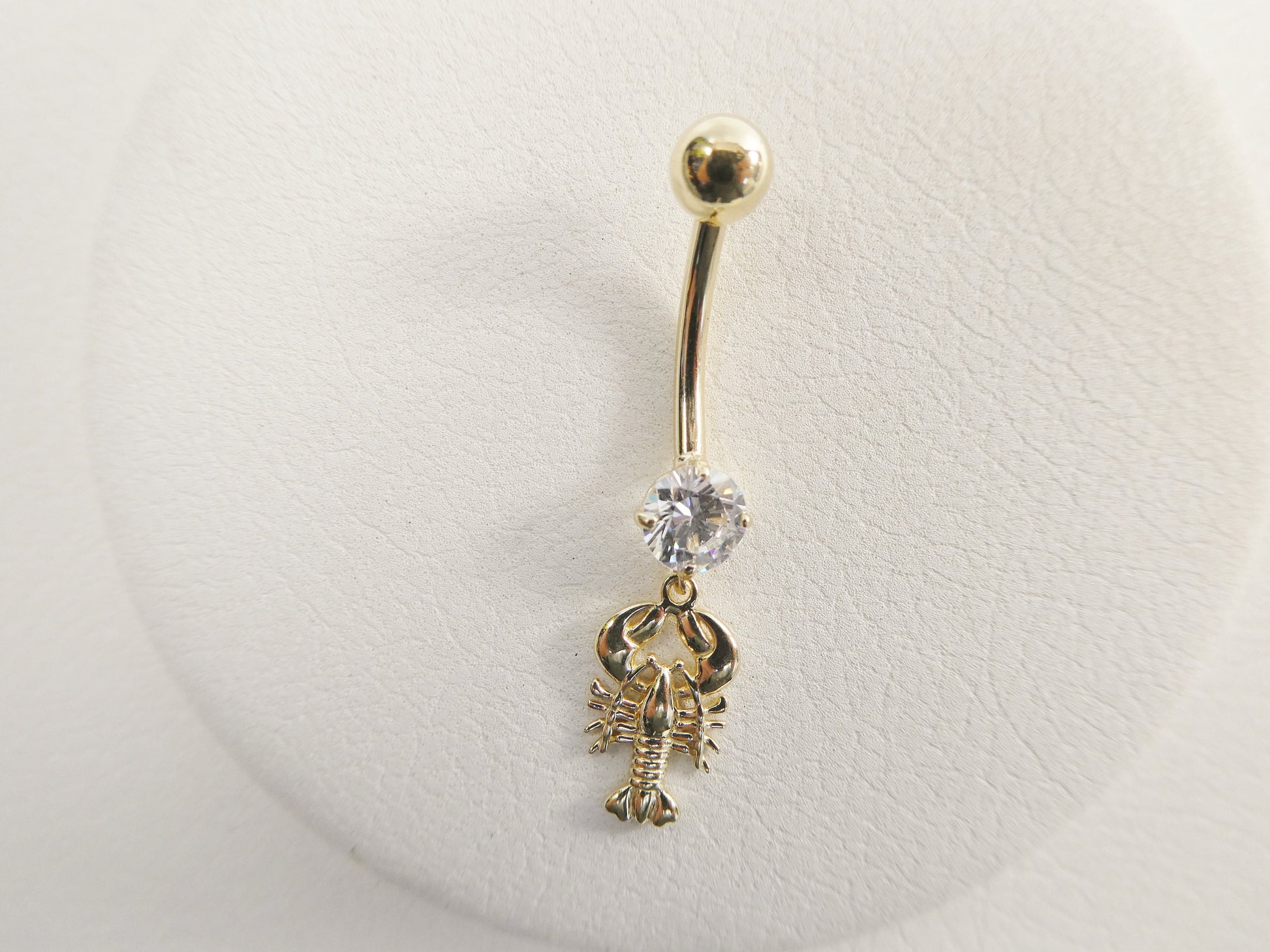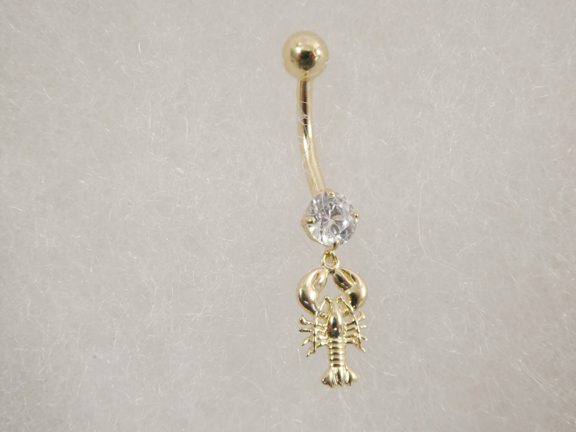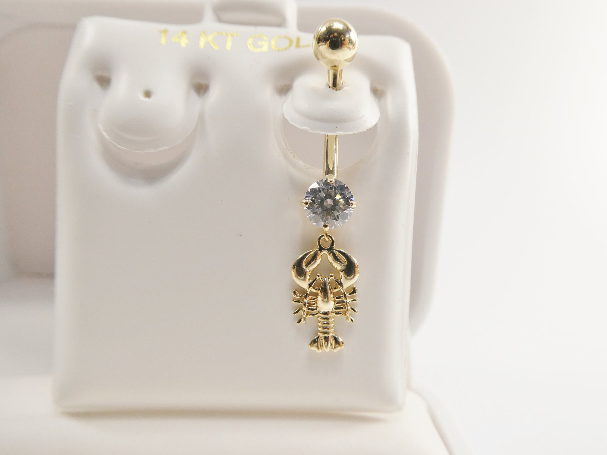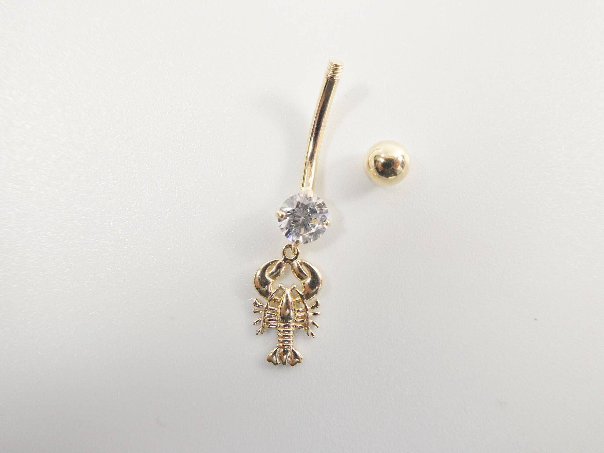 BRAND NEW REAL SOLID 14K GOLD SCORPION DANGLING BODY PIERCING 5MM AAA SHINY CUBIC ZIRCONIA ROUND STONE CENTER HIGH POLISH FINISH LUXURY ATTRACTIVE LOOK SCREW ON AND OFF GUARANTEE REAL SOLID 14K MARK AND STAMP ON THE BANANA BAR AND THE TOP SCREW BALL GOLD COME IN NICE GIFT BOX