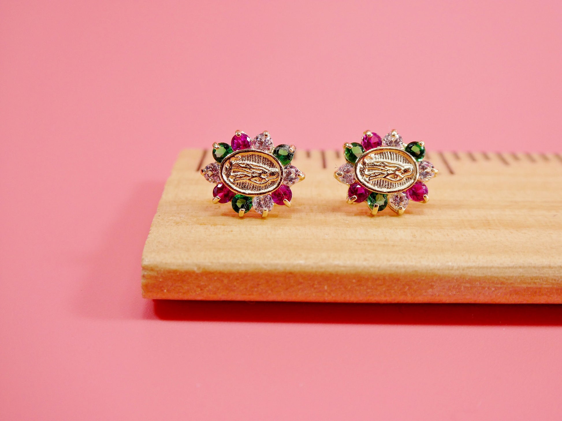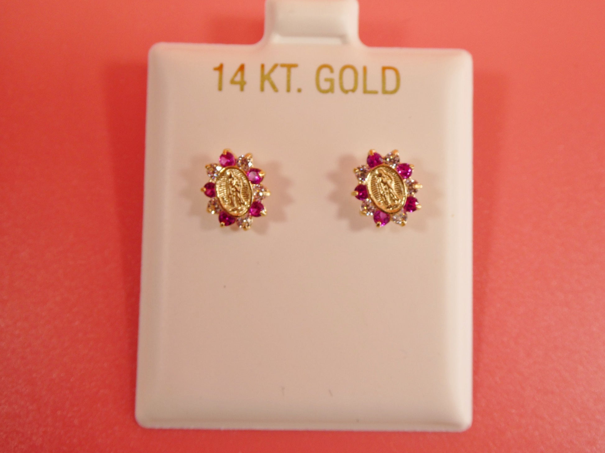 BRAND NEW 14K REAL SOLID YELLOW GOLD GUADALUPE VIRGIN MARY SCREW BACK EARRIGS GUARANTEE REAL 14K EARRING AND THE SCREW BACKING MARK AND STAMP 14K GOLD AAA SHINY CUBIC ZIRCONIA STONE GREAT FINISH LUXUARY ATTRACTIVE LOOK COME IN NICE GIFT BOX MAKE IT GREAT GIFT FOR ANY OCCASION
