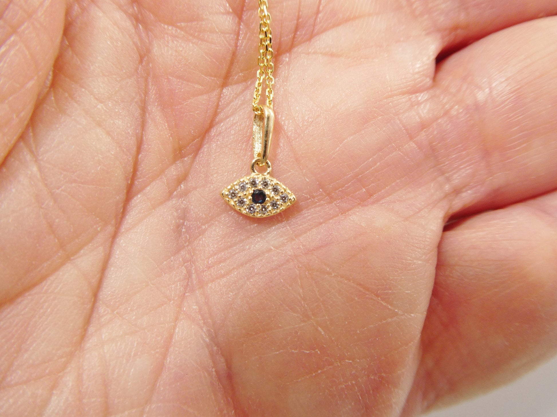 14k real solid yellow gold small evil eye pendent and cable necklace