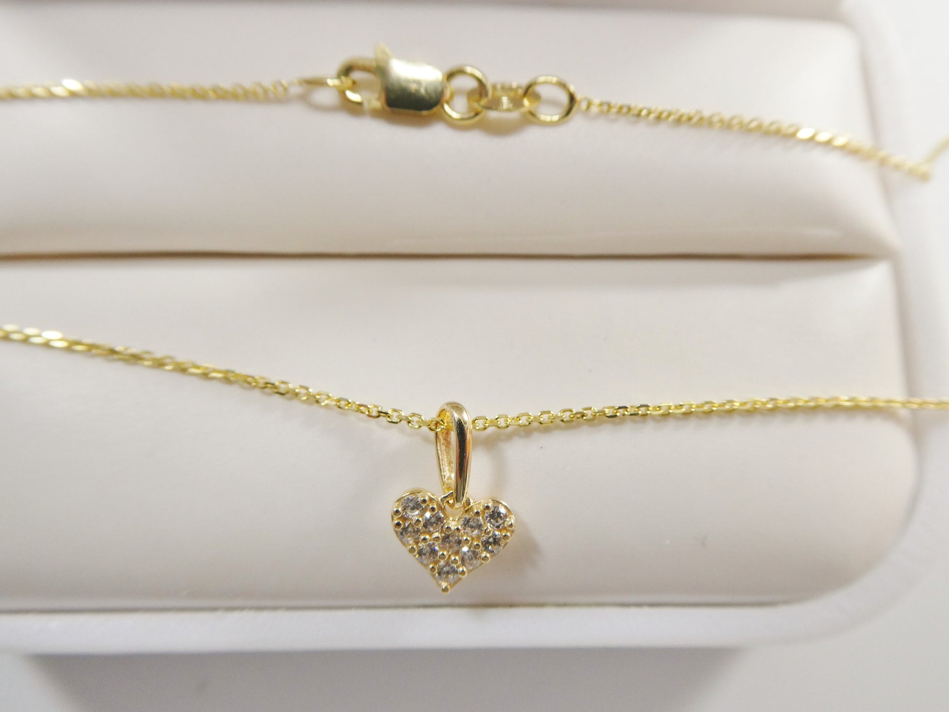 14K SOLID REAL YELLOW GOLD COLOR SMALL HEART CHARM PENDENT AND CABLE CHAIN COMES IN 16 INCH AND 18 INCH LOBSTER LOCK HIGH QUALITY SUPPER GENUINE HIGH QUALITY HIGH POLISH GREAT FINISH GREAT PRICE AAA SHINY CUBIZ ZIRCONIA MICRO FAVE SETTING GUARANTTE REAL 14K GOLD MARK AND STAMP LUXURAY ATTRACTIVE LOOK COME IN NICE GIFT BOX MAKE IT BEAUTIFUL GIFT FOR ANY OCCASION
