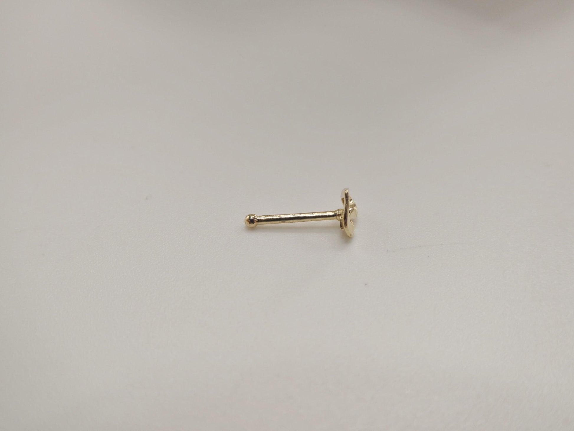 14K REAL SOLID YELLOW GOLD SMALL TINY HEART NOSE RING THICKNESS 23 GAUGE POST LENGTH 7MM BALL END SIZE 1MM HIGH QUALITY HIGH POLISH GREAT PRICE GREAT FOR SENSITVE SKIN GUARANTEE REAL 14K GOLD MARK AND STAMP COME IN NICE GIFT BOX