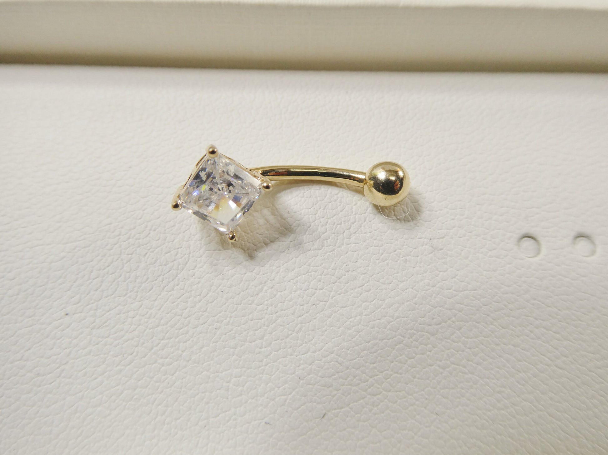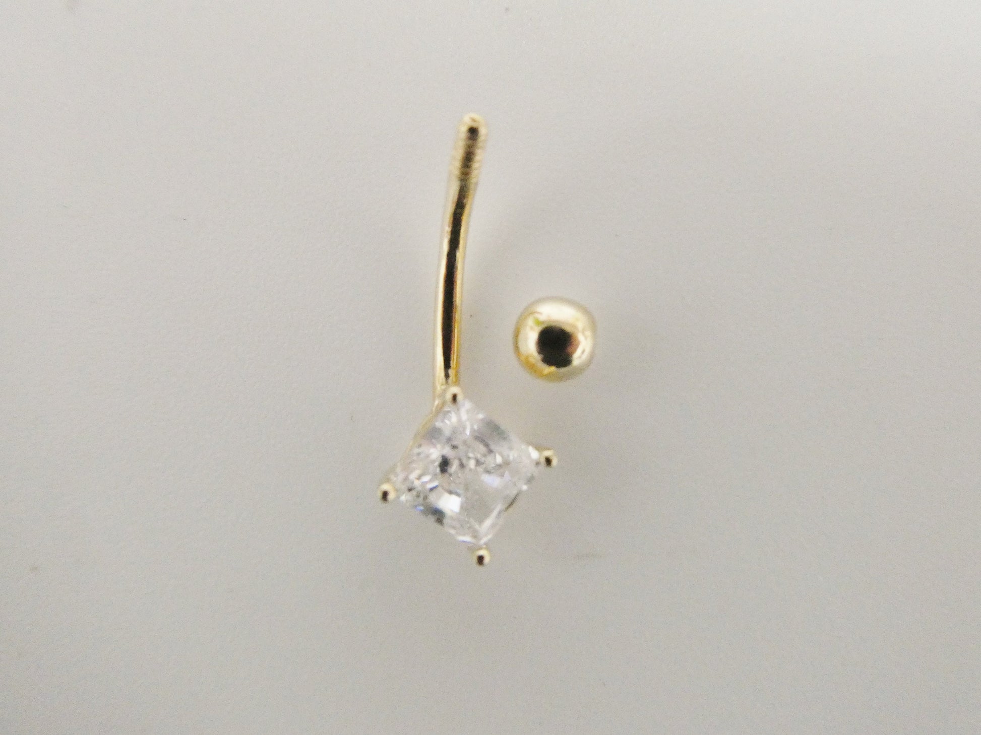 BRAND NEW REAL SOLID 14K REAL GOLD 5MM SQUARE SPARKLING STONE BODY PIERCING FULL MICRO FAVE SETTING HIGH POLISH GREAT QUALITY GREAT PRICE GREAT FOR SKIN SENSITIVE FINISH LUXURY ATTRACTIVE LOOK SCREW ON AND OFF GUARANTEE REAL SOLID 14K MARK AND STAMP ON THE BANANA BAR AND THE TOP SCREW BALL GOLD COME IN NICE GIFT BOX