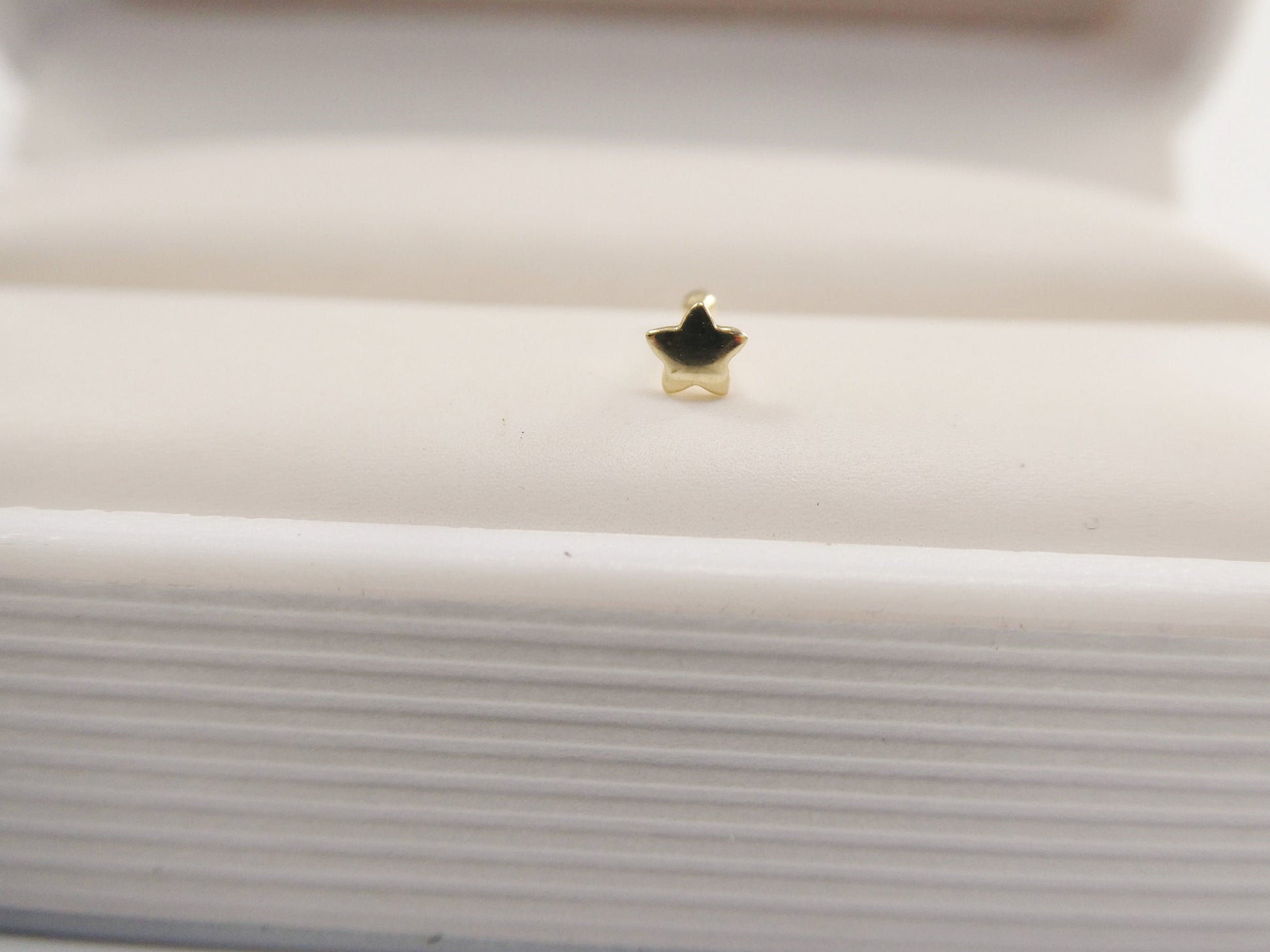 14K REAL SOLID YELLOW GOLD STAR NOSE RING 7MM LENGTH HIGH QUALITY HIGH POLISH GUARANTEE REAL 14K GOLD MARK AND STAMP COME IN NICE GIFT BOX