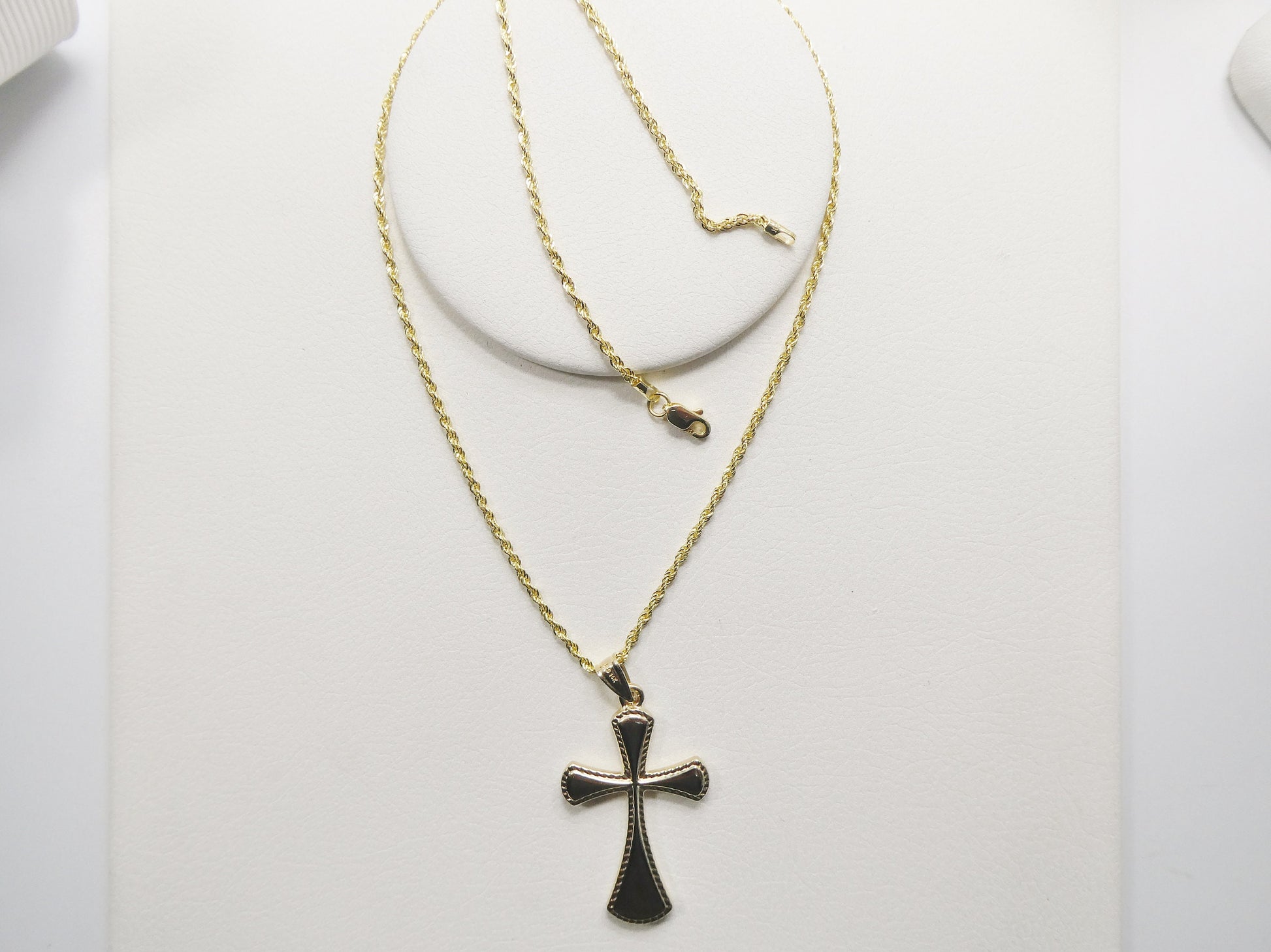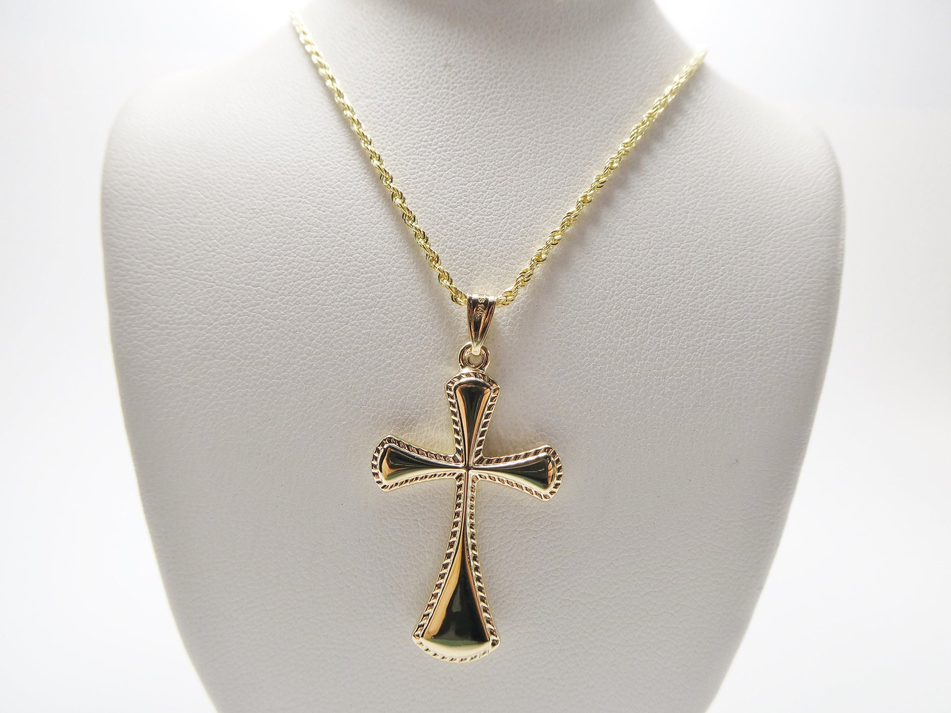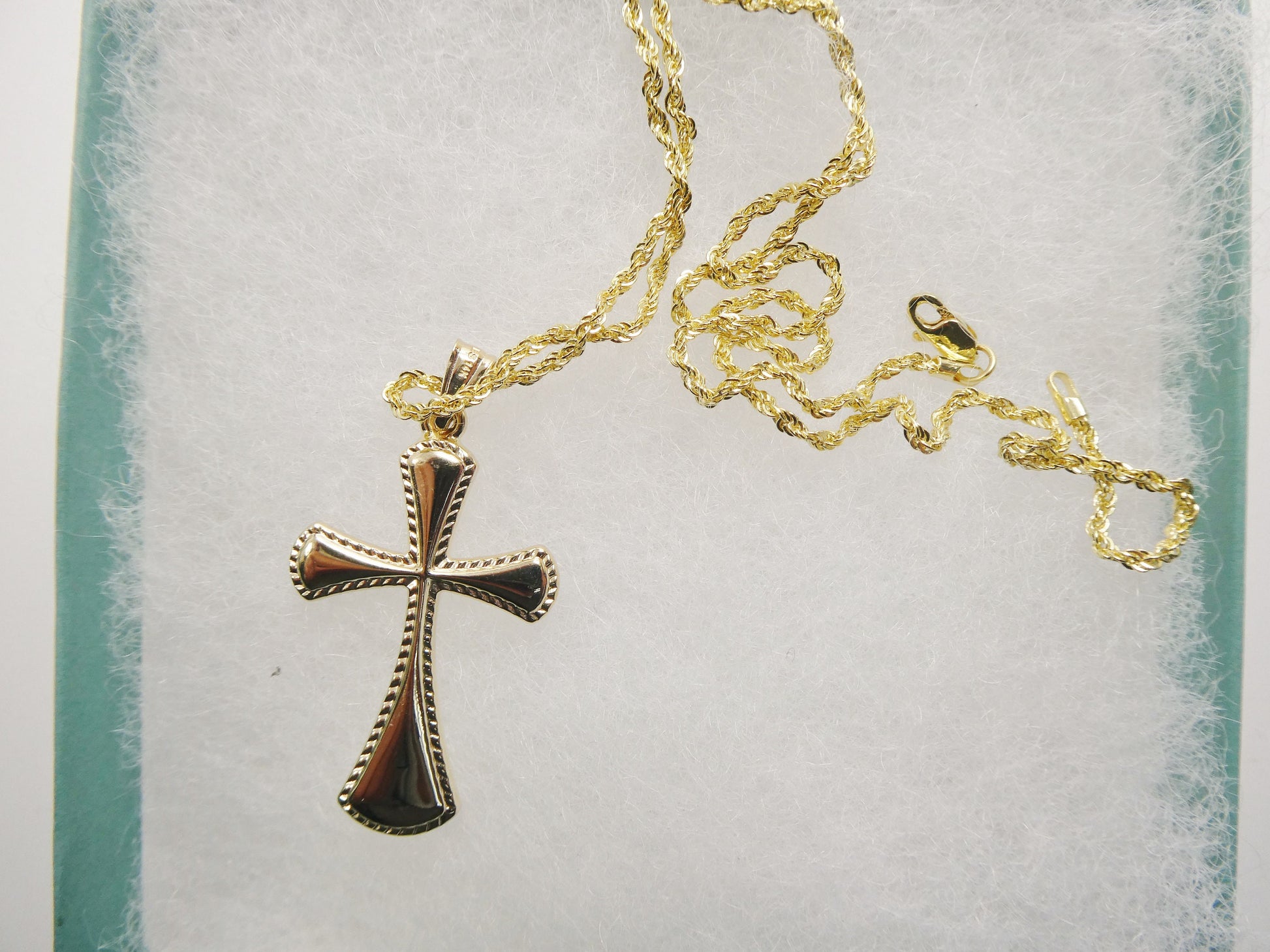 14k real solid yellow gold super high polish cross pendent and robe necklace