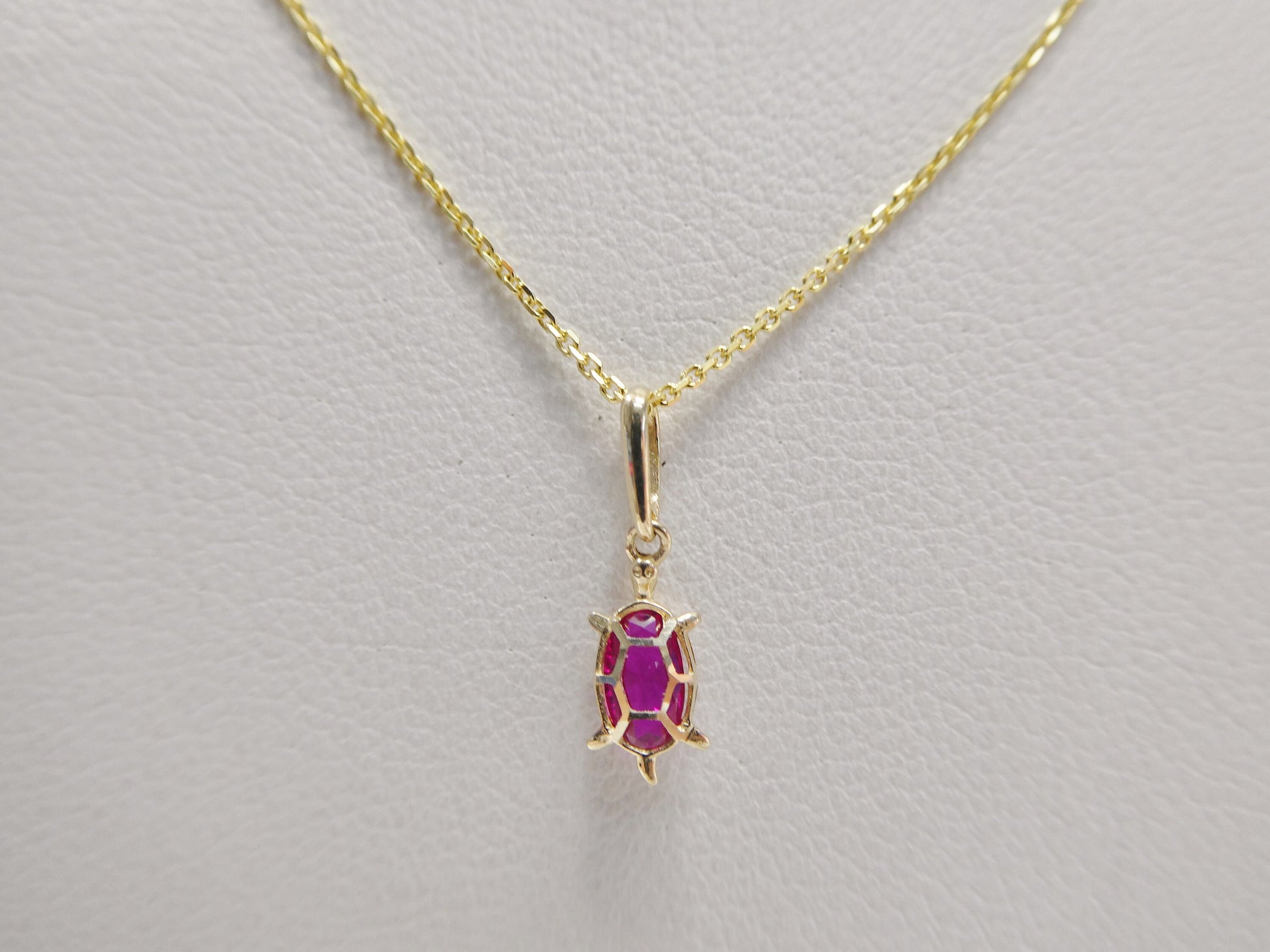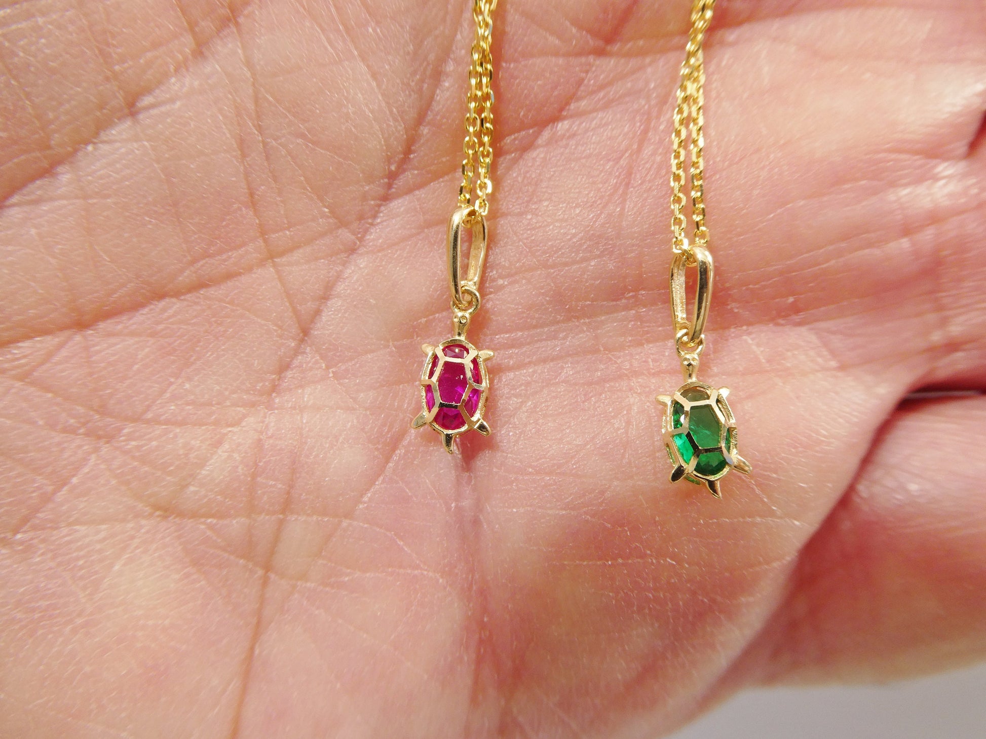14K SOLID REAL YELLOW GOLD TINY COLOR STONE TURTLE RED STONE/GREEN STONE CHARM PENDENT AND CABLE CHAIN COMES IN 16 INCH AND 18 INCH LOBSTER LOCK HIGH QUALITY SUPPER GENUINE HIGH QUALITY HIGH POLISH GREAT FINISH GREAT PRICE AAAA SHINY CUBIZ ZIRCONIA MICRO FAVE SETTING GUARANTTE REAL 14K GOLD MARK AND STAMP LUXURAY ATTRACTIVE LOOK COME IN NICE GIFT BOX MAKE IT BEAUTIFUL GIFT FOR ANY OCCASION