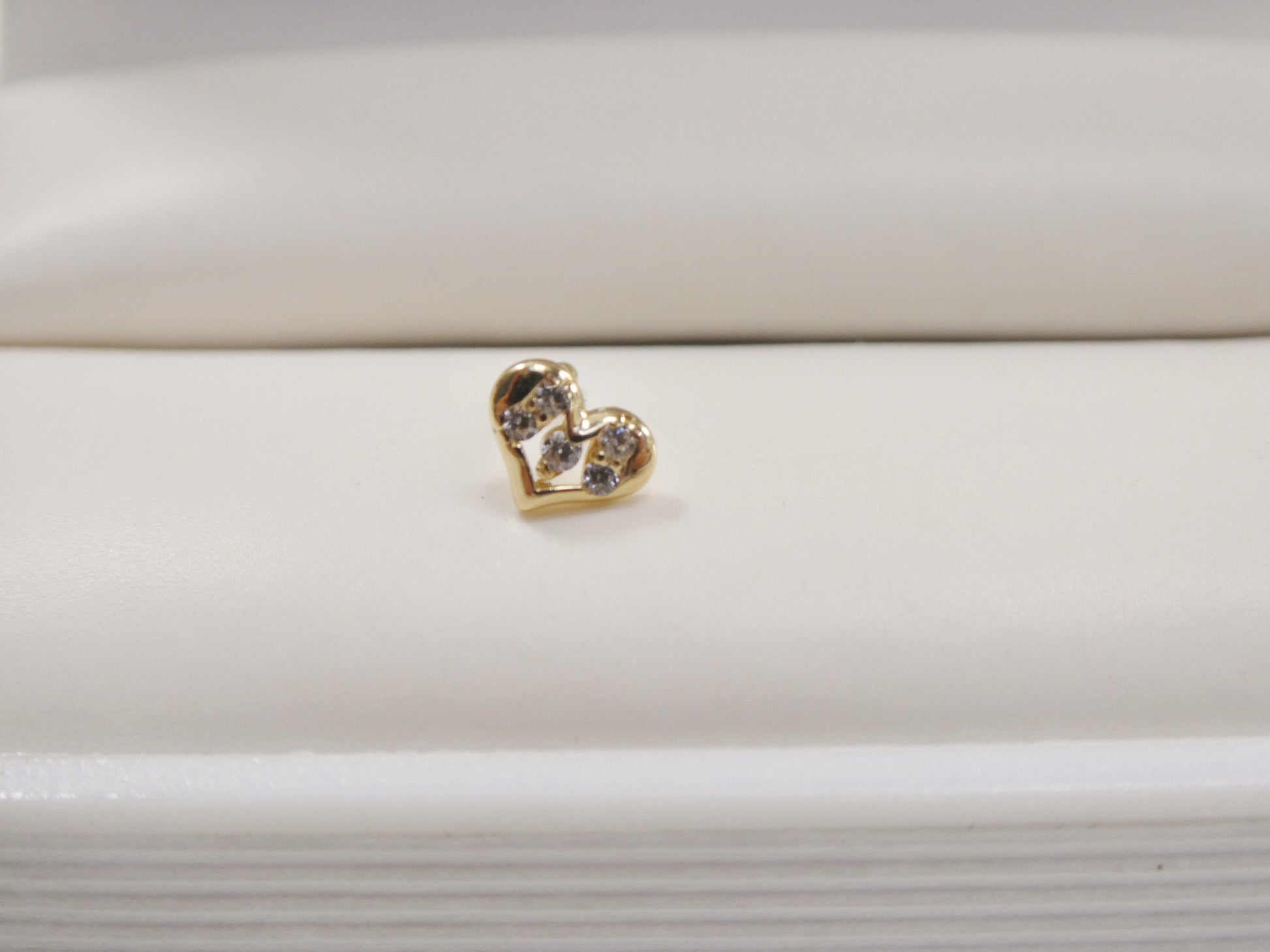 14K REAL SOLID YELLOW GOLD TINY HEART STUD NOSE RING FULL SHINY AAA CUBIC ZIRCONIA POST LENGTH 7MM THICKNESS 23 GAUGE COME IN YELLOW GOLD AND WHITE GOLD HIGH QUALITY HIGH POLISH GUARANTEE REAL 14K GOLD MARK AND STAMP COME IN NICE GIFT BOX