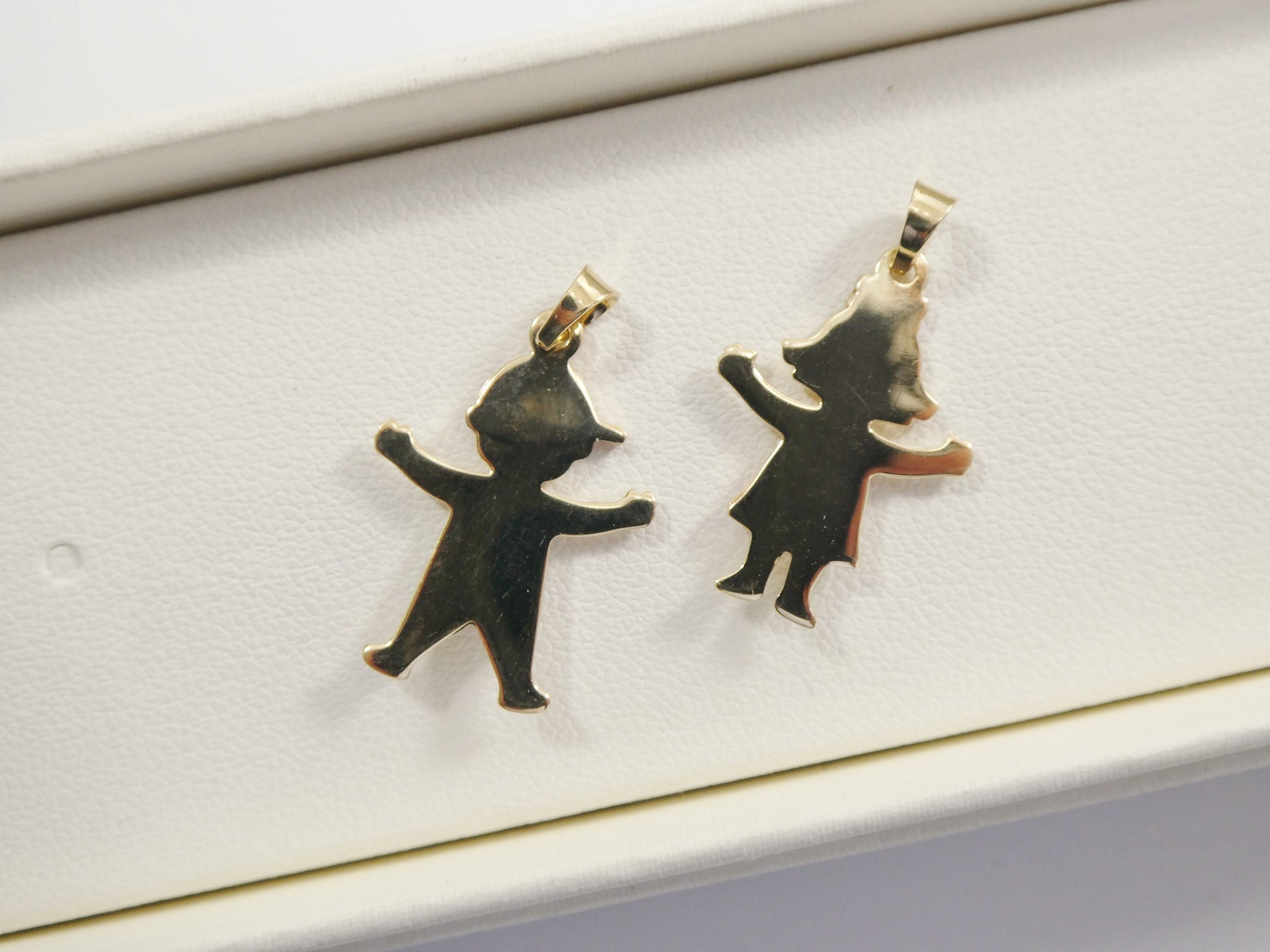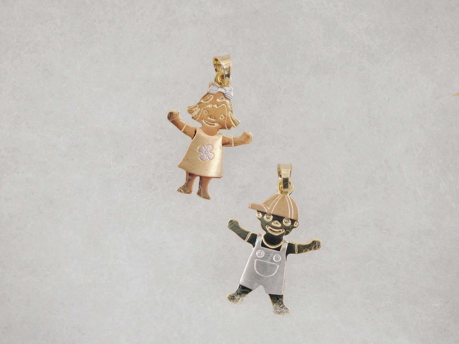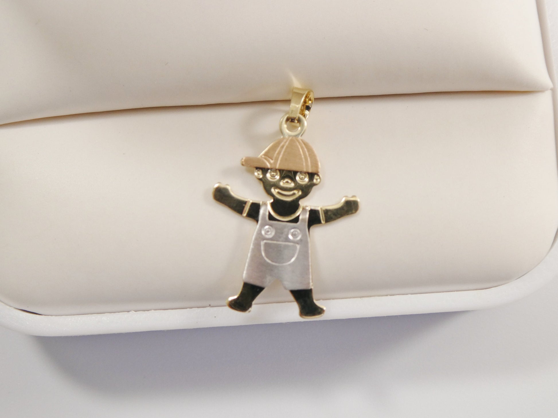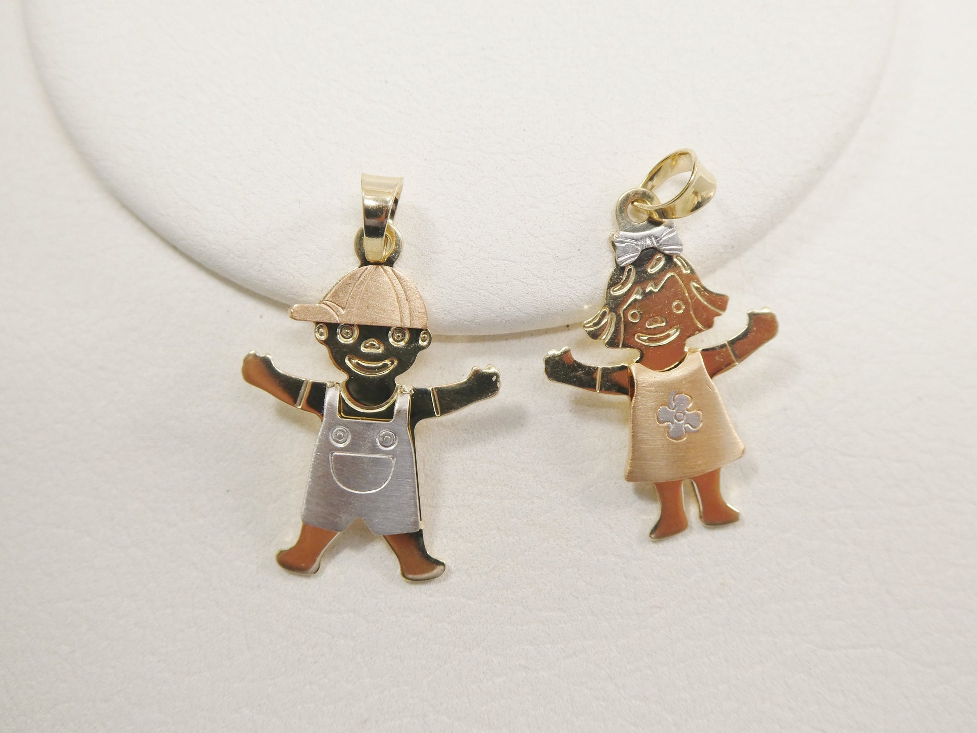 14K SOLID REAL YELLOW GOLD SMALL TRI COLOR BOY GIRL CHARM HANDCRAFTED HIGH QUALITY SUPPER HIGH POLISH FINISH