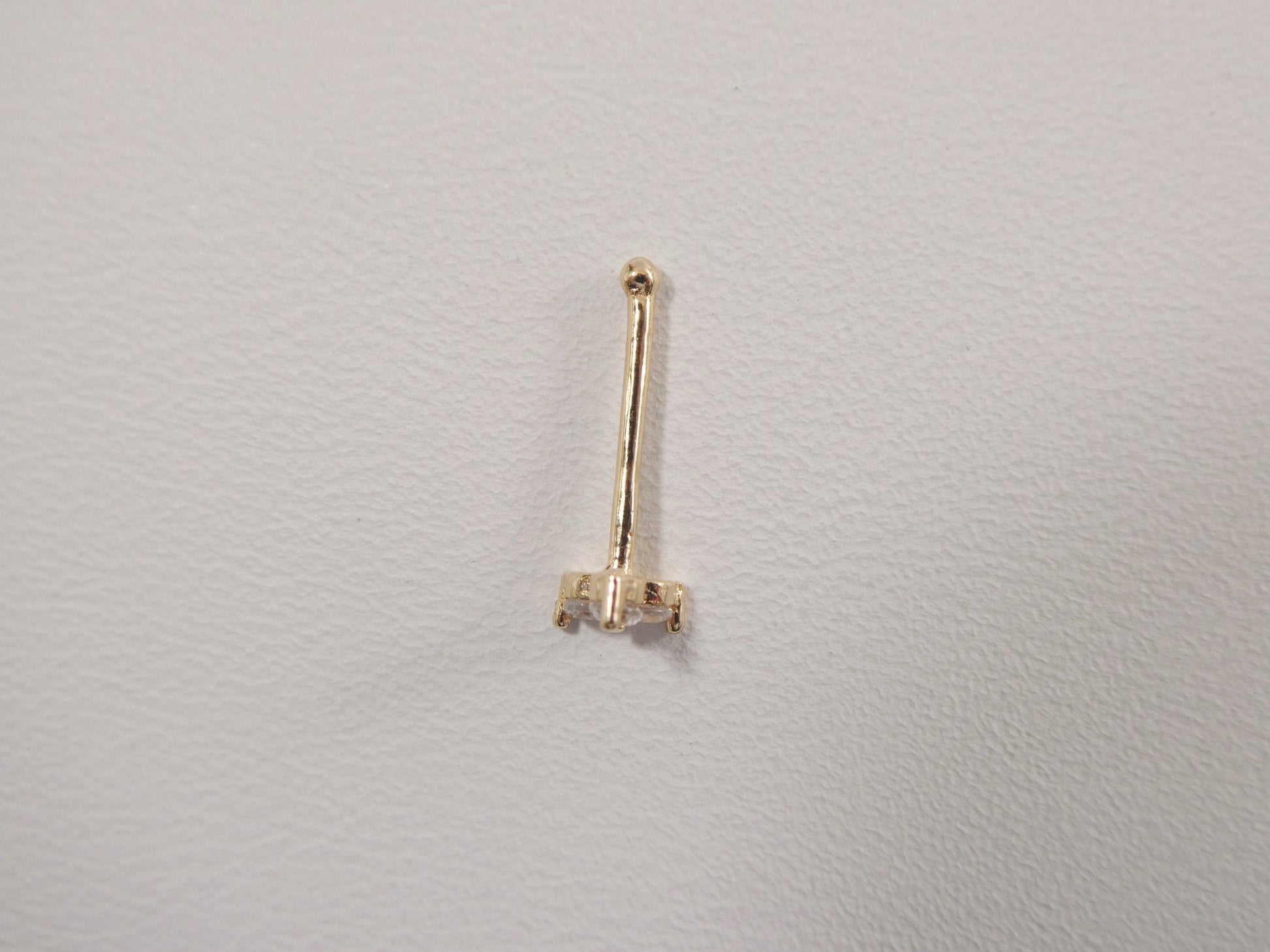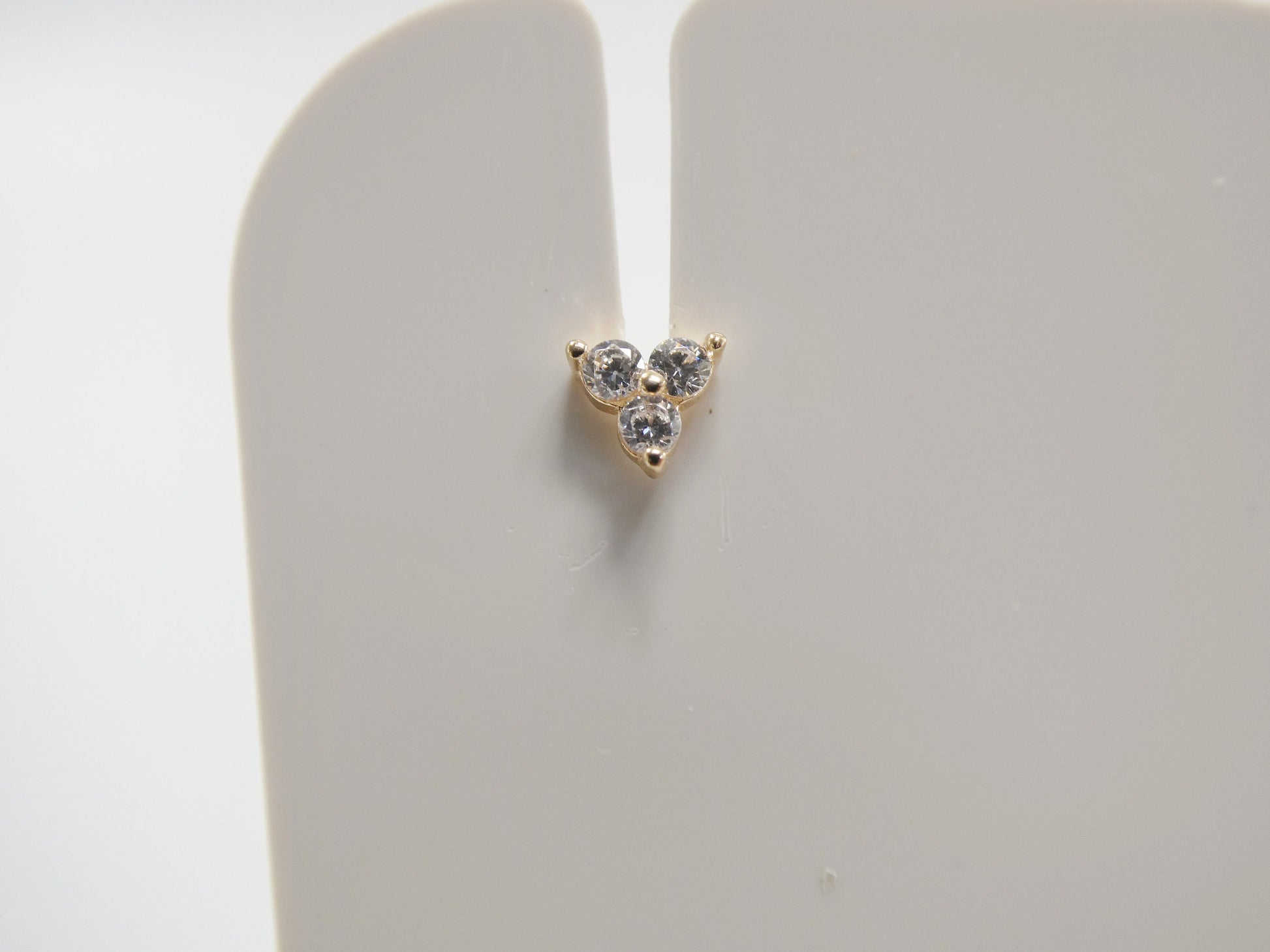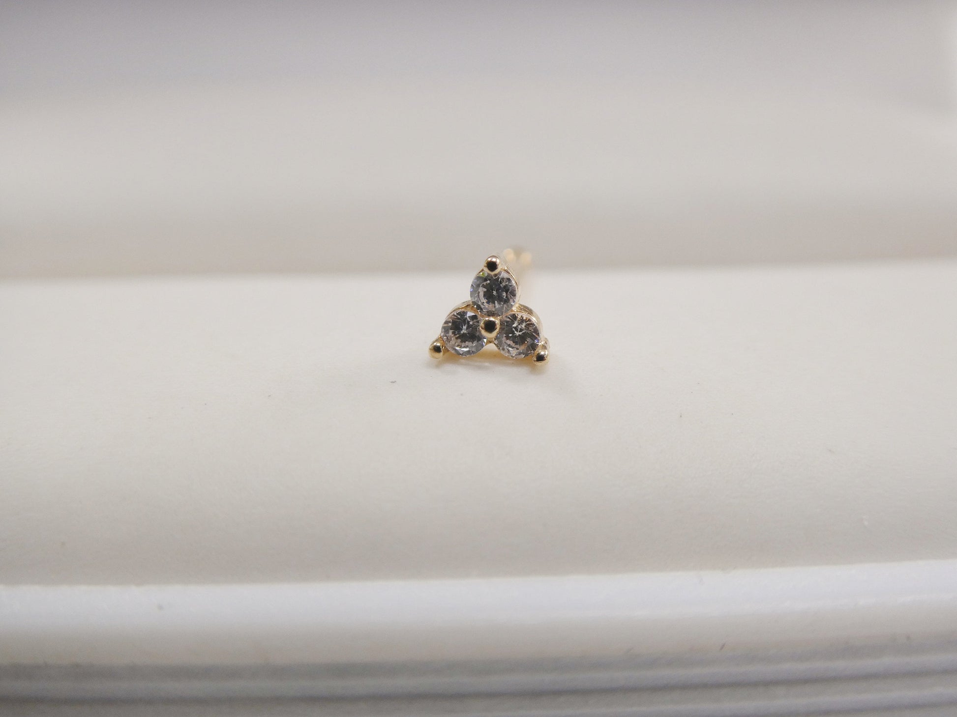 14K REAL SOLID YELLOW GOLD TRINGLE 1.5MM 3 STONE STUD NOSE RING 10.66MM LENGTH HIGH QUALITY HIGH POLISH GUARANTEE REAL 14K GOLD MARK AND STAMP COME IN NICE GIFT BOX