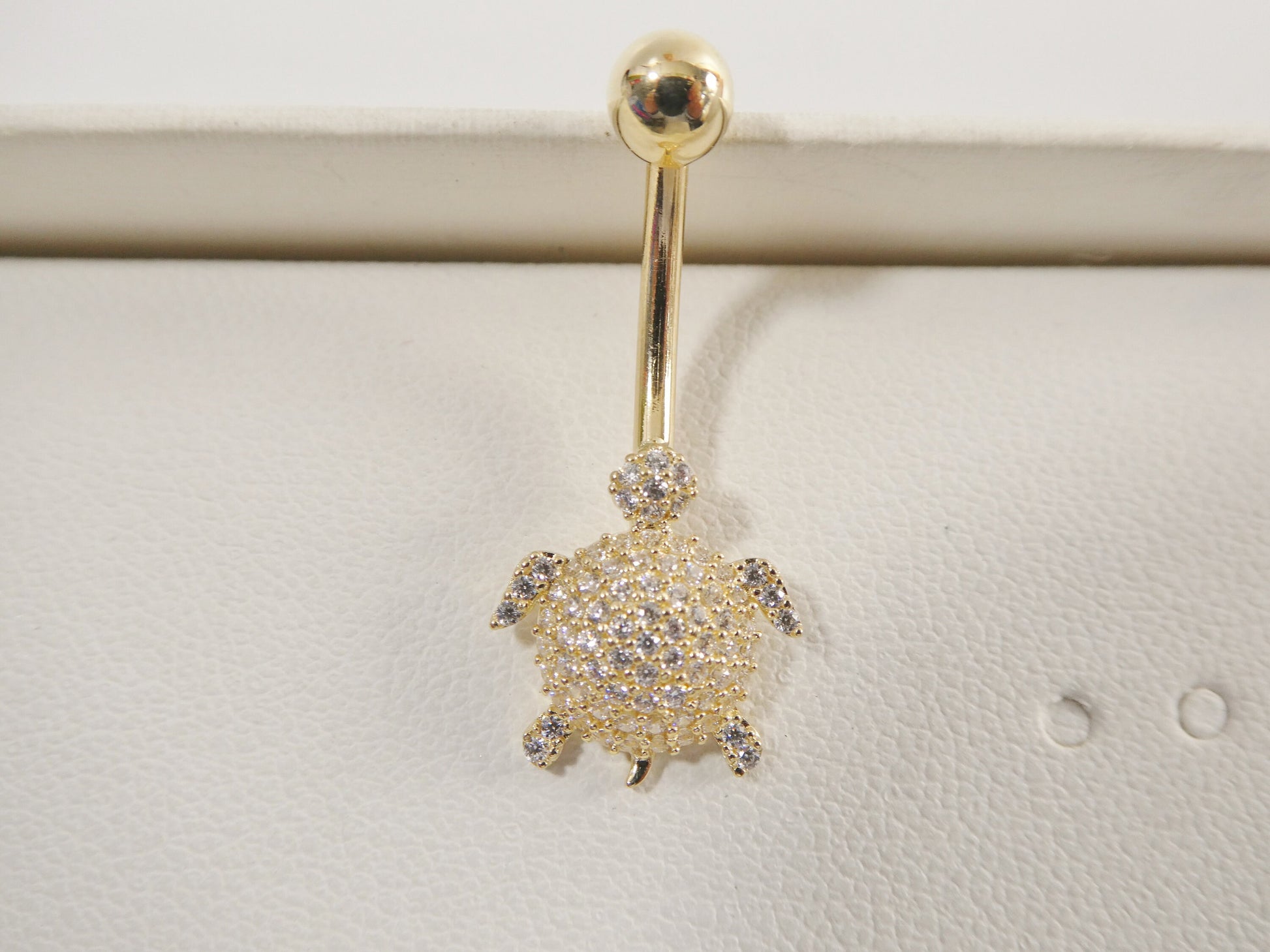 BRAND NEW REAL SOLID 14K YELLOW GOLD TURTLE BELLY BUTTON RING MICRO FAVE SETTING AAA CUBIC ZIRCONIA SHINY STONE HIGH POLISH GREAT FINISH LUXURY ATTRACTIVE LOOK HIGH QUALITY SCREW ON AND OFF GUARANTEE REAL 14K GOLD MARK AND STAMP ON THE BANANA BAR AND THE TOP SRCEW COME IN NICE GIFT BOX MAKE IT PERFECT GIFT FOR ANY OCCASION