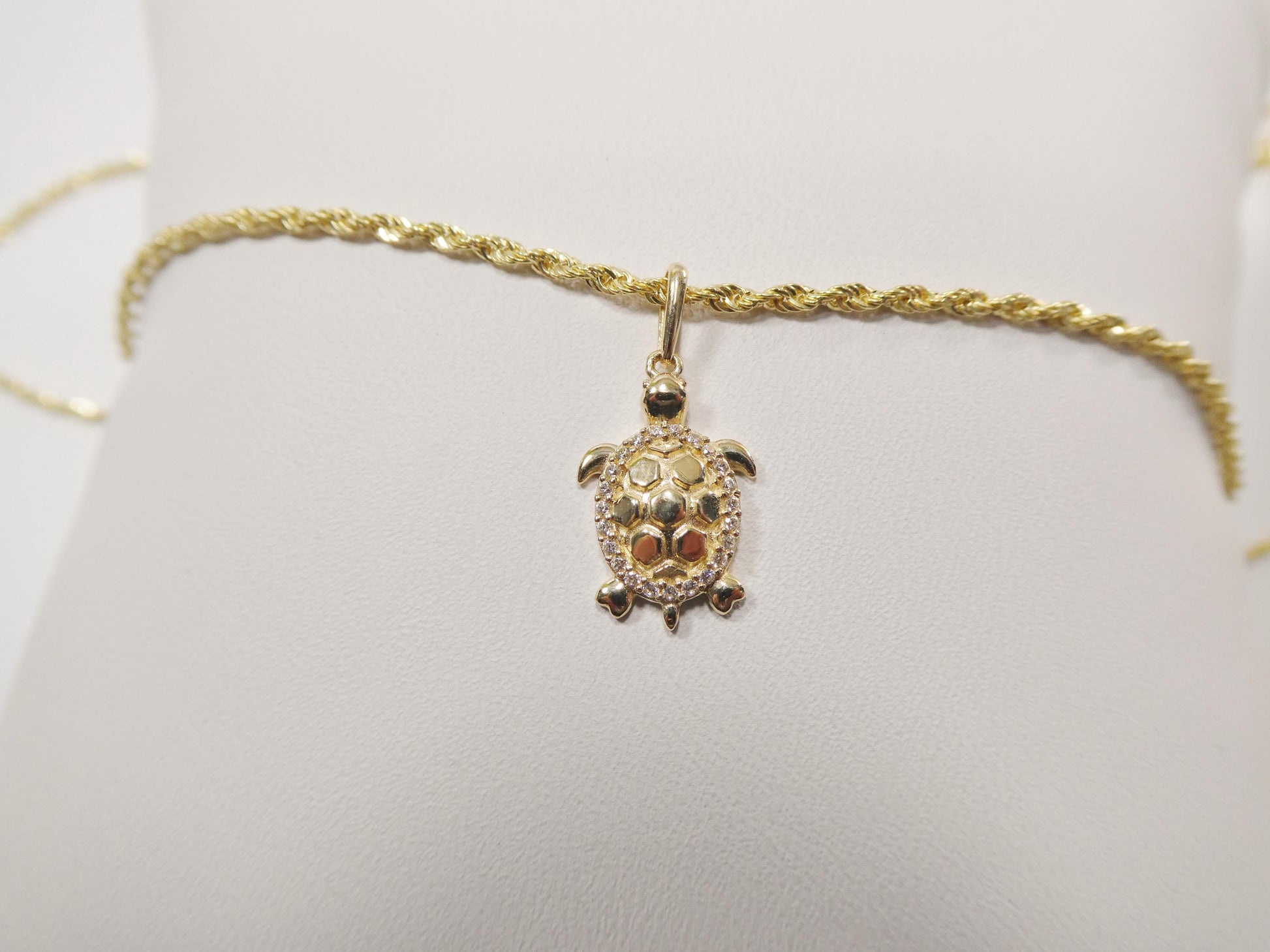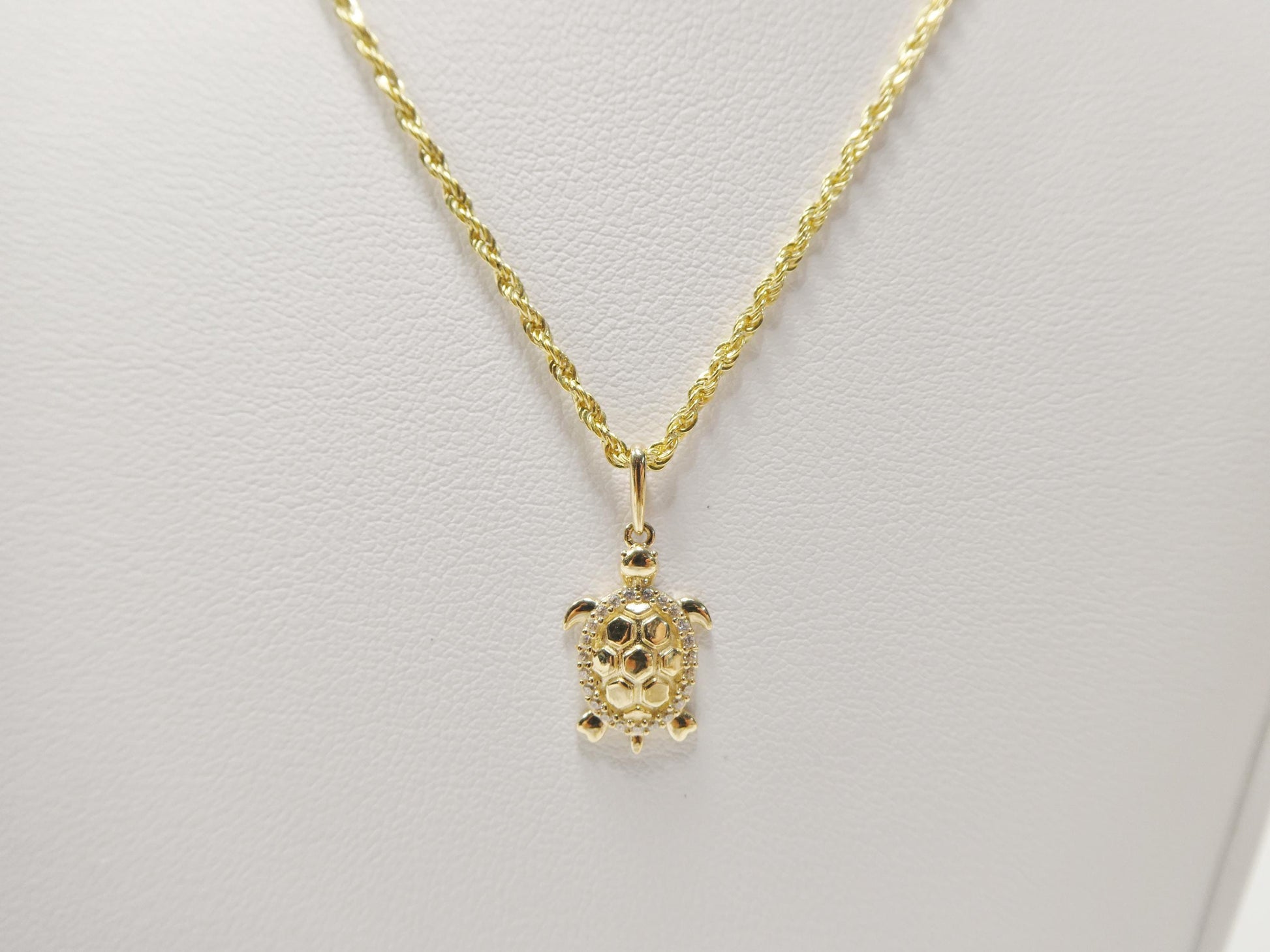 14K SOLID REAL YELLOW GOLD COLOR TURTLE CHARM PENDENT 18 INCH ROPE CHAIN LOBSTER LOCK HIGH QUALITY SUPPER GENUINE HIGH QUALITY HIGH POLISH GREAT FINISH GREAT PRICE AAAA SHINY CUBIZ ZIRCONIA MICRO FAVE SETTING GUARANTTE REAL 14K GOLD MARK AND STAMP LUXURAY ATTRACTIVE LOOK COME IN NICE GIFT BOX MAKE IT BEAUTIFUL GIFT FOR ANY OCCASION