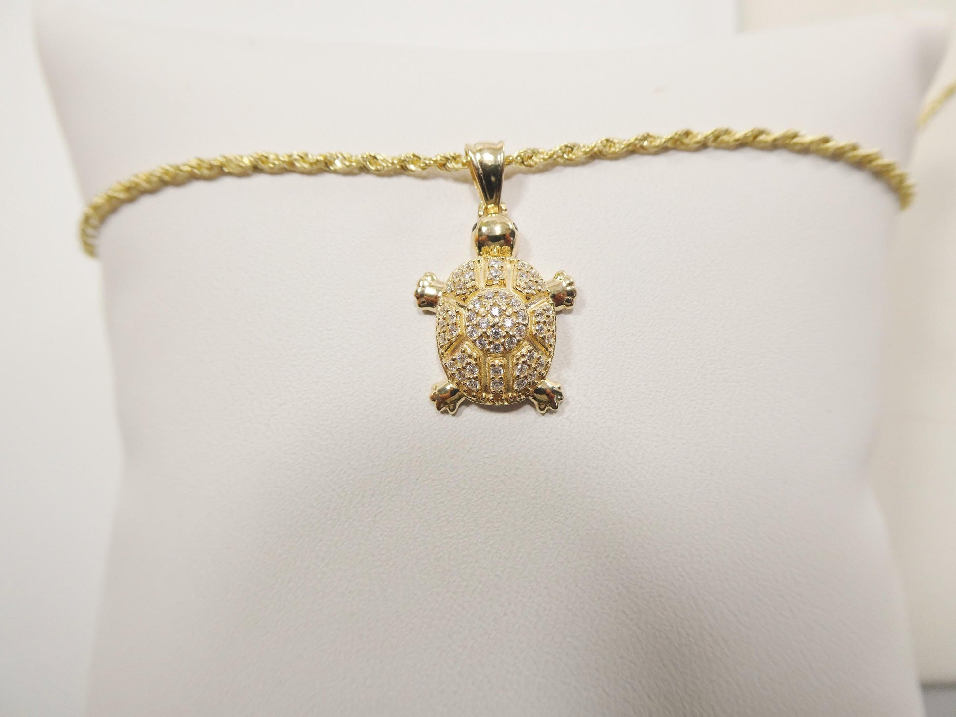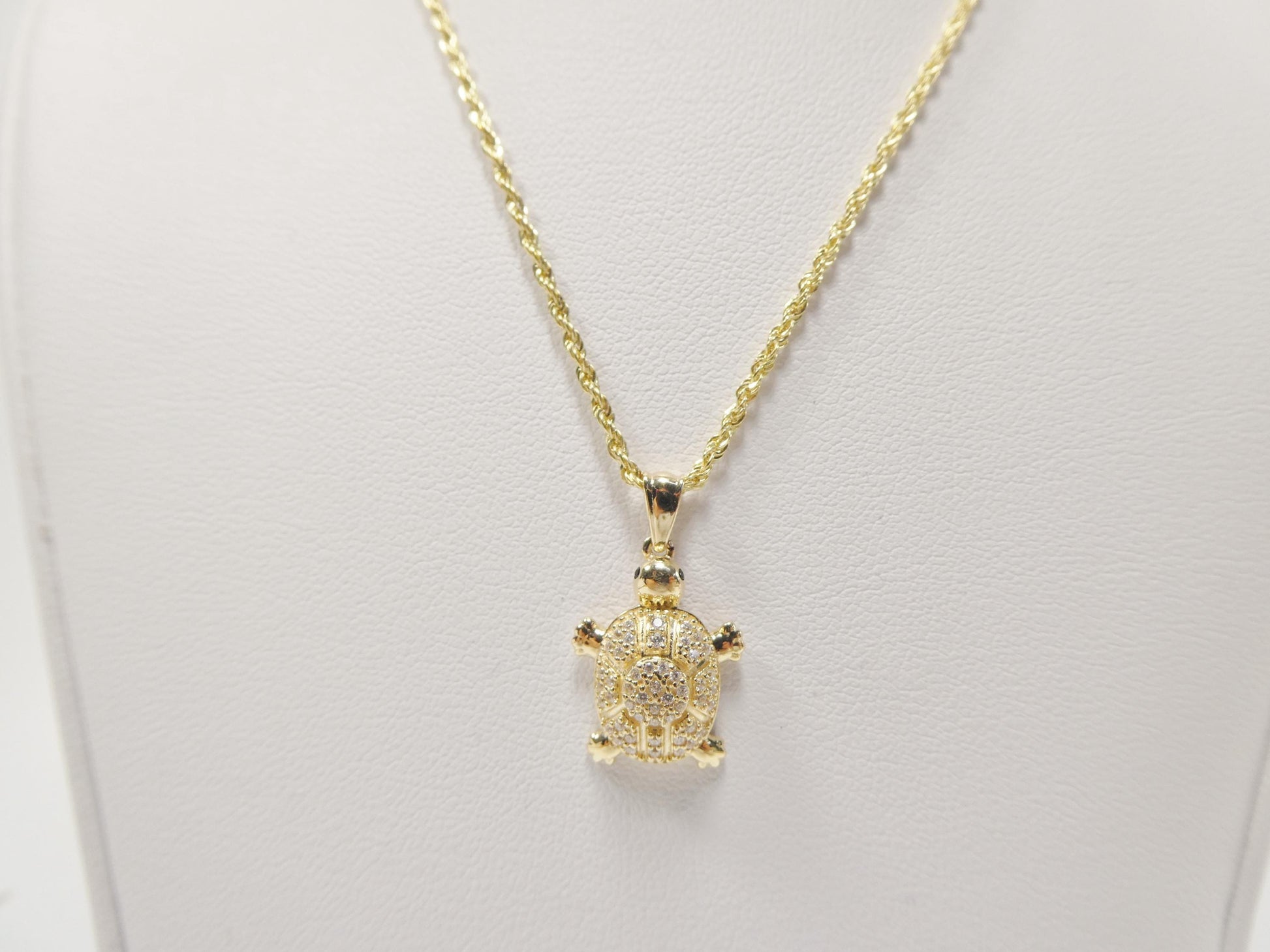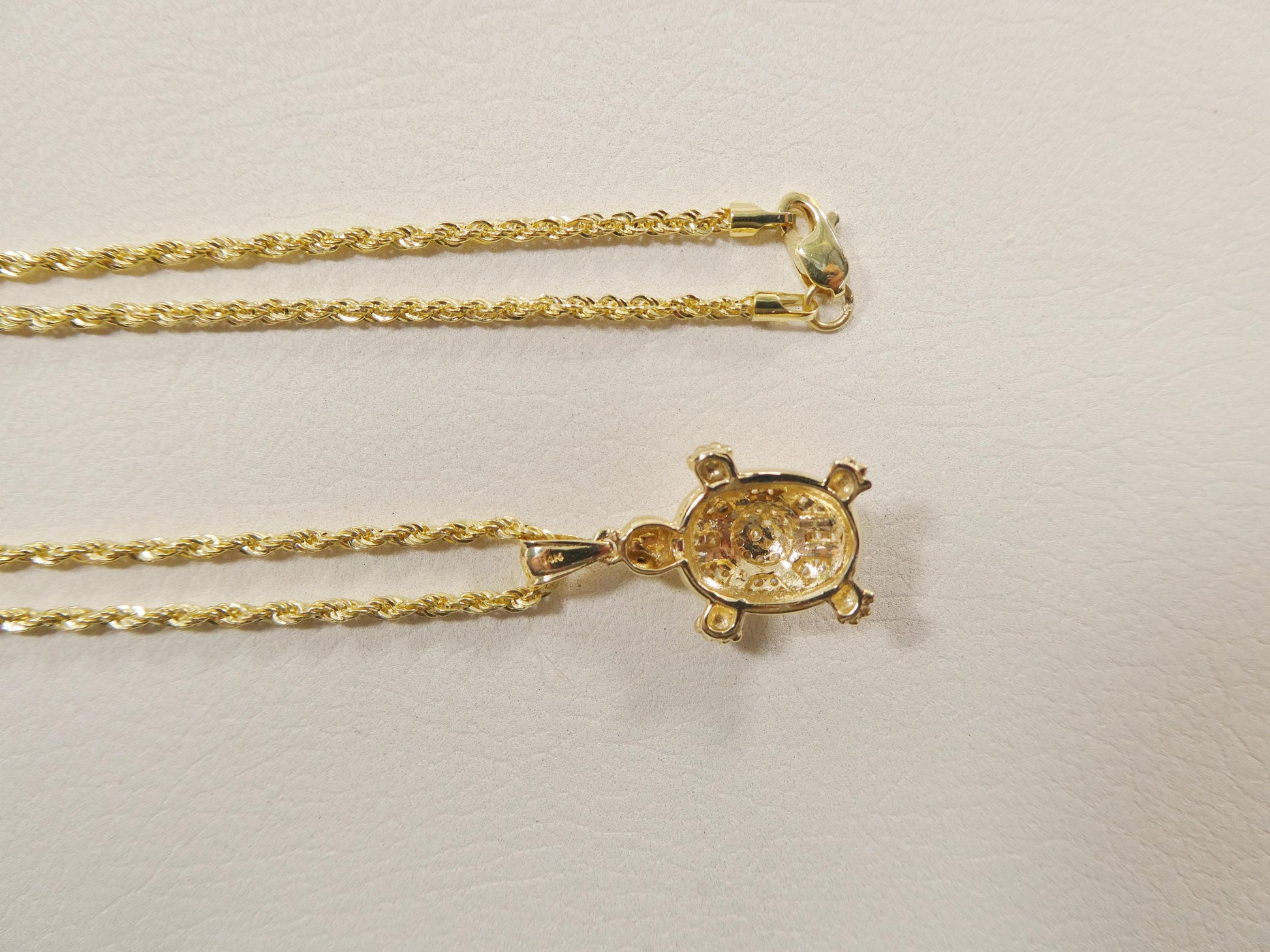 14K SOLID REAL YELLOW GOLD COLOR TURTLE CHARM PENDENT 18 INCH ROPE CHAIN LOBSTER LOCK HIGH QUALITY SUPPER GENUINE HIGH QUALITY HIGH POLISH GREAT FINISH GREAT PRICE AAAA SHINY CUBIZ ZIRCONIA MICRO FAVE SETTING GUARANTTE REAL 14K GOLD MARK AND STAMP LUXURAY ATTRACTIVE LOOK COME IN NICE GIFT BOX MAKE IT BEAUTIFUL GIFT FOR ANY OCCASION