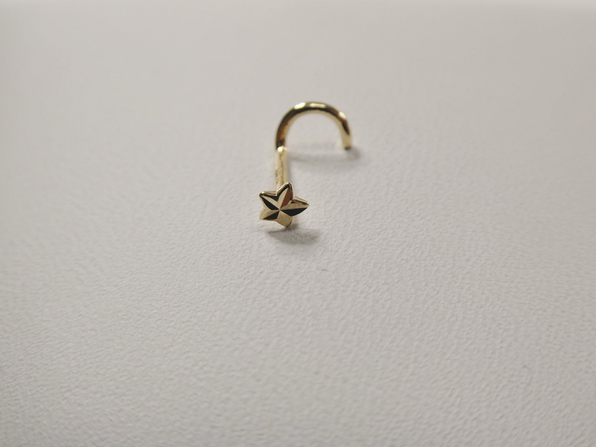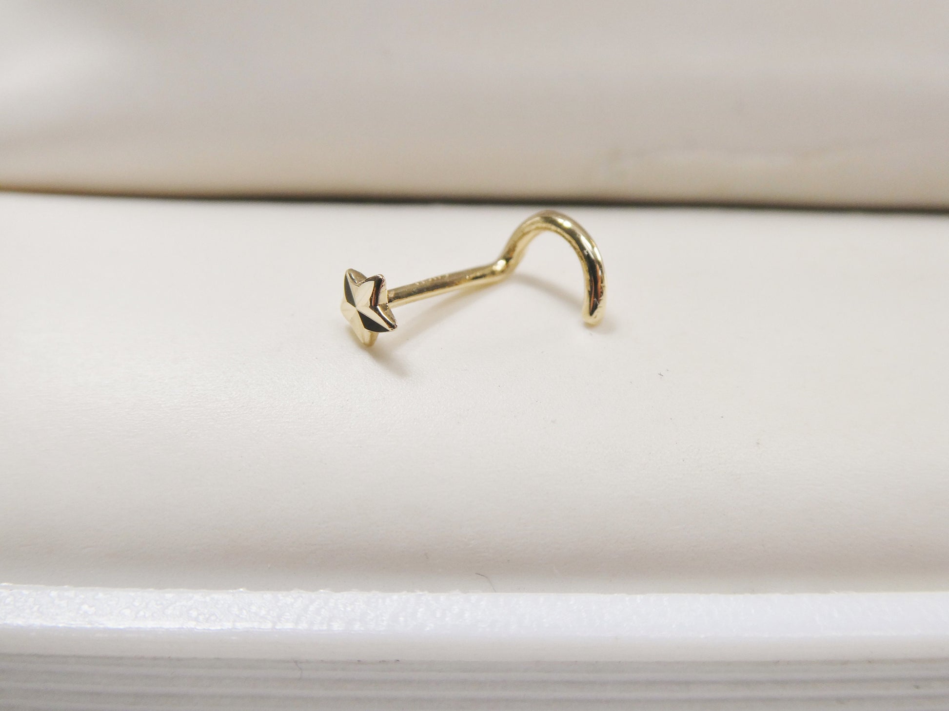 14K REAL SOLID YELLOW GOLD TWIST DIAMOND CUT STAR STUD NOSE RING POST LENGTH THICKNESS 23 GAUGE HIGH QUALITY HIGH POLISH GUARANTEE REAL 14K GOLD MARK AND STAMP COME IN NICE GIFT BOX