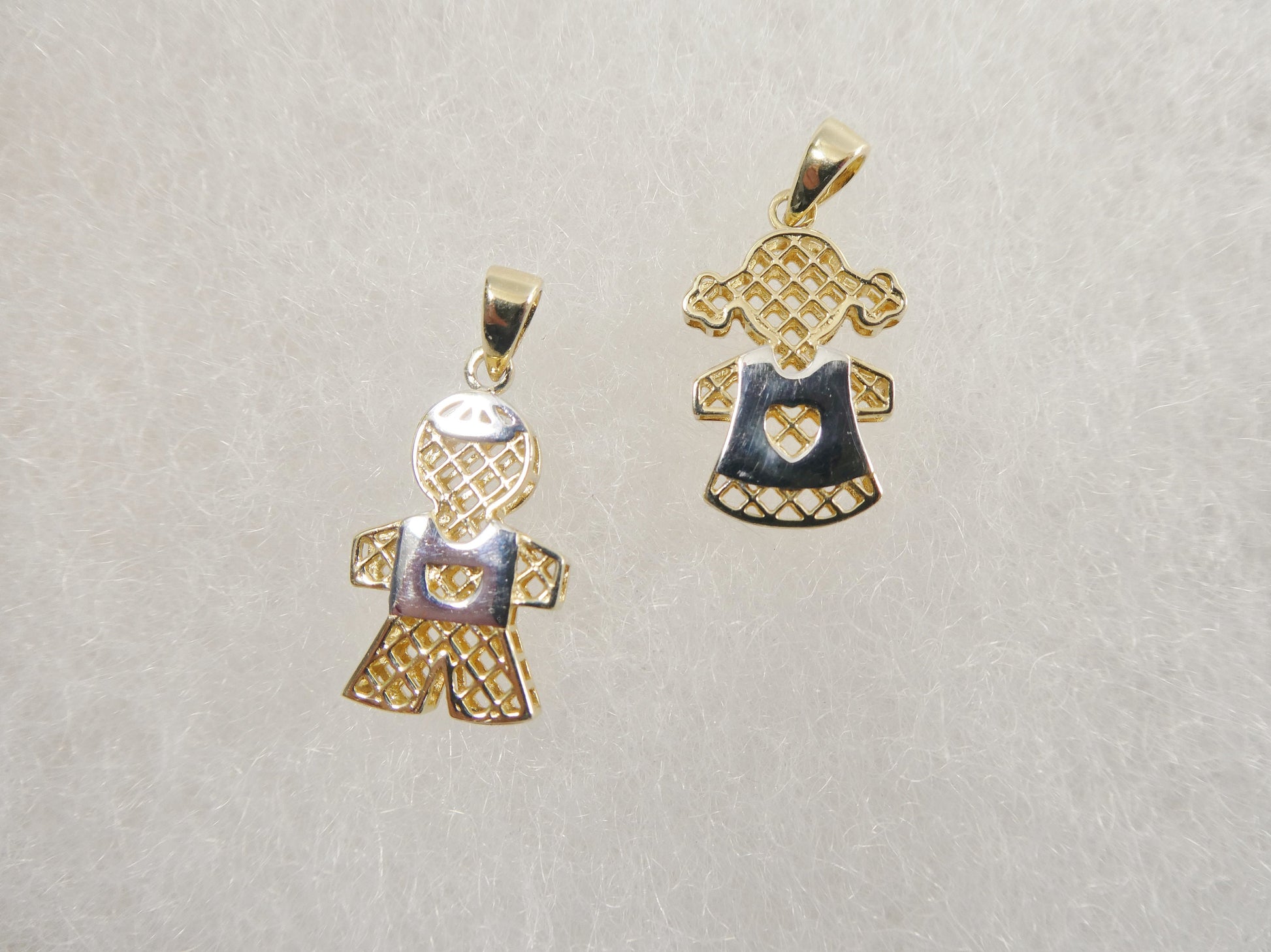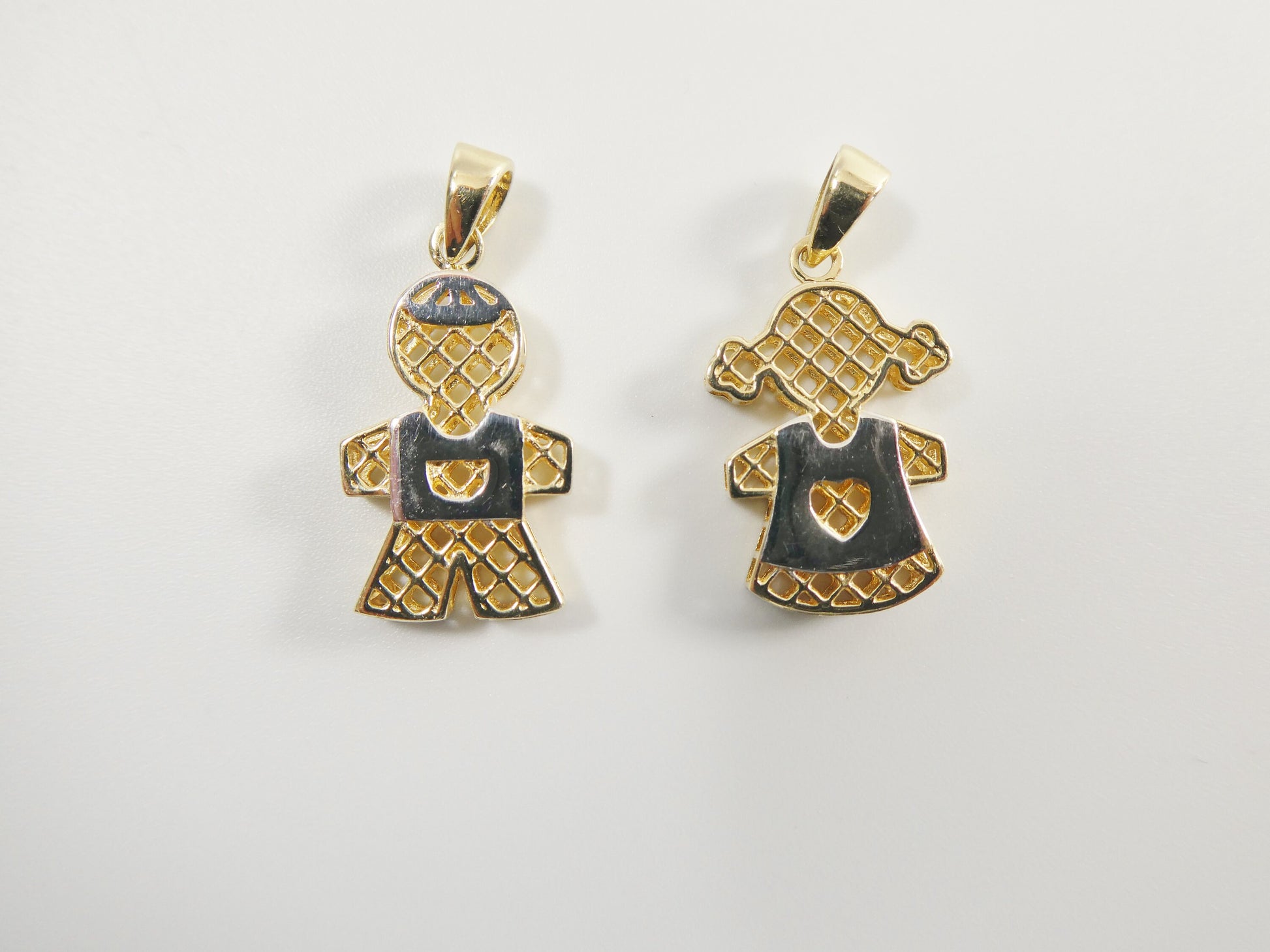 14K SOLID REAL YELLOW GOLD TWO TONE BOY GIRL CHARM HANDCRAFTED HIGH QUALITY SUPPER HIGH POLISH FINISH GREAT PRICE