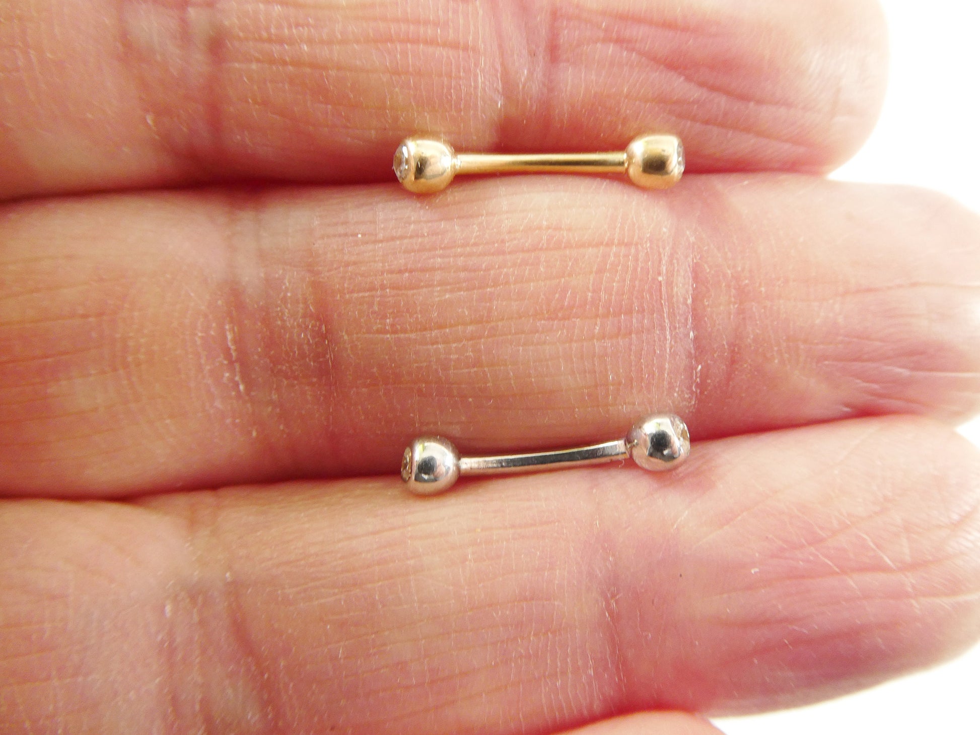 14K real solid yellow gold white gold eyebrow cz both side curve piercing