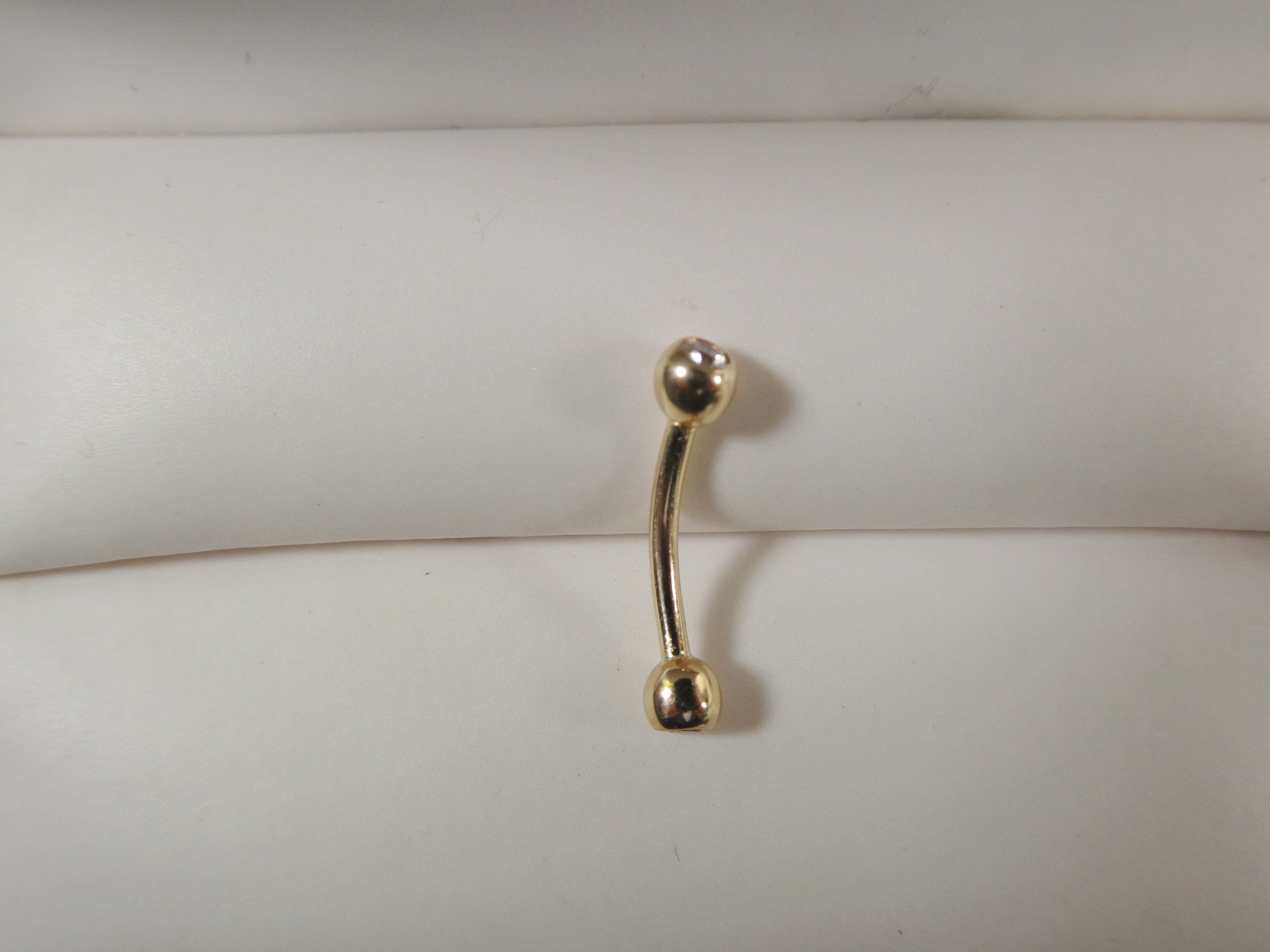 14K REAL SOLID YELLOW GOLD EYEBROW CURVE SHINY CZ BOTH SIDE PIERCING COME IN YELLOW AND WHITE GOLD GUARANTEE REAL SOLID 14K GOLD MARK AND STAMP COME IN NICE GIFT BOX