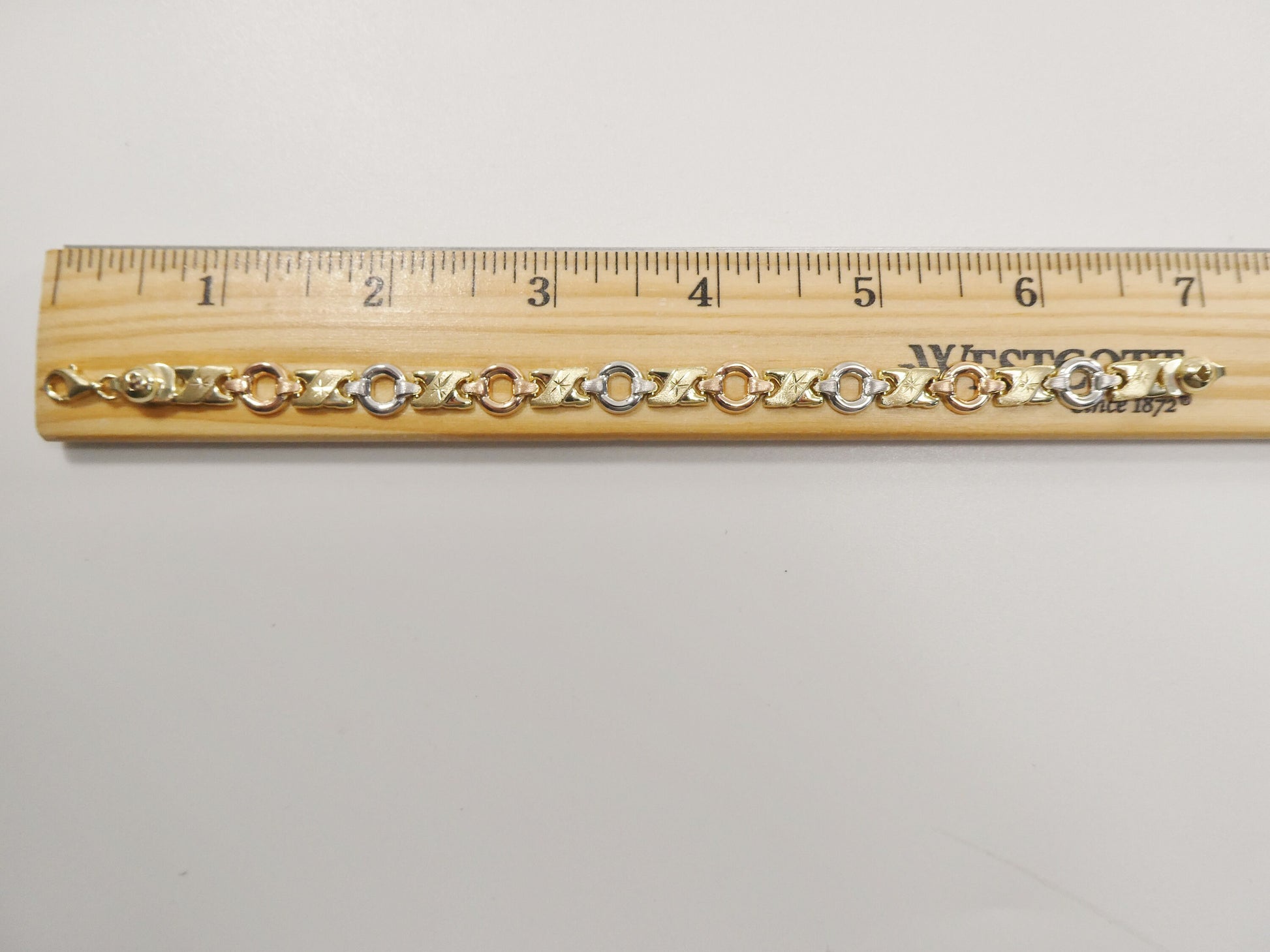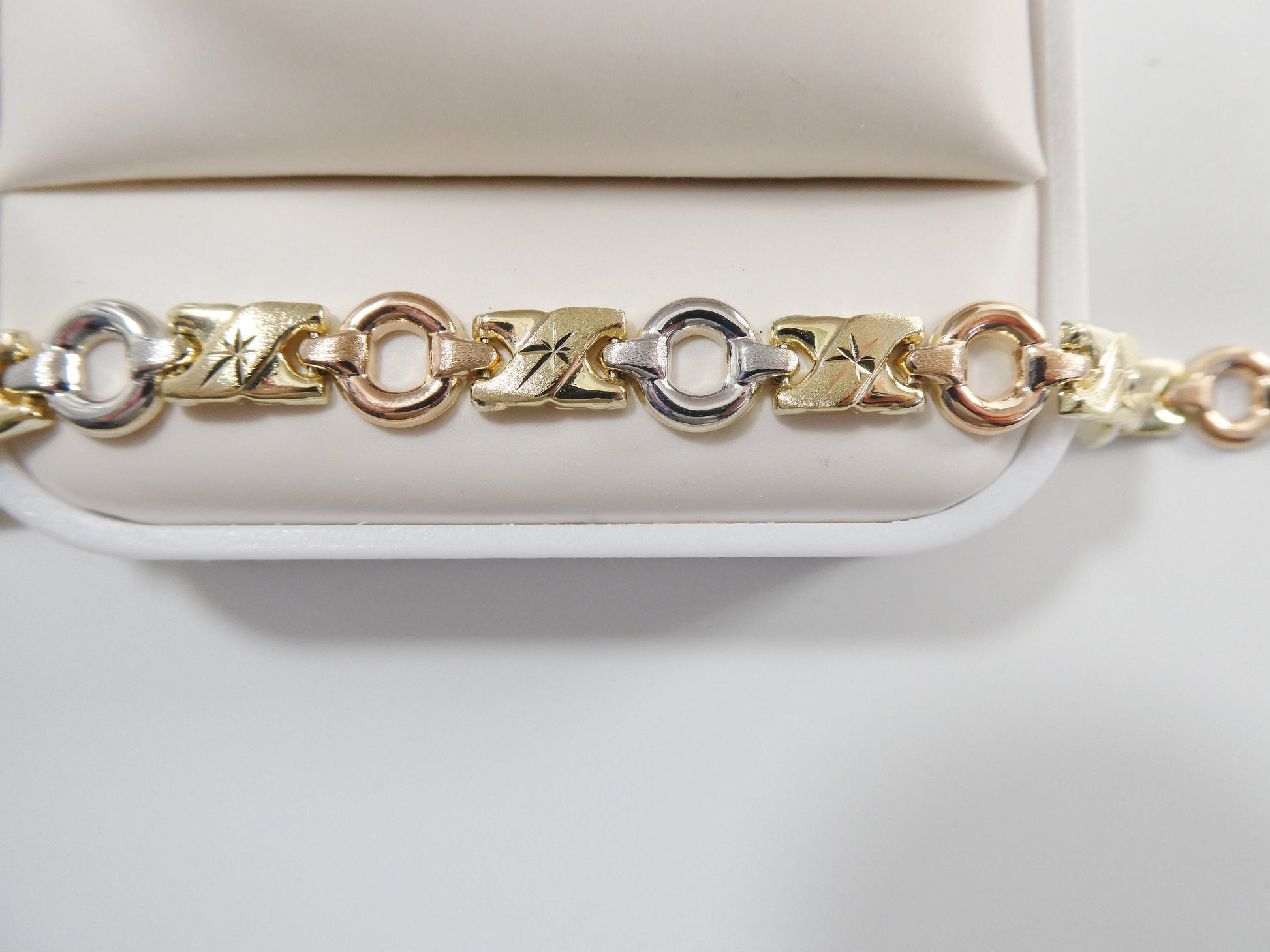 BRAND NEW 14K REAL SOLID YELLOEW GOLD XO XO 7 INCH BRACELET COME IN TWO TONE /ALL YELLOW/ TRI COLOR GUARANTEE REAL 14K GOLD MARK AND STAMP YOU CAN CHECK IT OUT ANY JEWELRY STORE / HIGH QUALITY / HIGH POLISH / SHINY GREAT FINISH / COME IN NICE GIFT BOX MAKE IT GREAT GIFT FOR ANY OCCASION