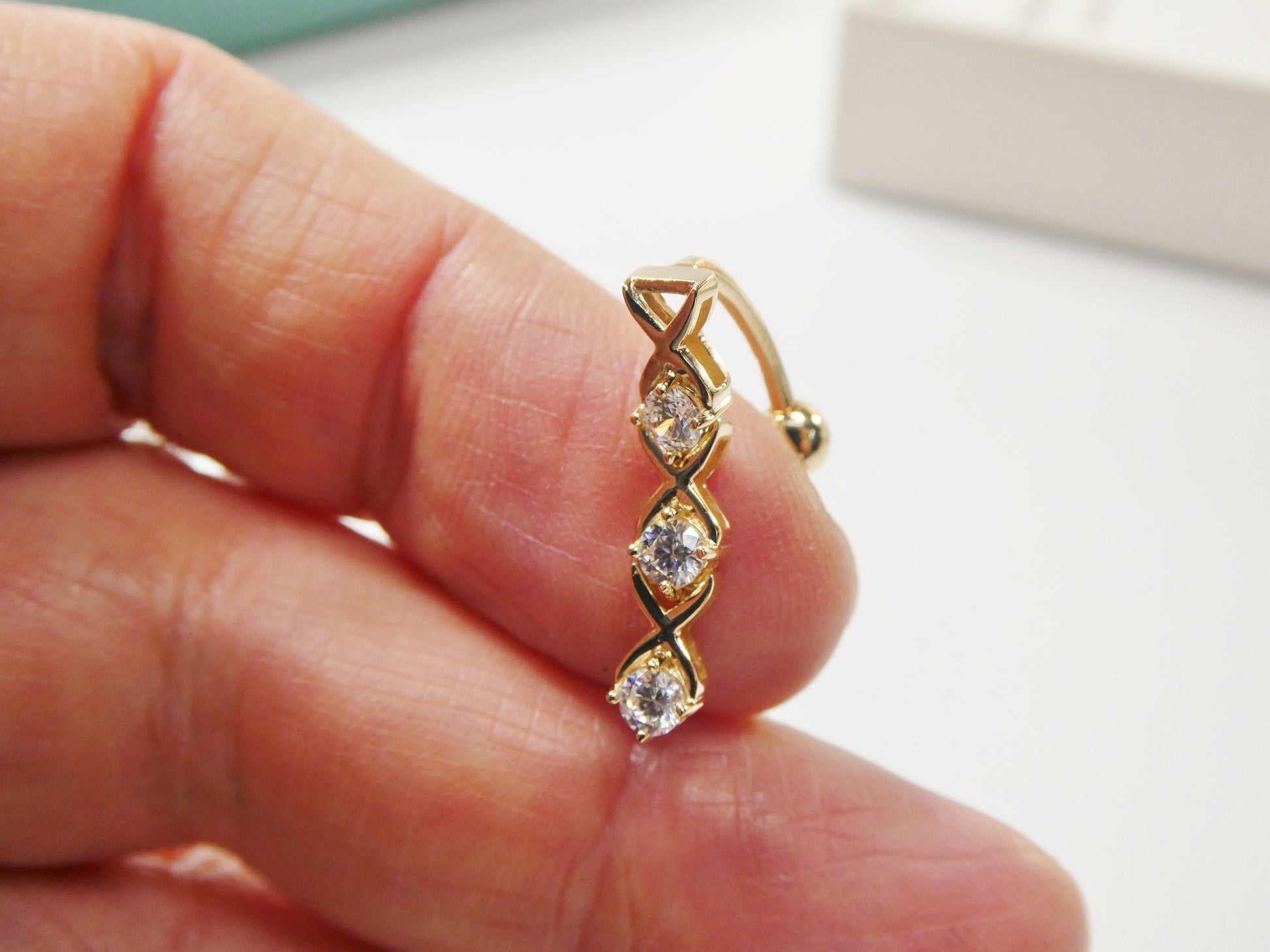 14k real solid yellow gold xoxo belly button dangle ring piercing