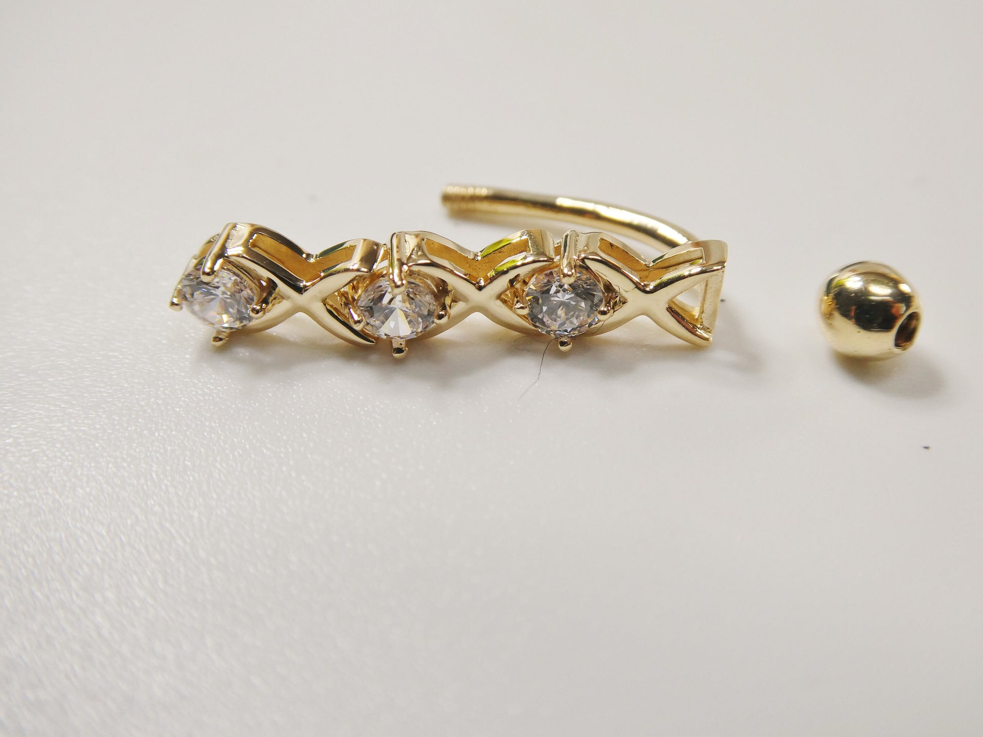 BRAND NEW REAL SOLID 14K GOLD XOXO BODY PIERCING 3MM AAA SHINY CUBIC ZIRCONIA ROUND STONE 14 GAUGE HIGH POLISH FINISH LUXURY ATTRACTIVE LOOK SCREW ON AND OFF GUARANTEE REAL SOLID 14K MARK AND STAMP ON THE BANANA BAR AND THE TOP SCREW BALL GOLD COME IN NICE GIFT BOX