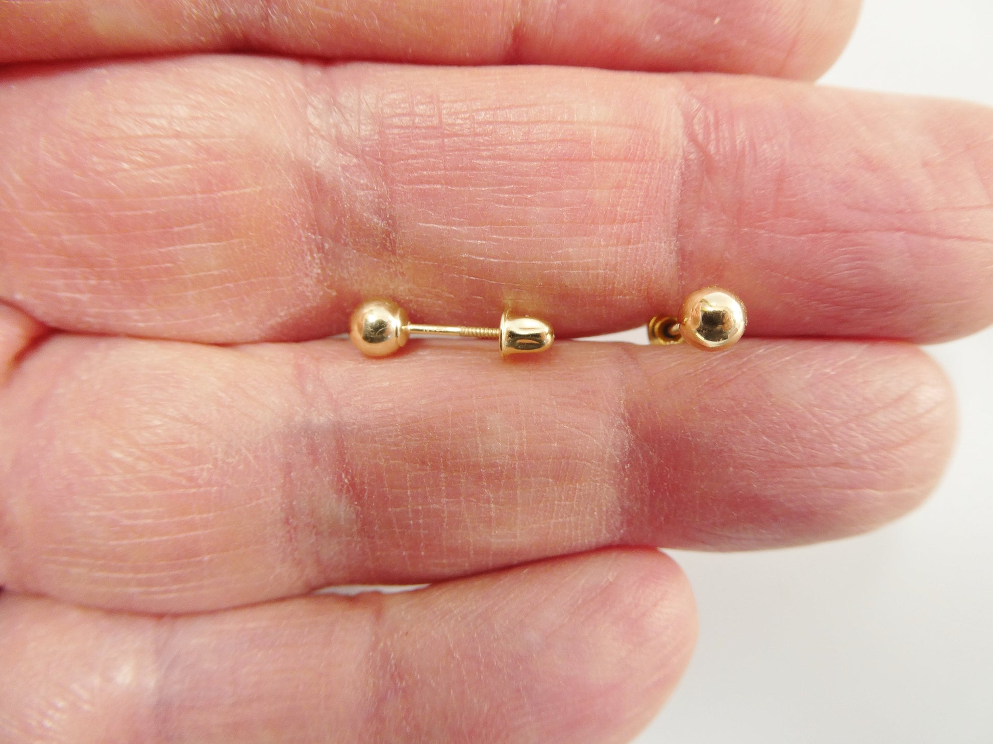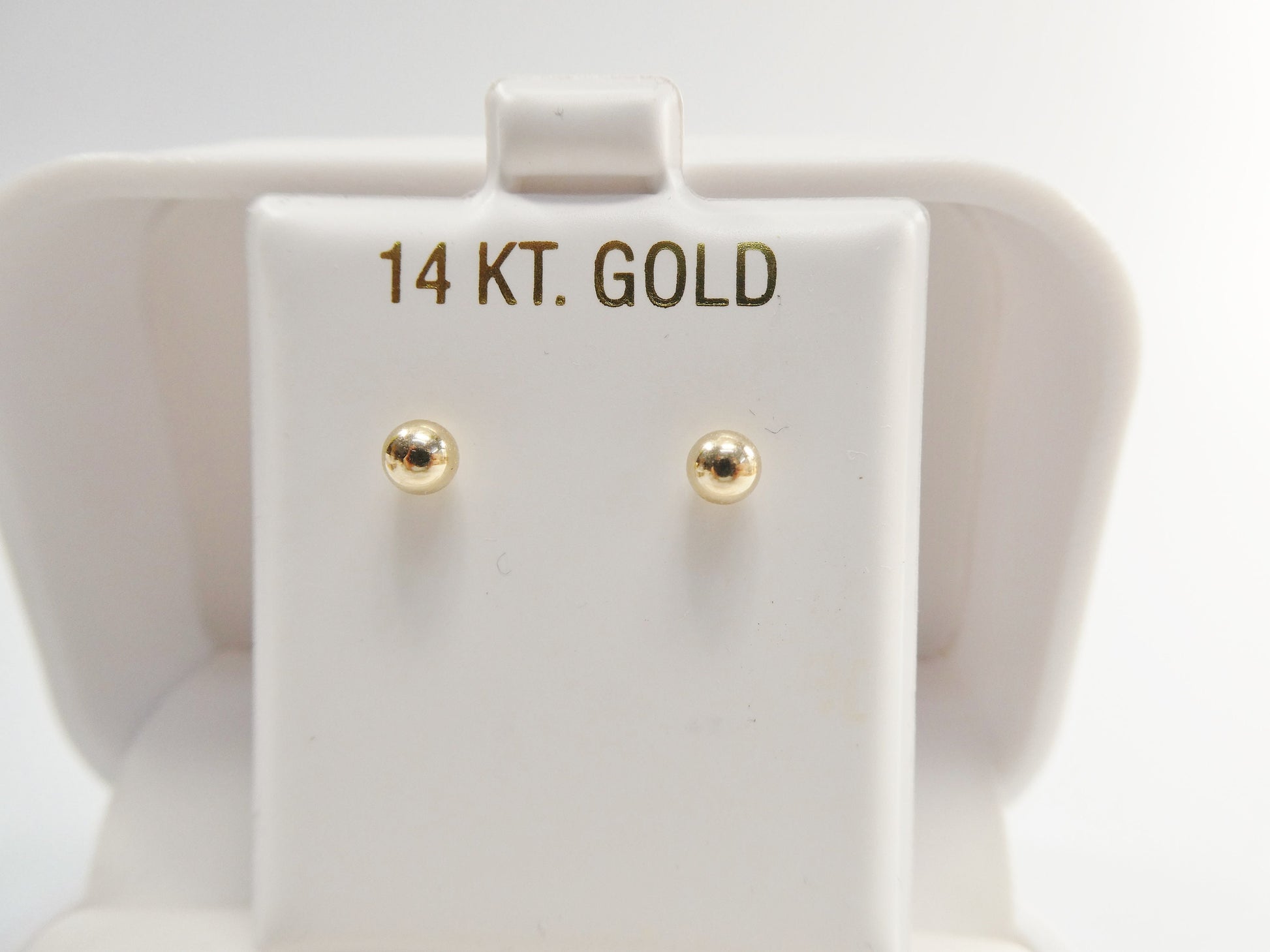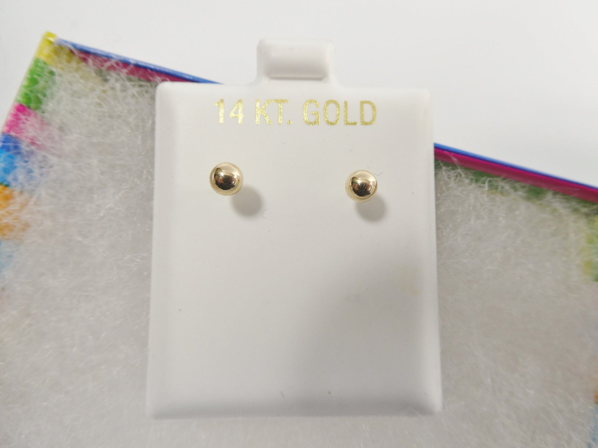 14K SOLID YELLOW GOLD SCREW POST 4MM BALL EARRING HIGH QUALITY HIGH POLISH COME WITH SILICONE EARRING STOPPER TO STAY IN PLACE FOR NOT DANGLING GUARANTEE 14K REAL GOLD BALL AND THE BACKING COME IN NICE GIFT BOX
