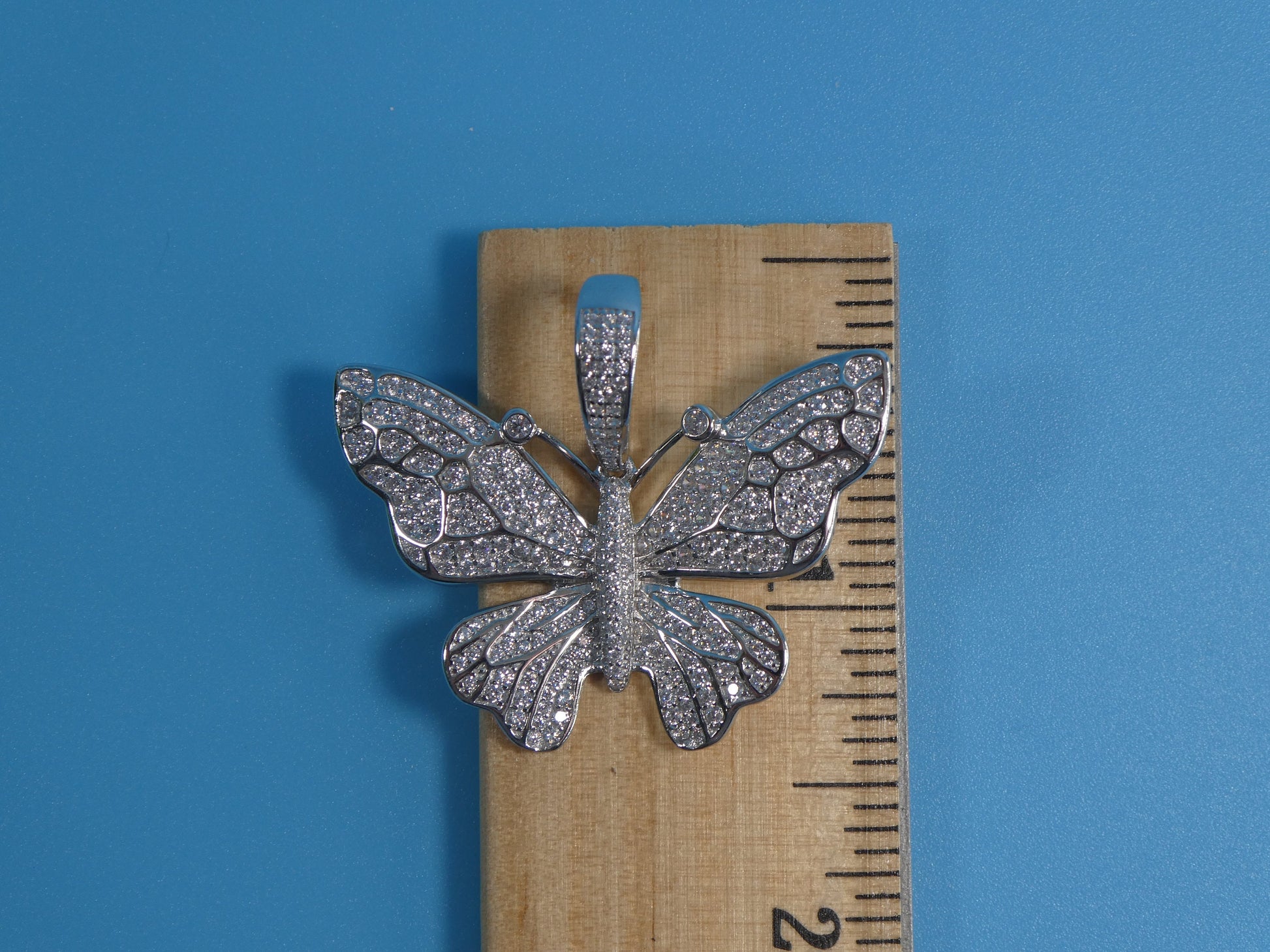 14k white gold color tone chain and large butterfly charm pendent over real 925 sterling silver