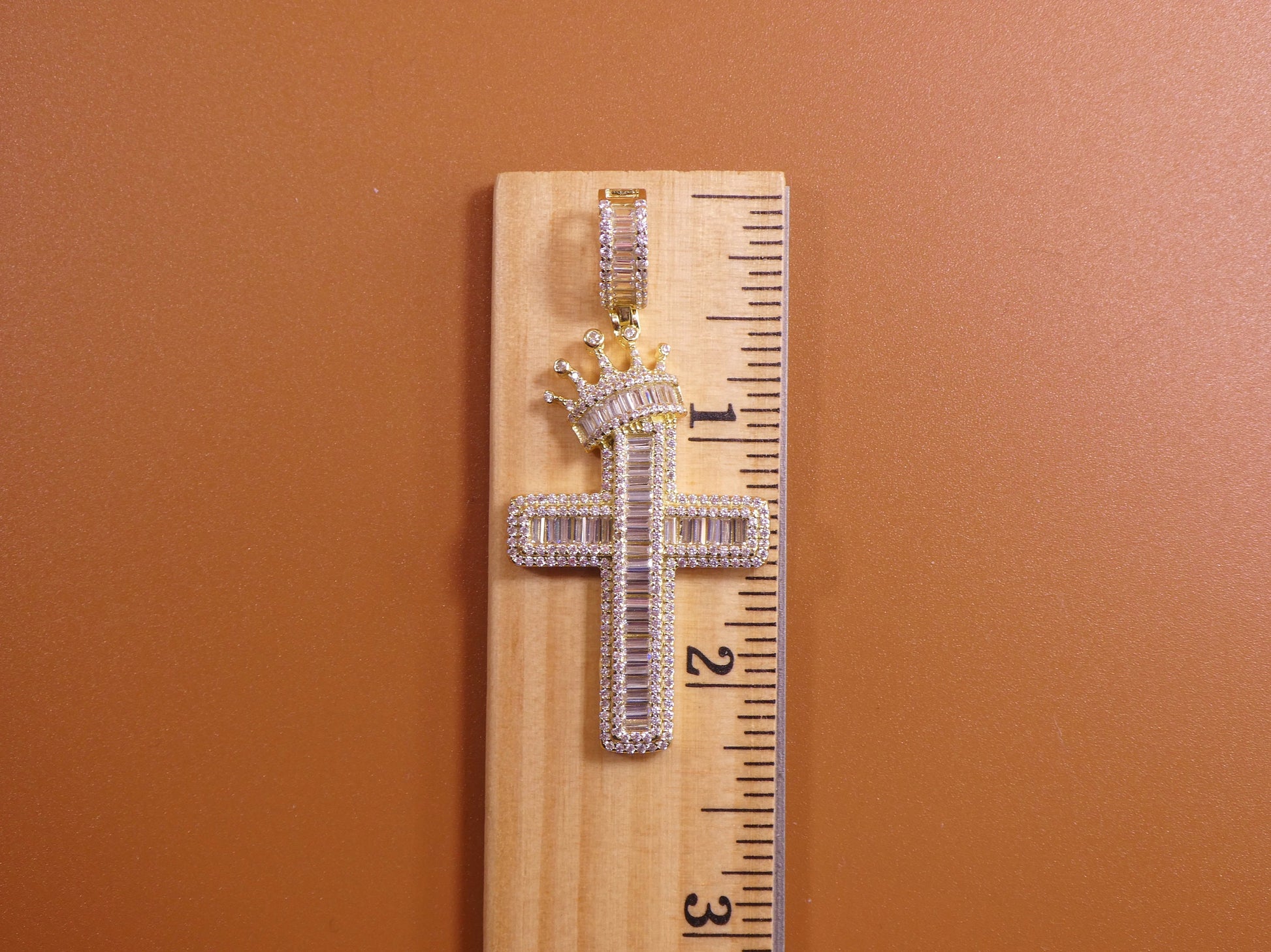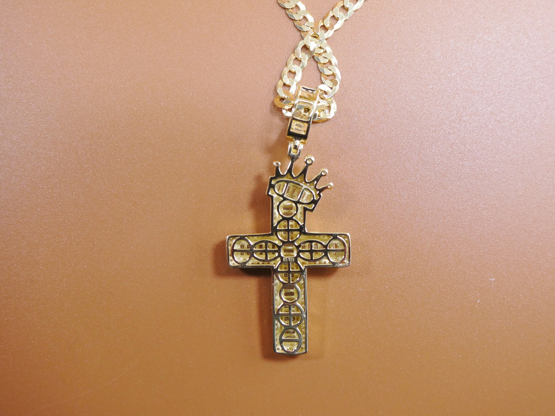 BRAND NEW NEW RELEASE 14K GOLD TONE COLOR CHAIN AND CROSS PENDENT OVER REAL 925 STERLING SILVER 24 INCH ITALYN FLAT MIAMI CUBAN CHAIN LOBSTER CLASP LOCK LUXURY ATTRACTIVE LOOK EXCELLENT GOLD COLOR FINISH HIGH POLISH GREAT PRICE COME IN NICE GIFT BOX PERFECT GIFT FOR ANY OCCASION