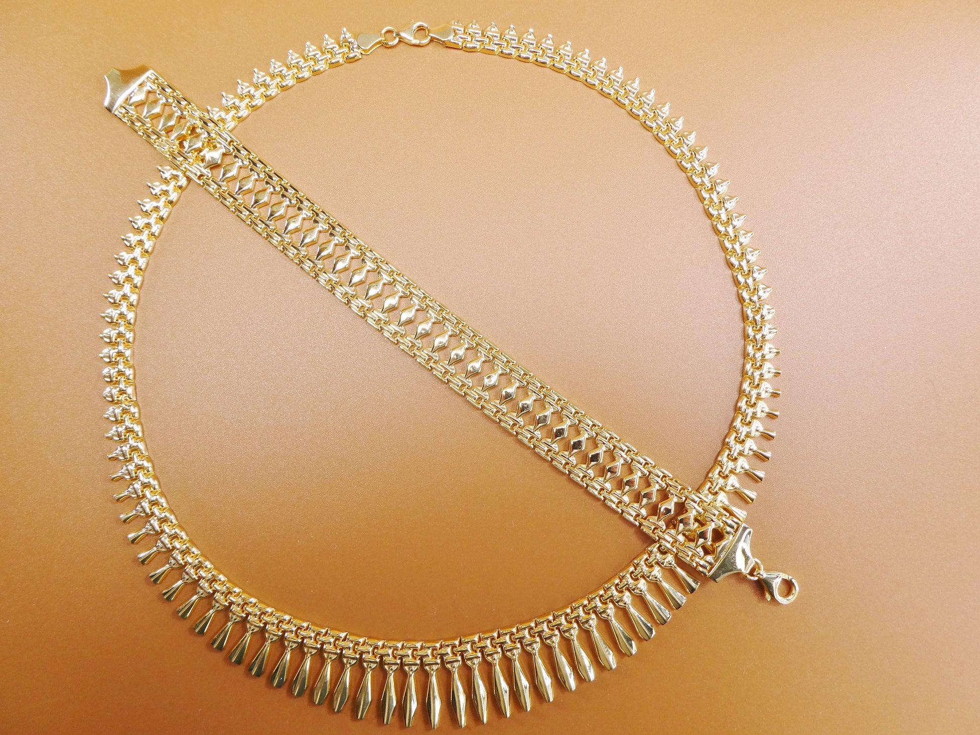 14k yellow gold tone color Cleopatra set necklace and bracelet over real 925 sterling silver