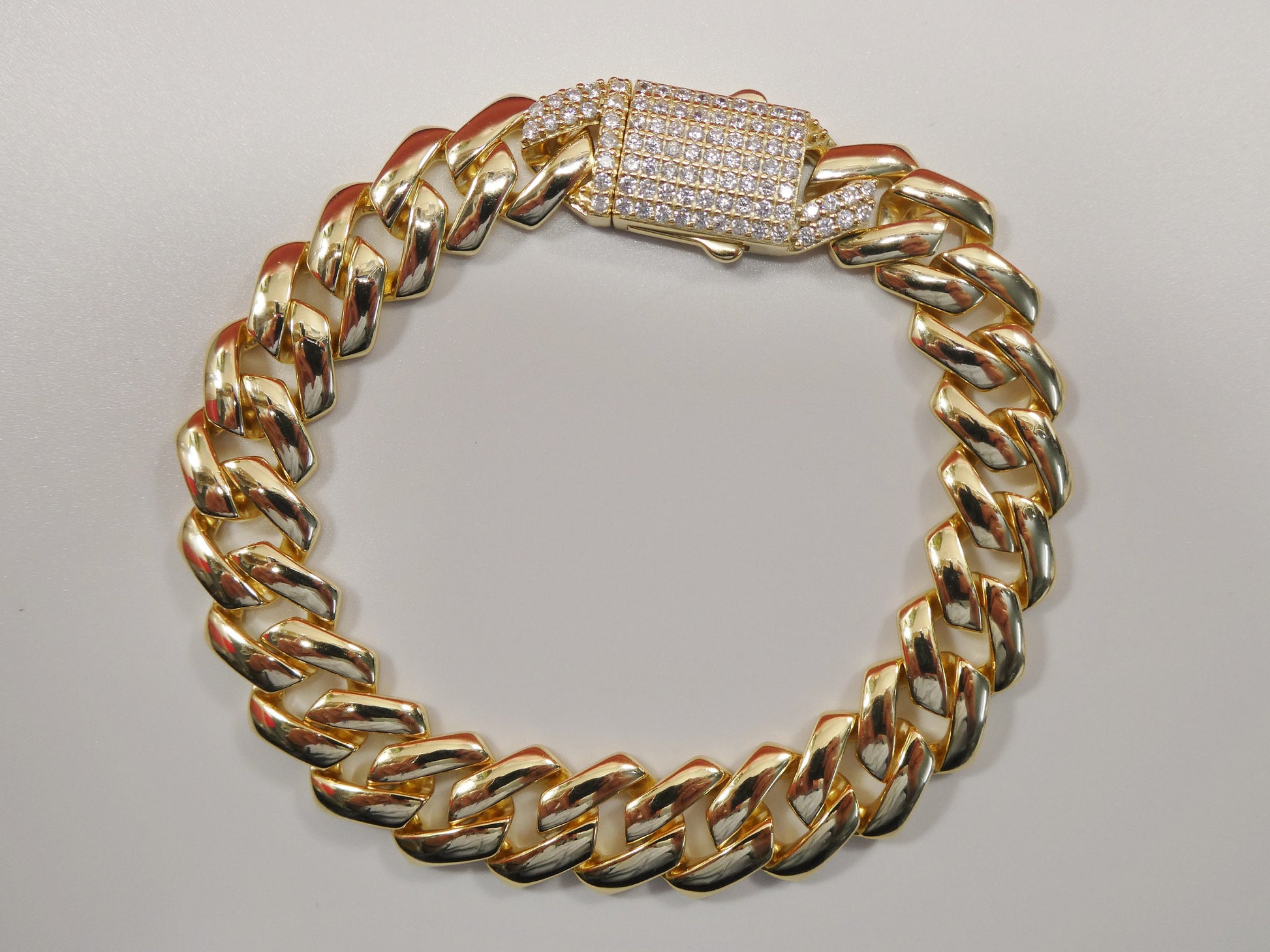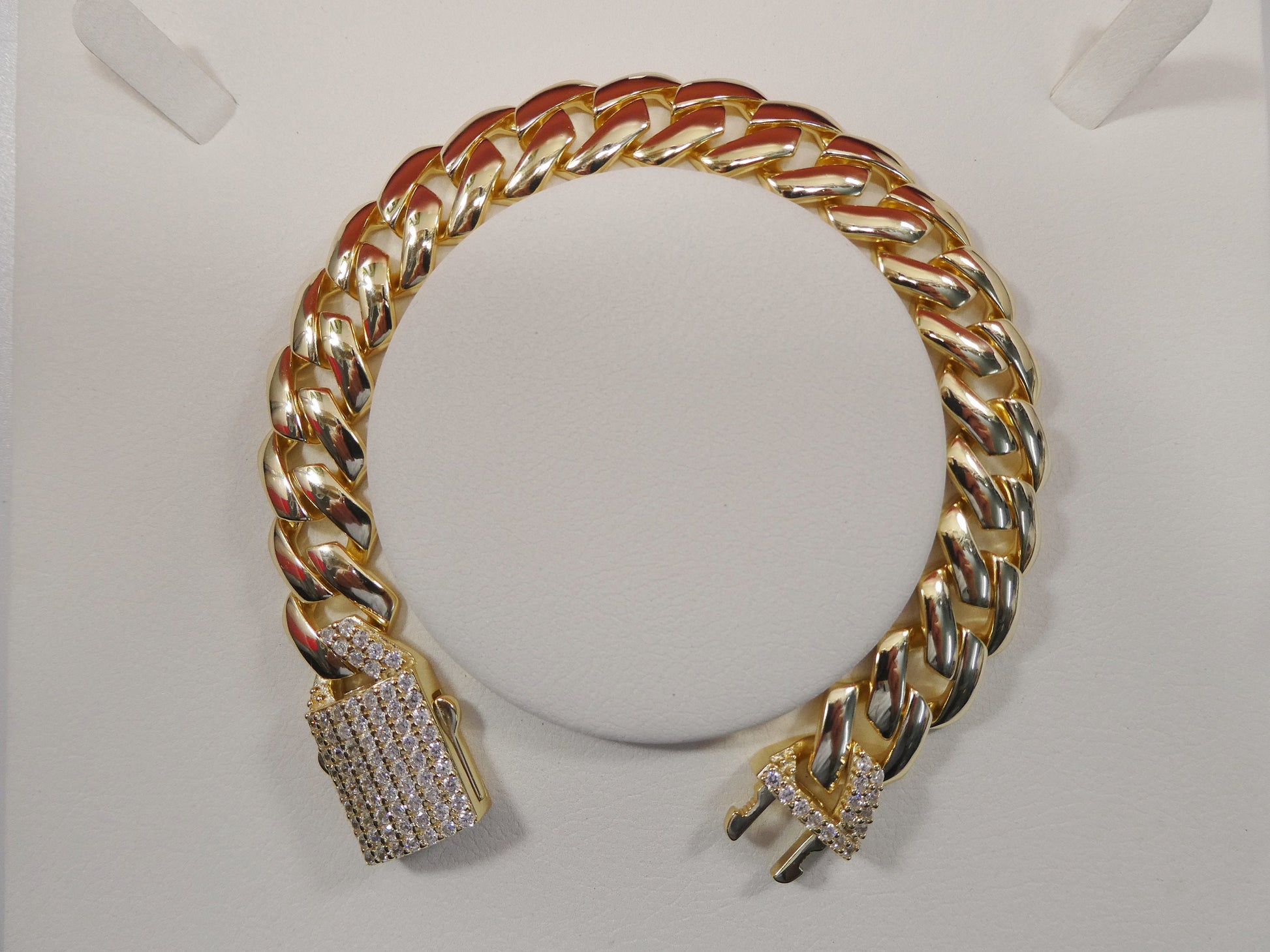 14MM real 925 sterling silver 14k yellow gold color Monaco bracelet