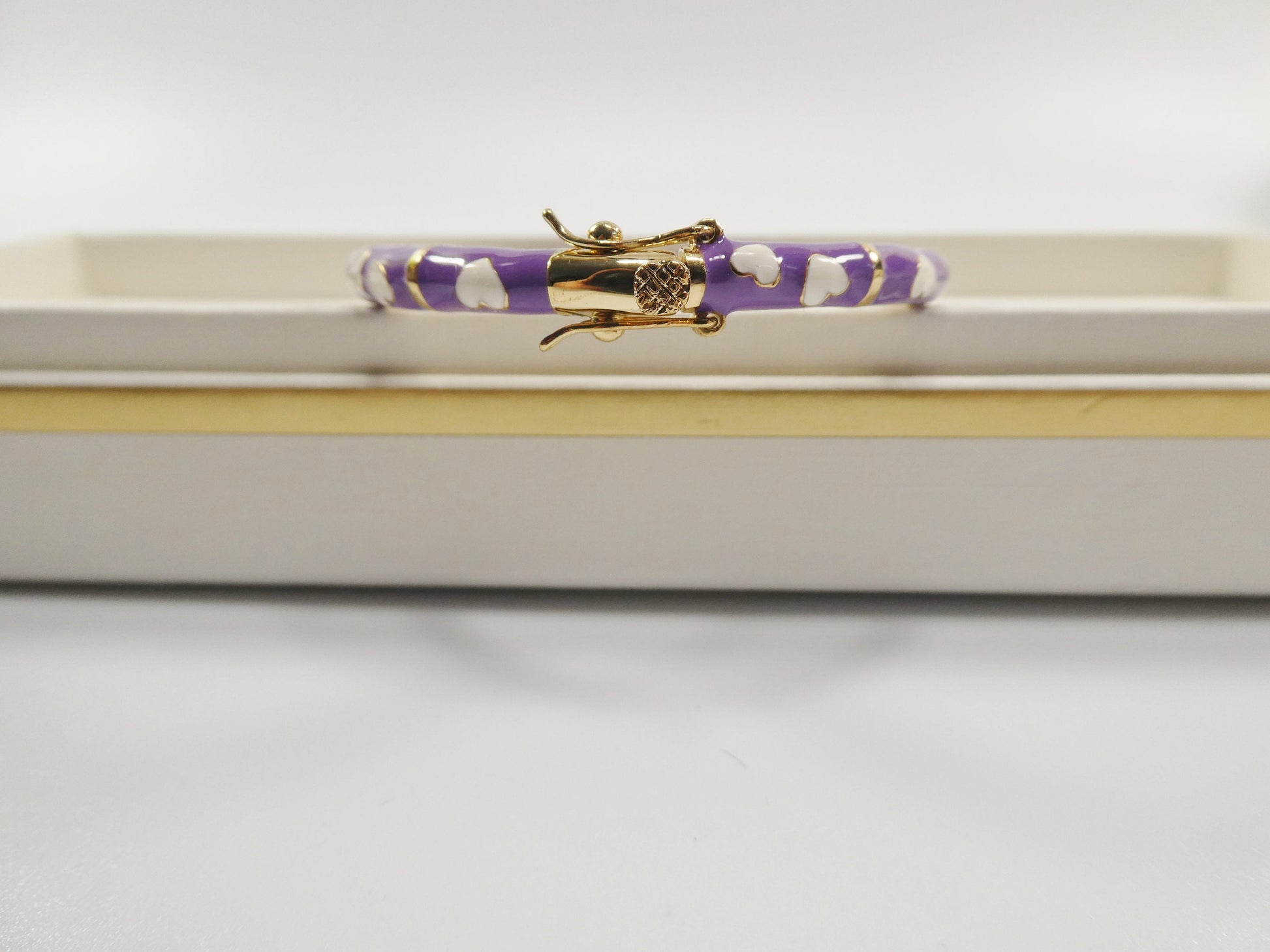 18K YELLOW GOLD FILLED 50MM PURPLE ENAMEL CHILDREN BANGLE BRACELET HIGH POLISH HIGH QUALITY SAFTY LOCK CLASP BEAUTIFUL FINISH COME IN NICE GIFT BOX