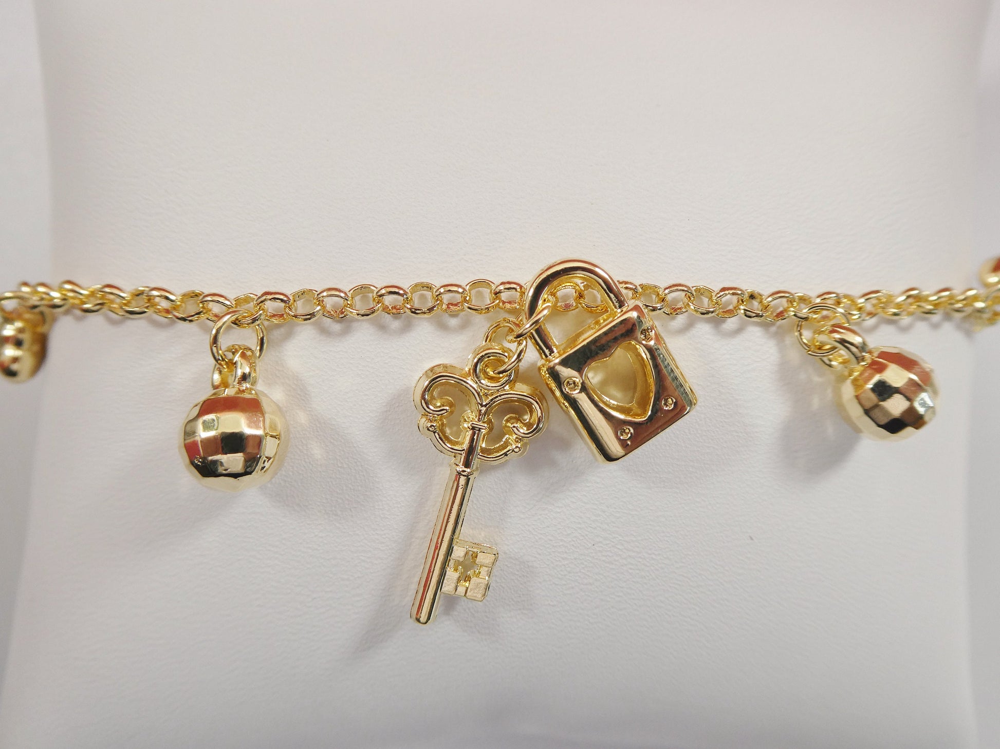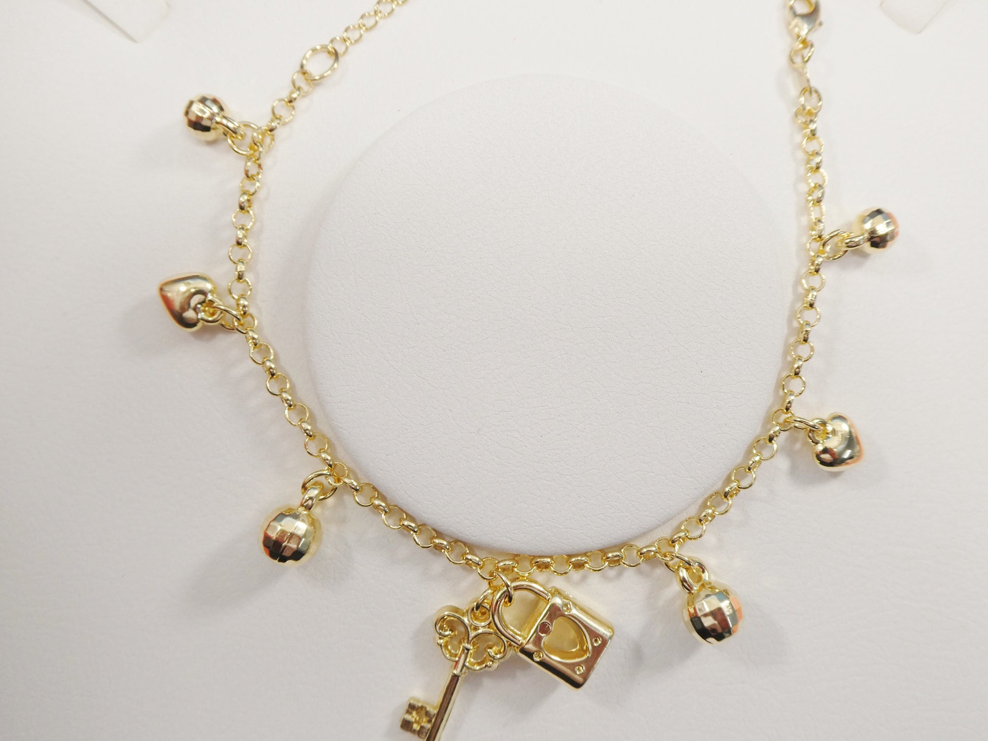 7 inch 18k gold filled adjustable with extension charm ladies bracelet