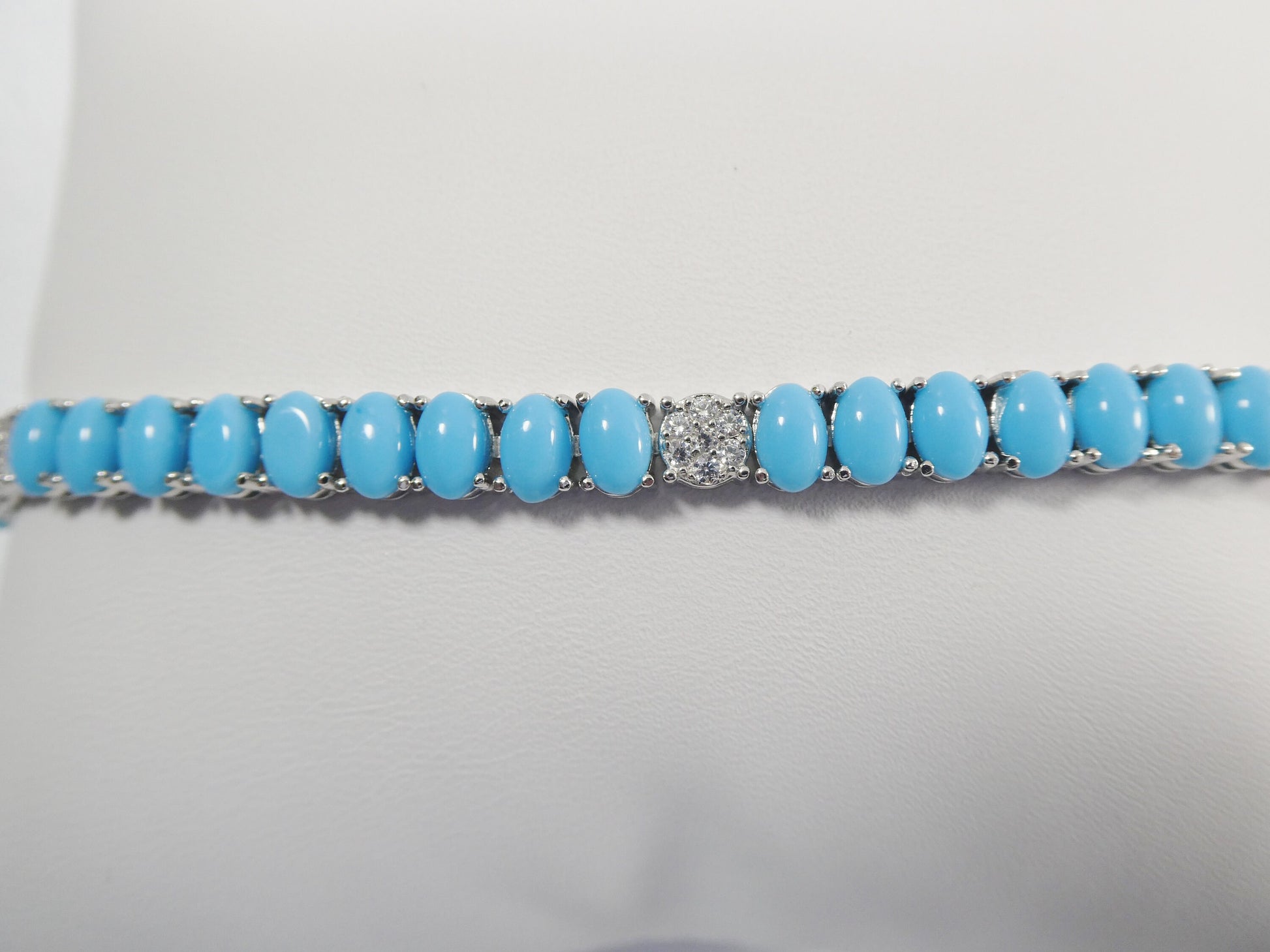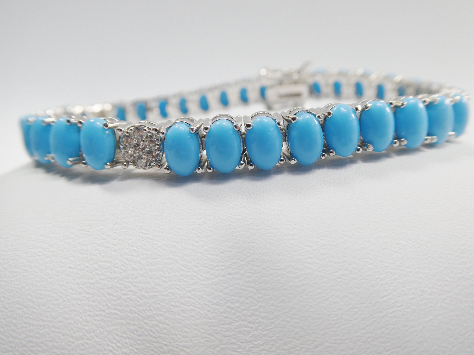 NEW RELEASE 7 INCH REAL 925 STERLING SILVER TURQUOISE BEAUTIFUL STONE SHINY WHITE STONE CUBIC ZIRCONIA BETWEEN HIGH POLISH RHODIUM PLATED LUXURY ATTRACTIVE LOOK COME IN NICE GIFT BOX MAKE IT PERFECT GIFT FOR ANY OCCASION