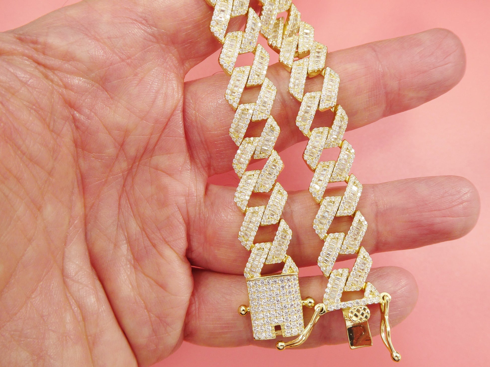 8.5 inch 14k yellow gold color Monaco bracelet baguette setting over real solid 925 sterling silver