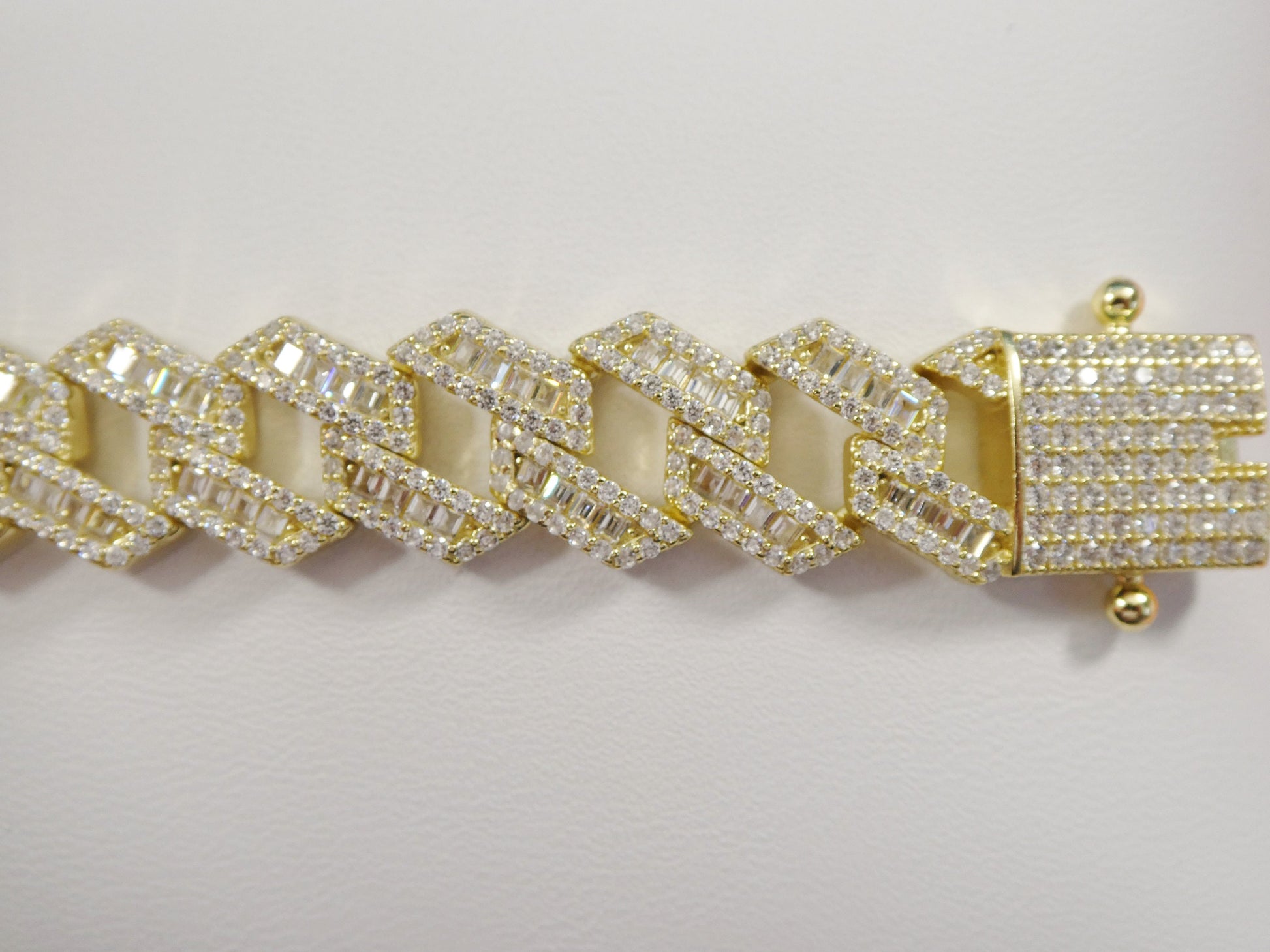 BRAND NEW NEW RELEASE 14K YELLOW GOLD COLOR TONE OVER REAL SOLID 925 STERLING SILVER MARK AND STAMP 8.5 INCH BRACELET BAGUETTE SETTING STONE HIGH QUALITY HIGH POLISH GREAT GOLD COLOR FINISH LUXURY ATTREACTIVE LOOK COME IN NICE GIFT BOX MAKE IT GREAT GIFT FOR ANY OCCASION