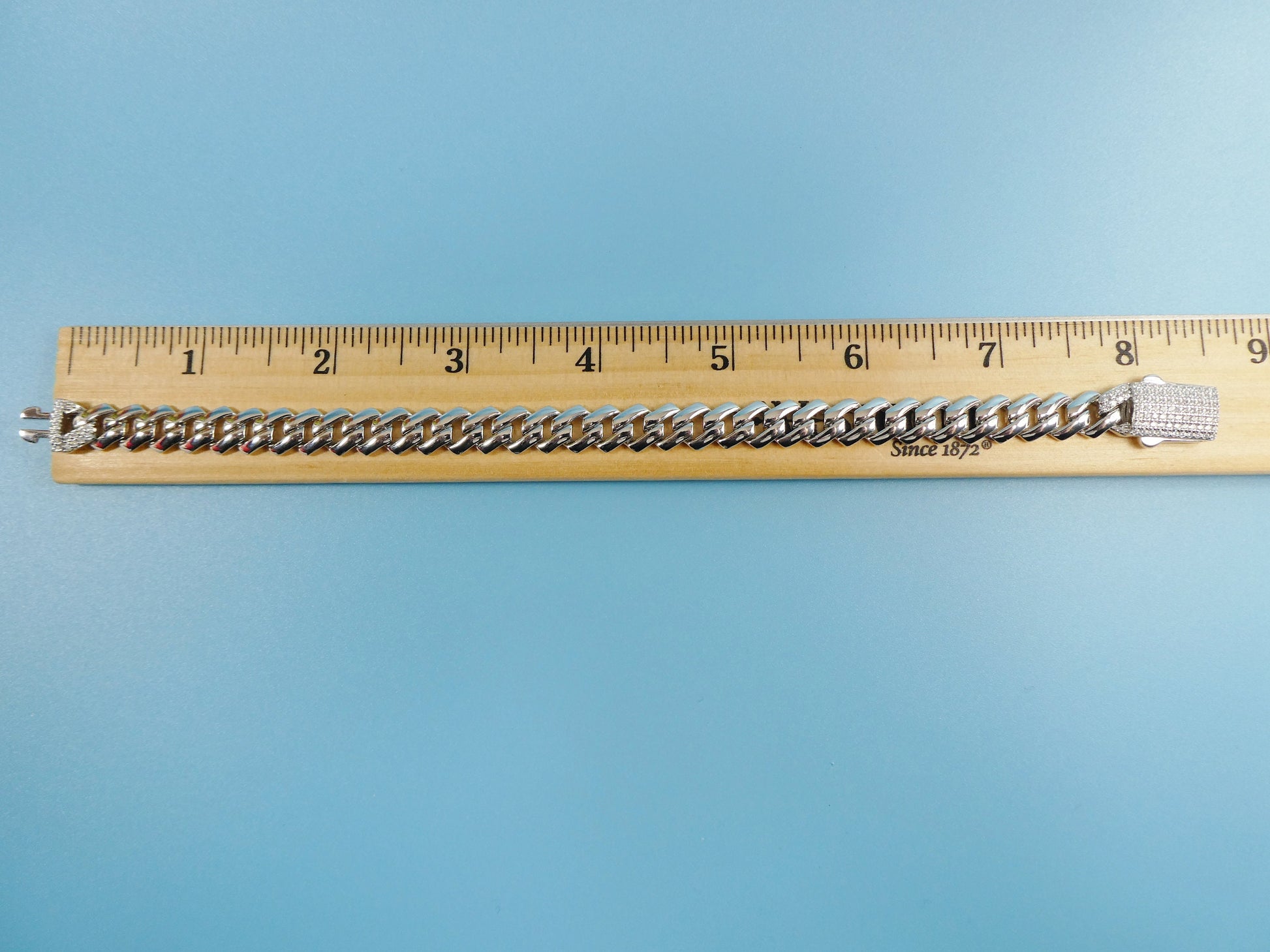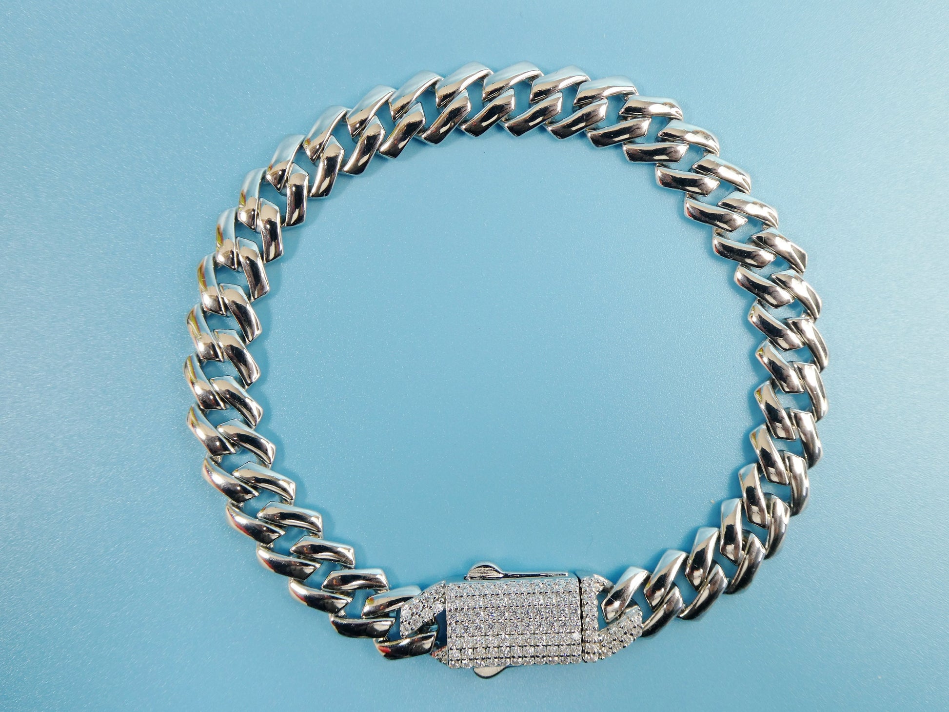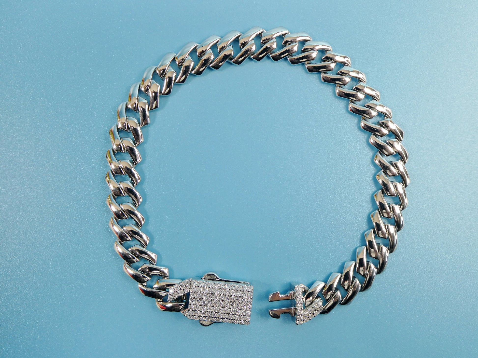 8 inch 14k white gold color tone Monaco bracelet over real solid 925 sterling silver